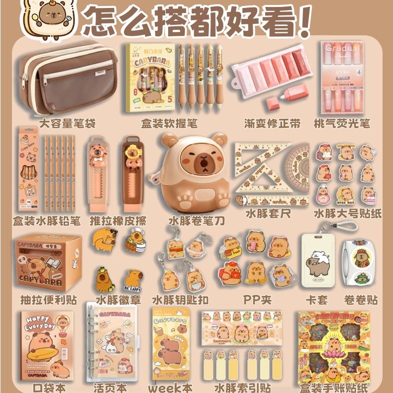| [learning capybara] pencil case 54-piece set(【学习水豚】笔袋54件套) | USD $22.06 | 99999 piece available |