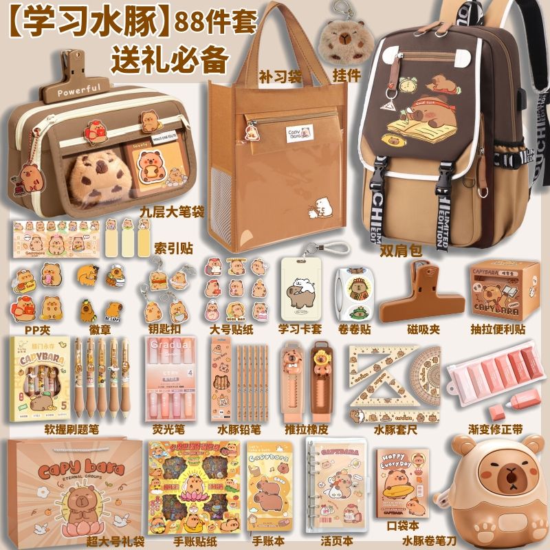 | [learning capybara] grade 3-6 spine protection backpack 88-piece set(【学习水豚】3-6年级护脊双肩包88件套) | USD $43.01 | 99999 piece available |