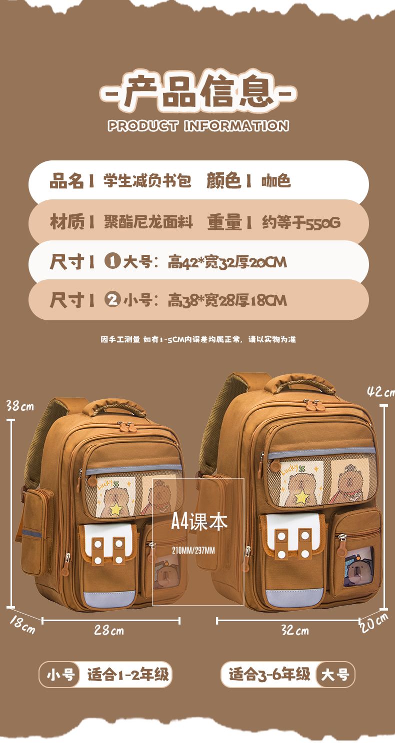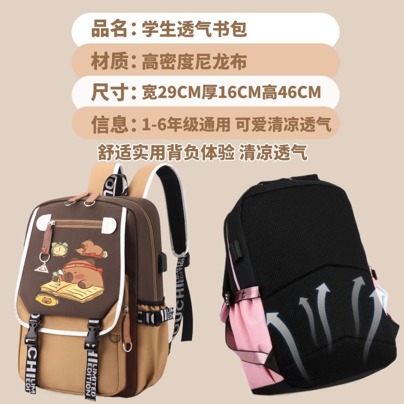 | [learning capybara] spine protection backpack for grade 3-6 send card(【学习水豚】3-6年级护脊双肩包送卡片) | USD $15.99 | 99999 piece available |