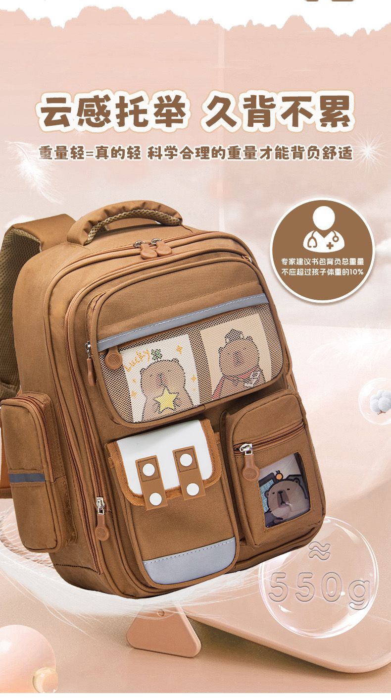 | [learning capybara] grade 1-3 spine protection backpack with card(【学习水豚】1-3年级护脊双肩包送卡片) | USD $15.99 | 99999 piece available |