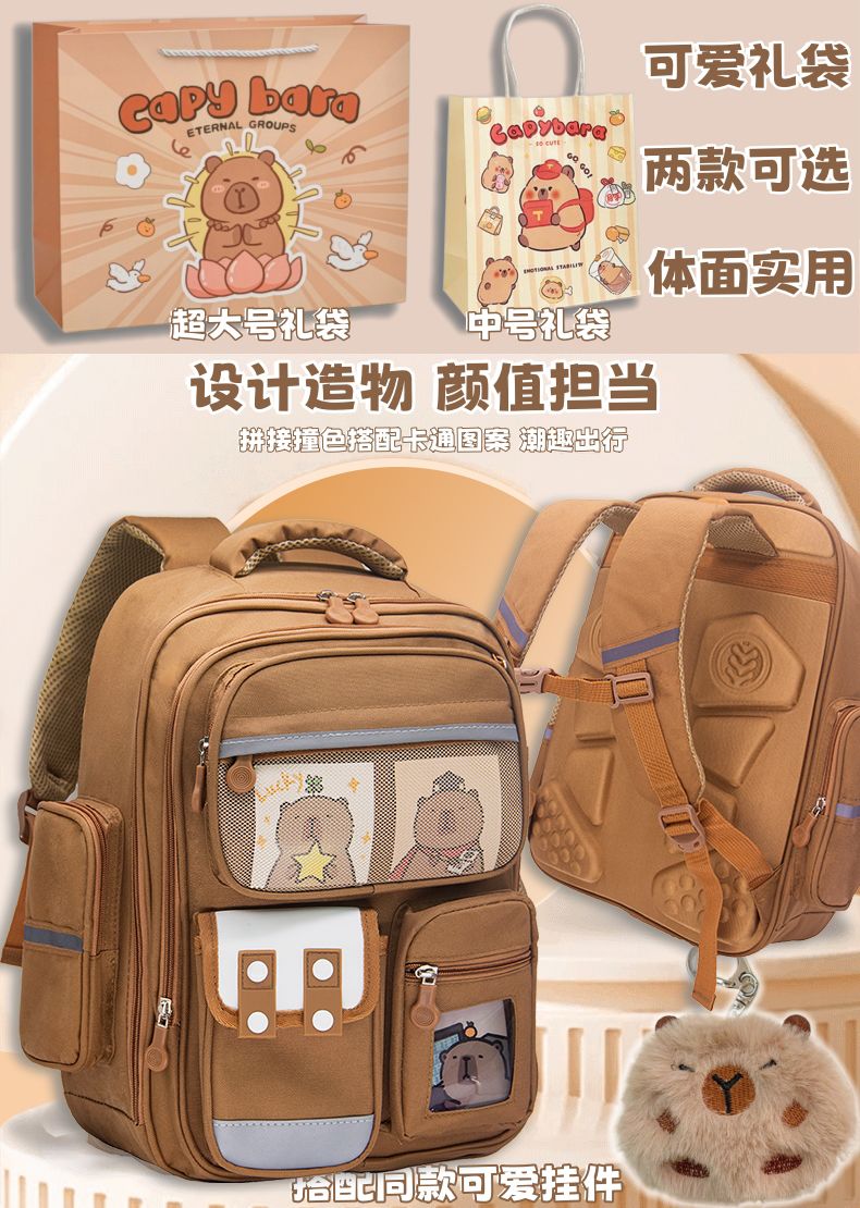 送礼卡皮巴拉书包护脊减负双肩包文具小学生3一6年级补习袋笔袋