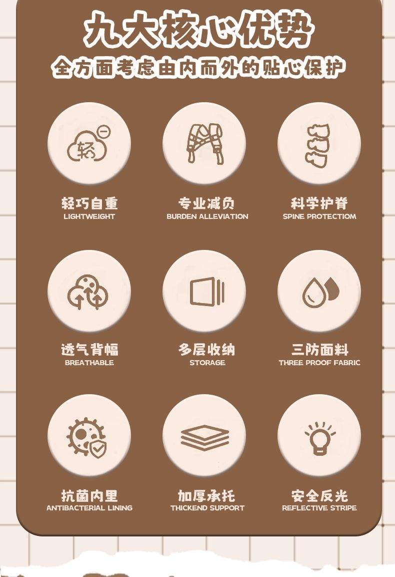 | [learning capybara] grade 3-6 spine protection backpack 7-piece set(【学习水豚】3-6年级护脊双肩包7件套) | USD $18.38 | 99999 piece available |