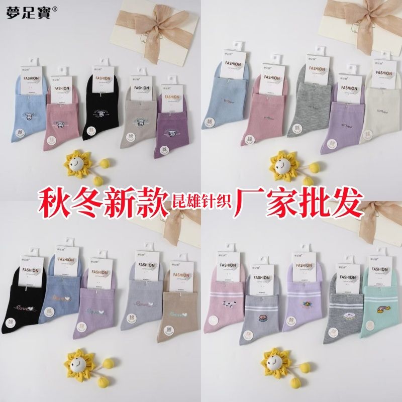 袜子批发100双秋冬女士中筒长款高腰纯棉袜子 摆地摊便宜货源厂家