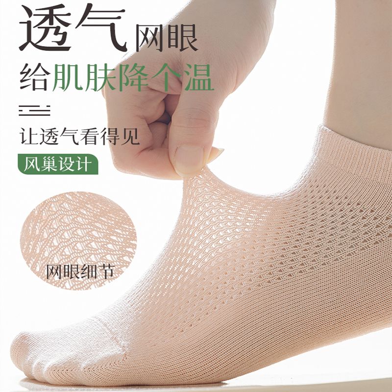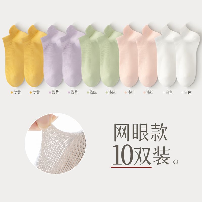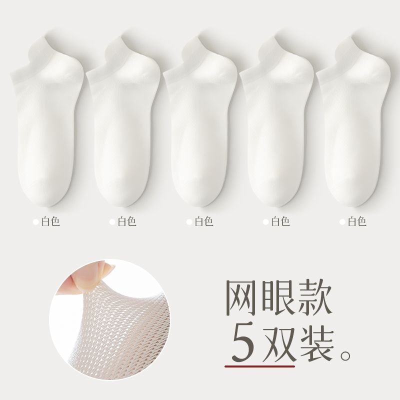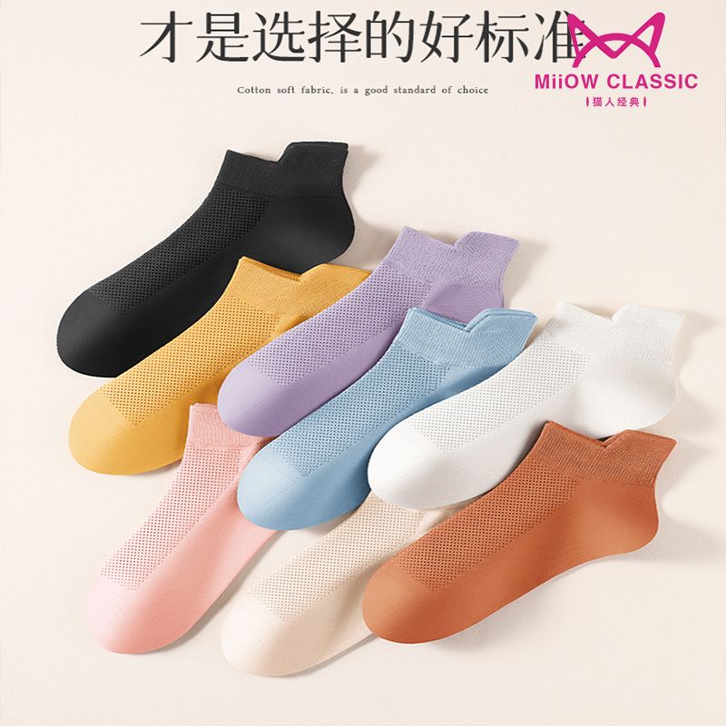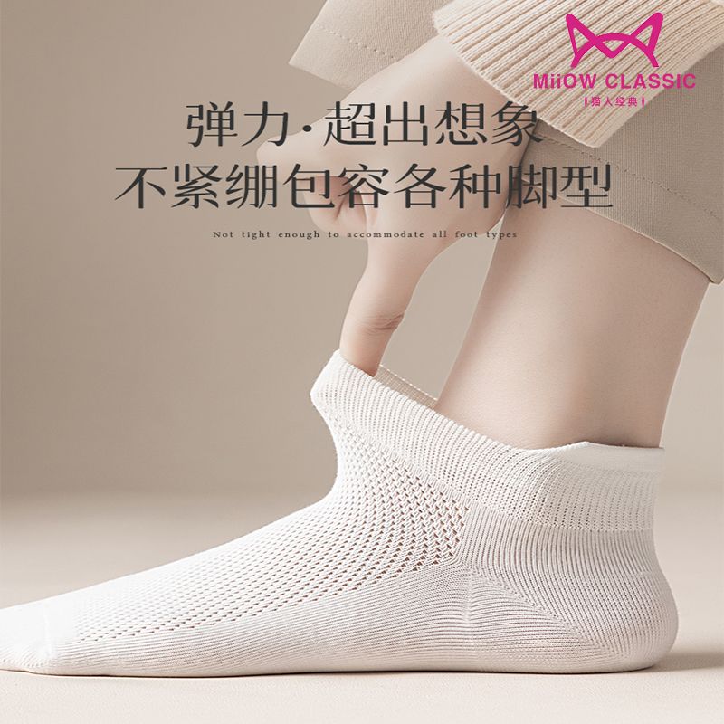 猫人袜子女士夏季薄款网眼透气防滑不掉跟吸汗船袜夏天白色棉短袜