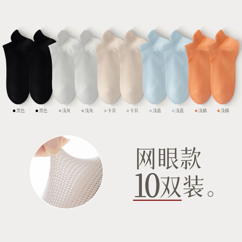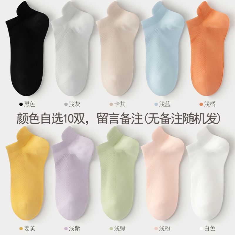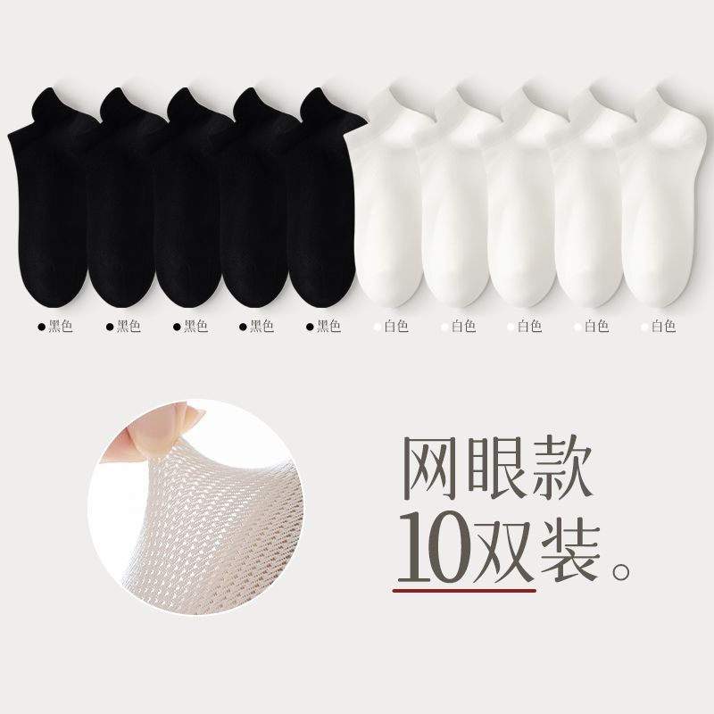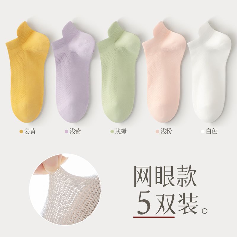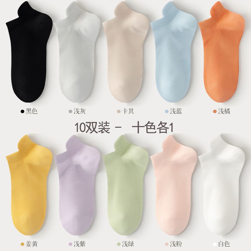 猫人袜子女士夏季薄款网眼透气防滑不掉跟吸汗船袜夏天白色棉短袜