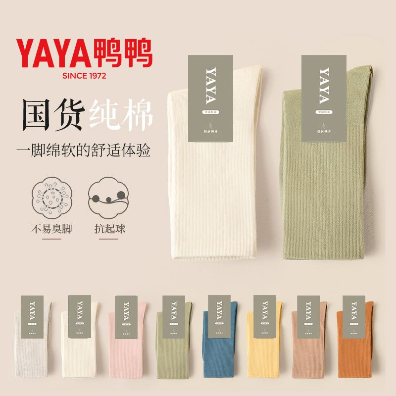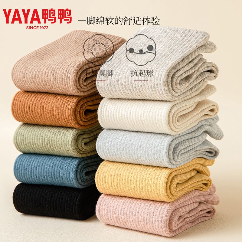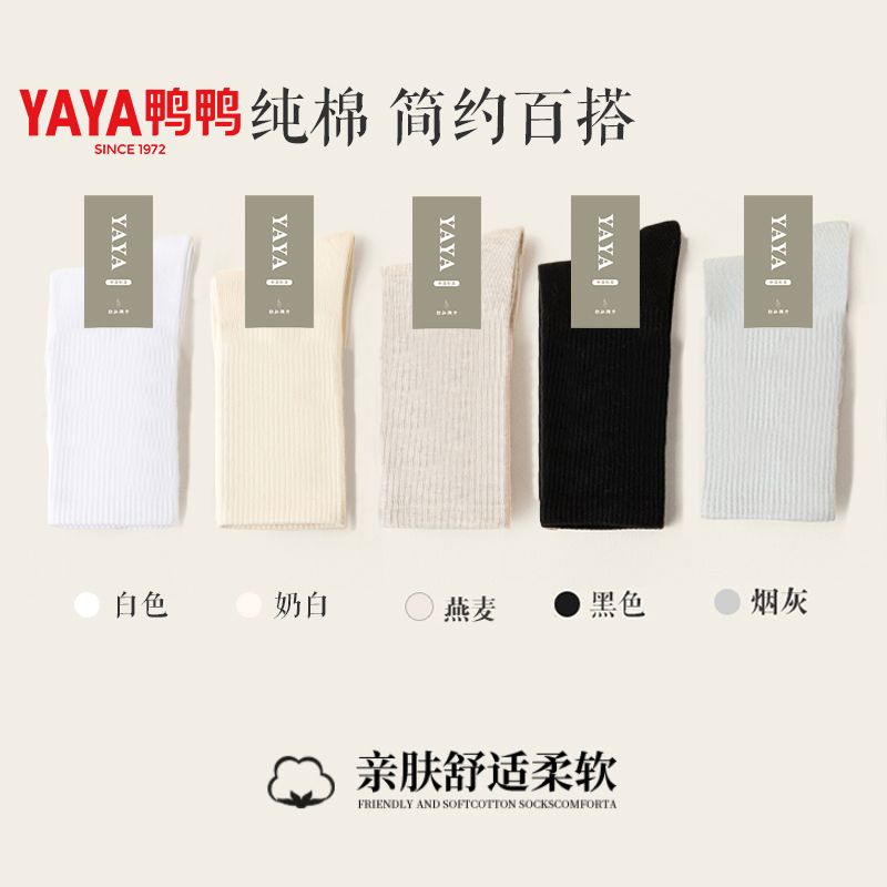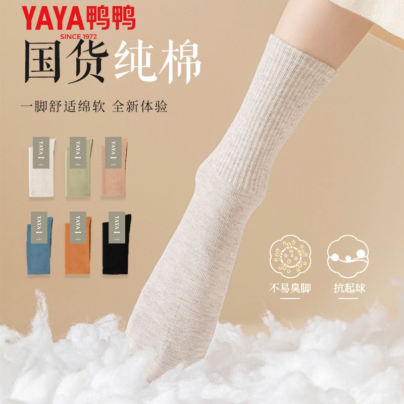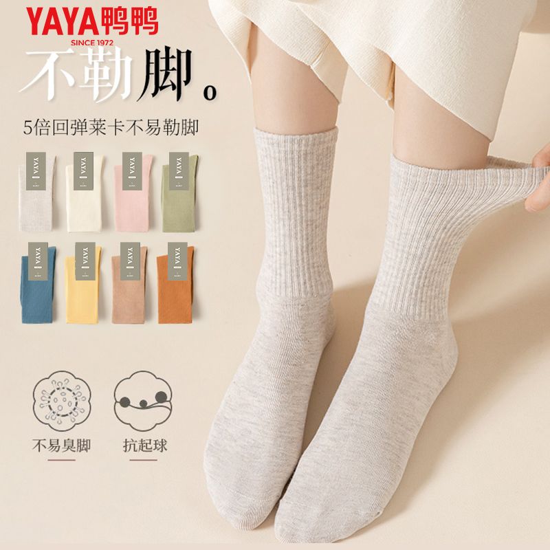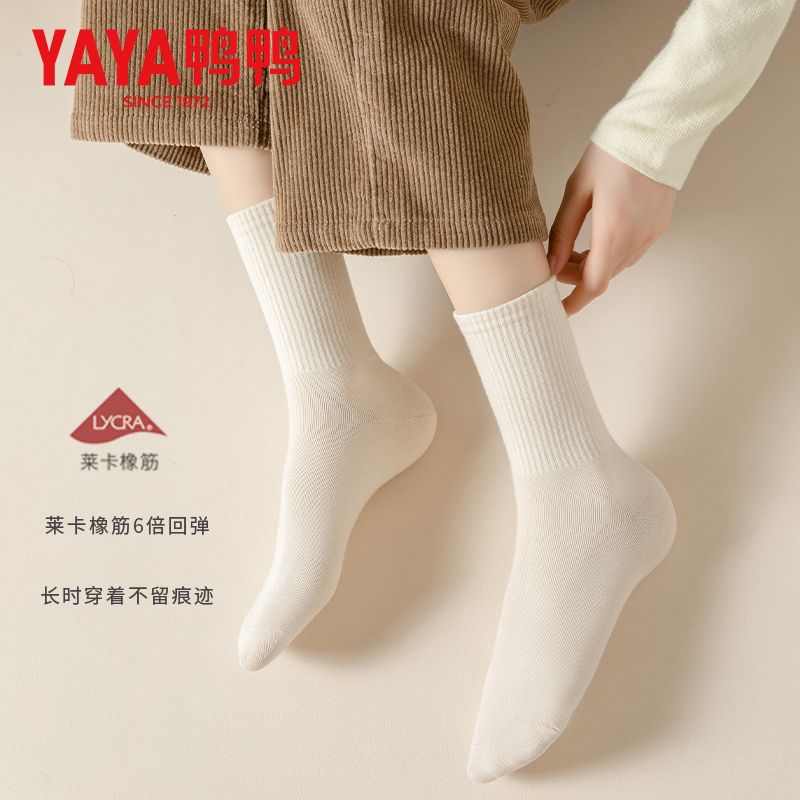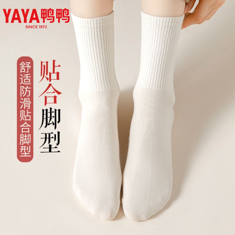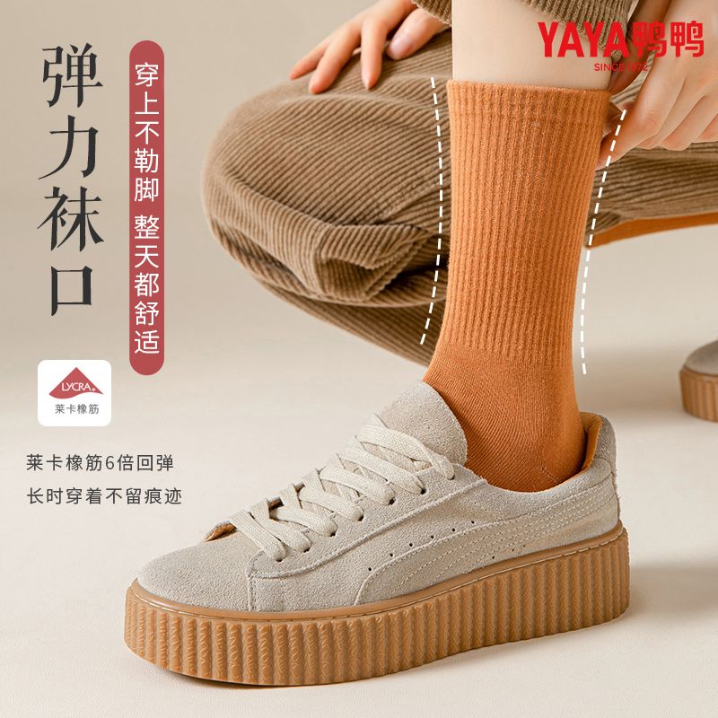 鸭鸭袜子女春秋季透气吸汗长筒袜秋冬黑白运动袜防臭百搭高筒棉袜