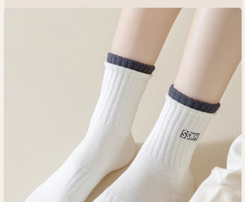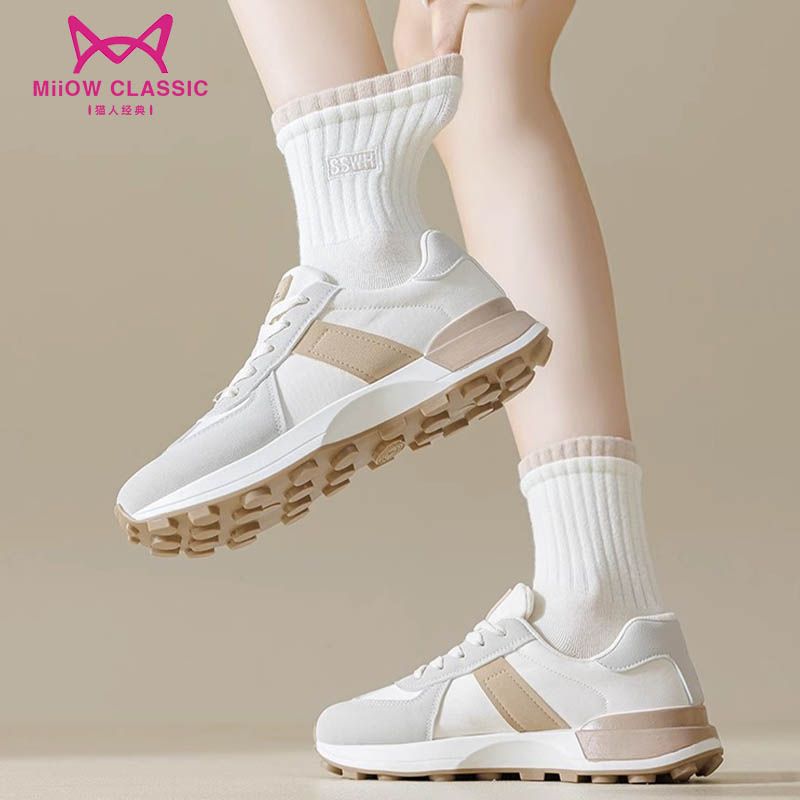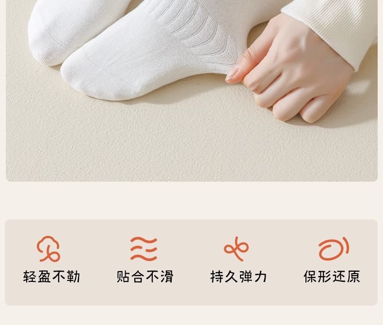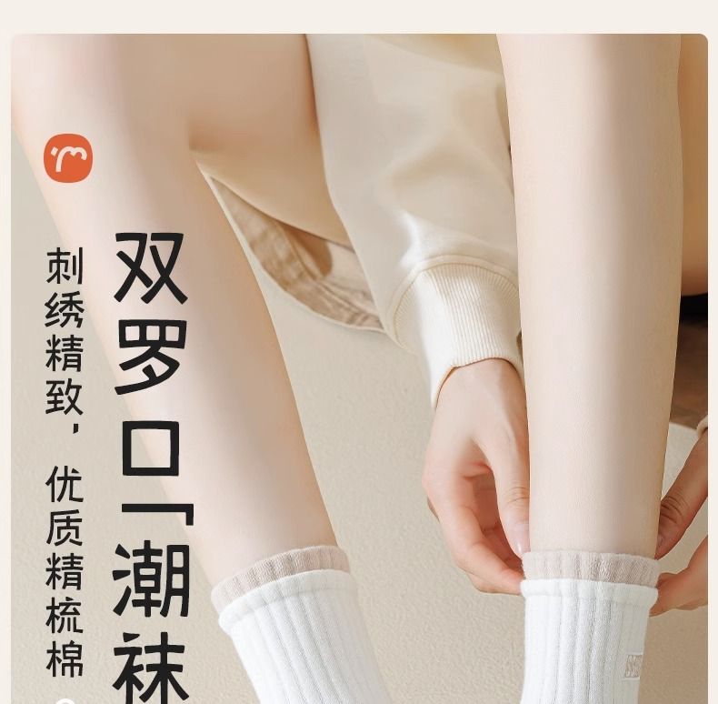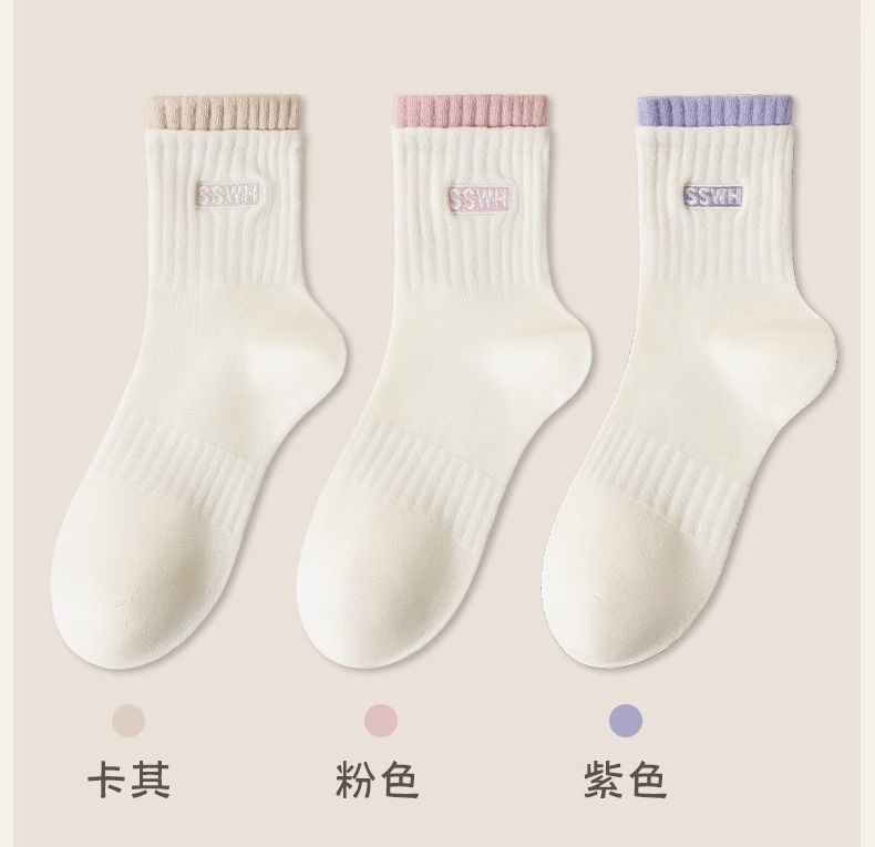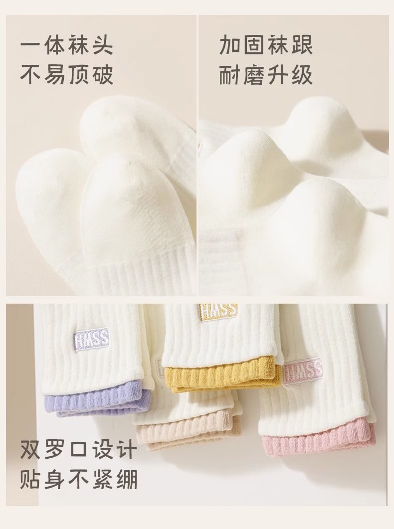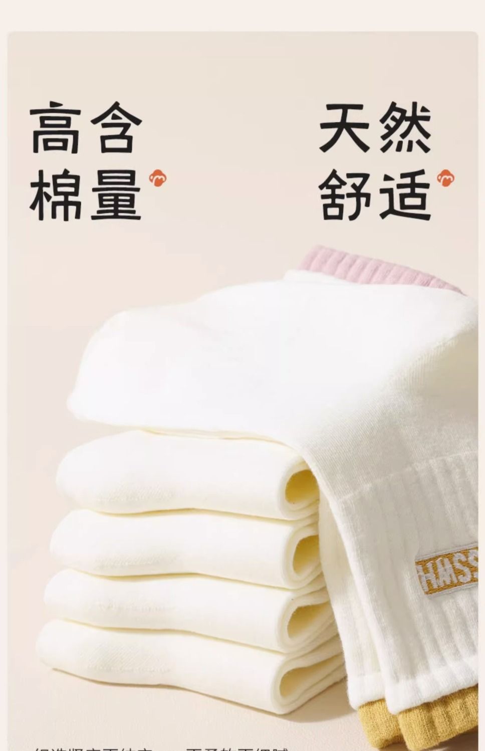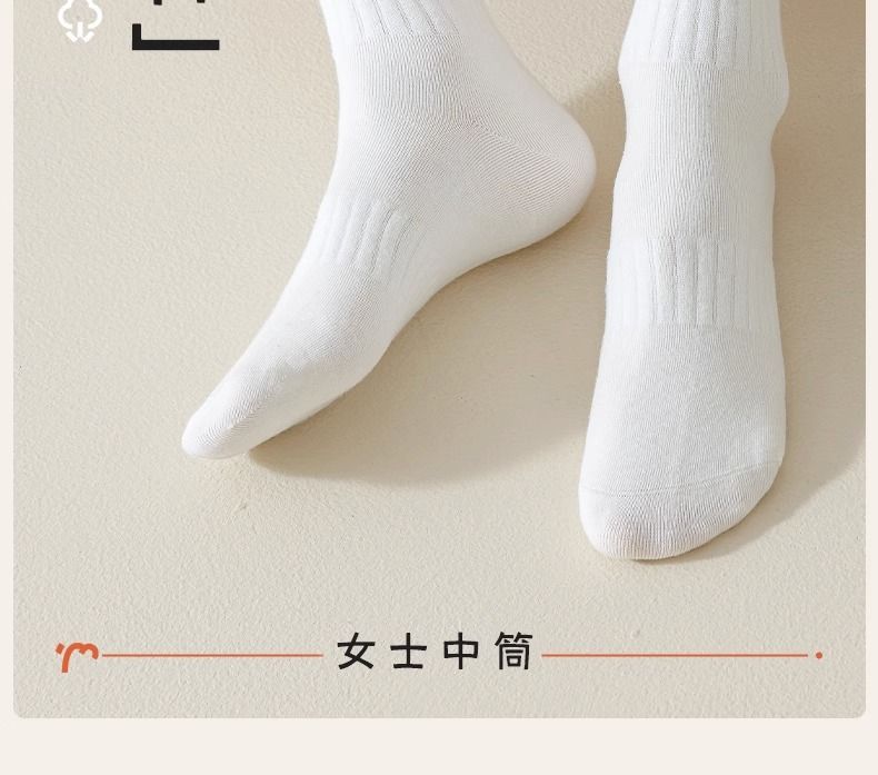 猫人白色无骨袜子女秋冬款纯棉中筒袜防臭百搭运动袜秋季日系棉袜
