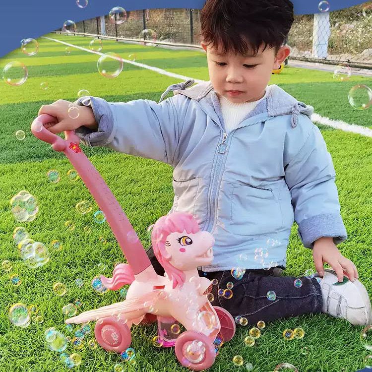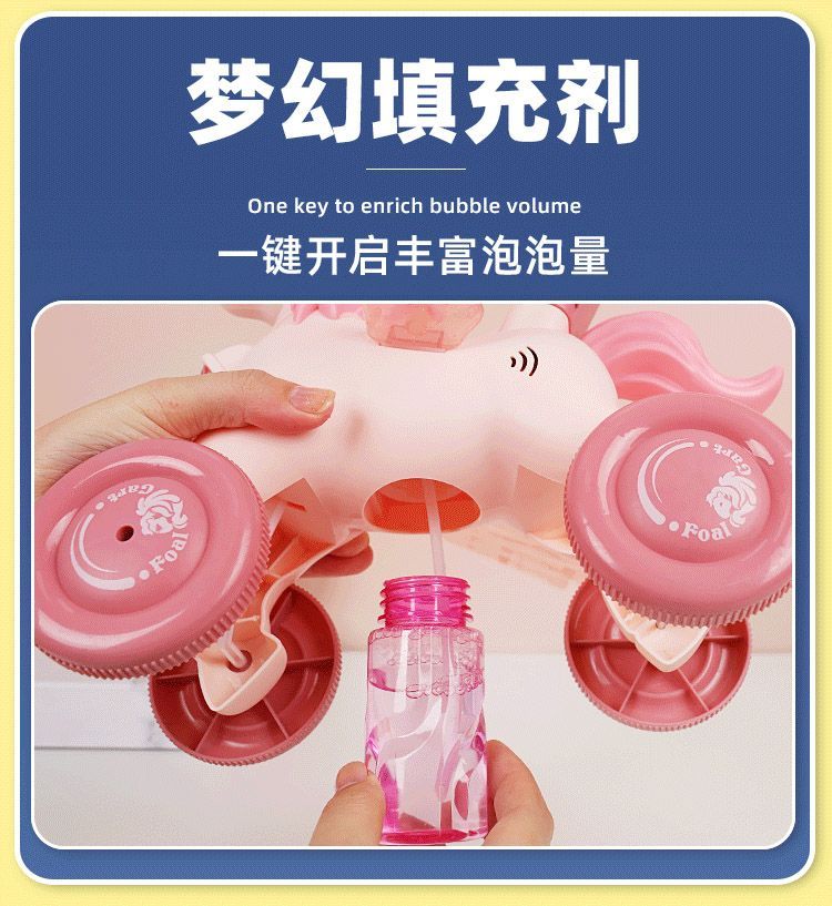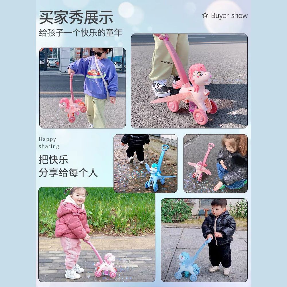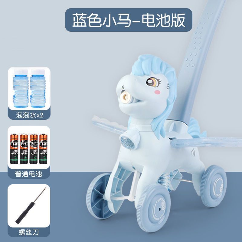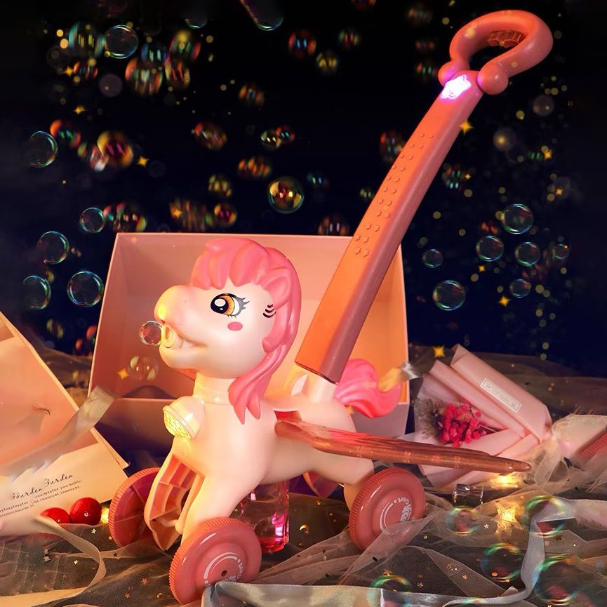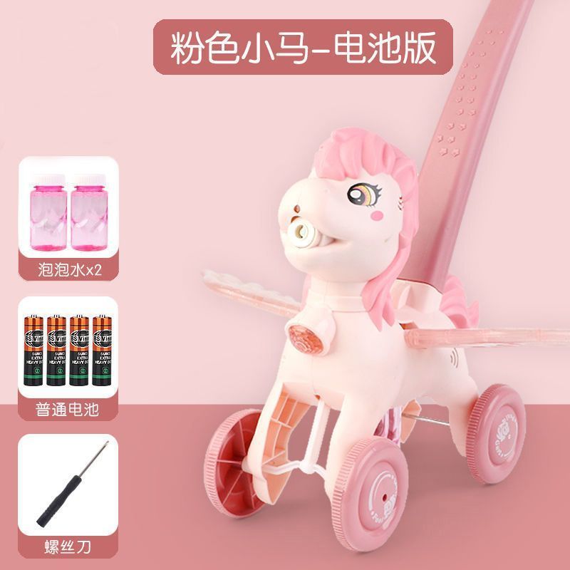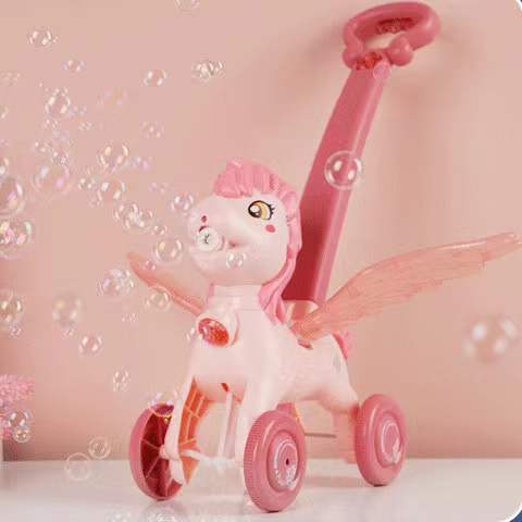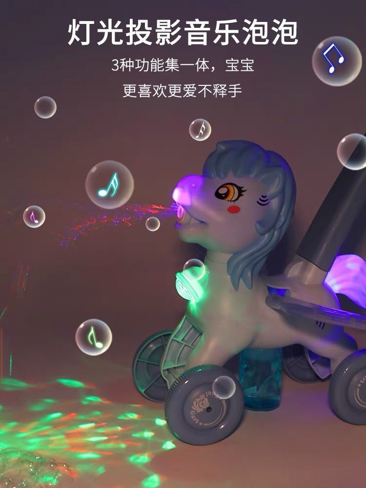 2023新款小马手推车电动声光全自动吹泡泡机男女孩户外玩具防漏水