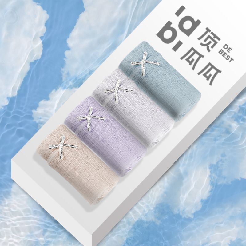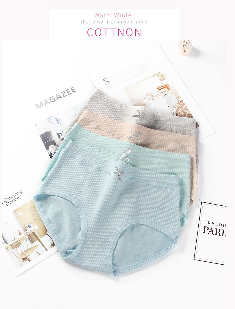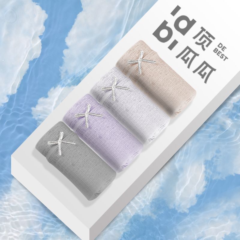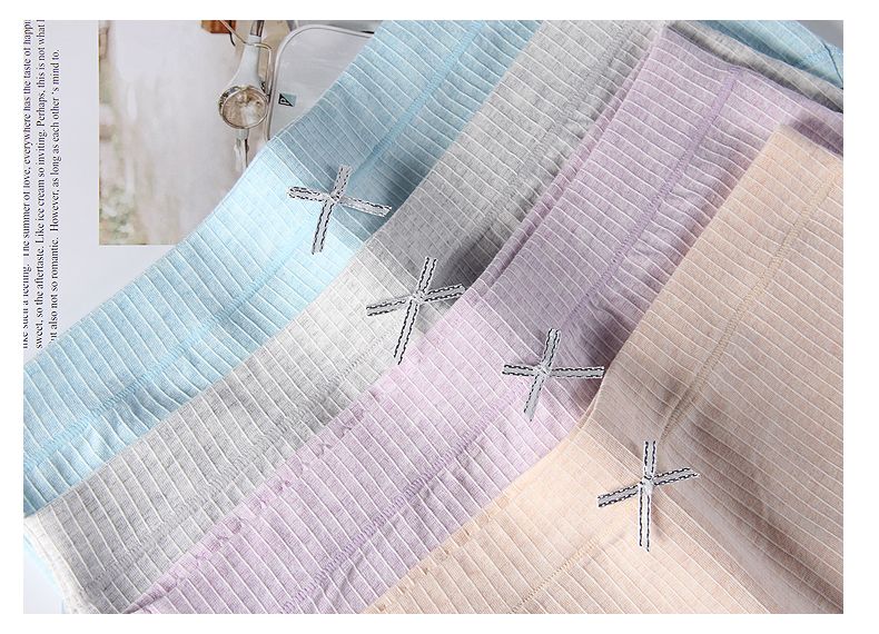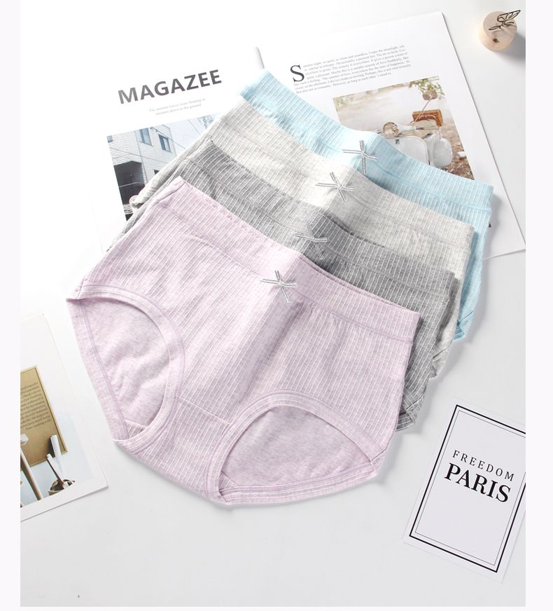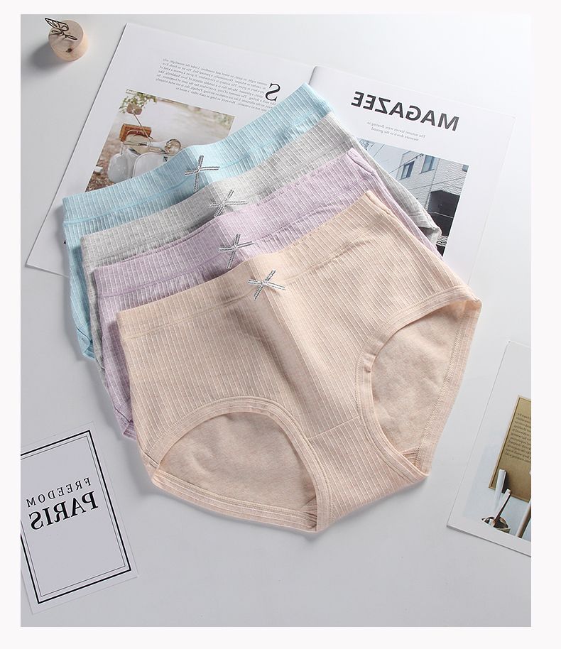 顶瓜瓜女士内裤棉质4条装女士中腰内裤螺纹蝴蝶结三角内裤女大码