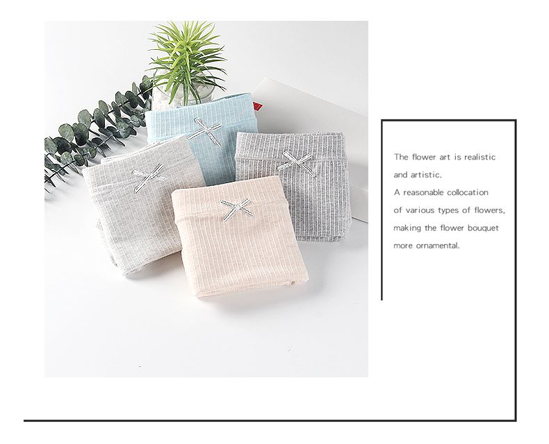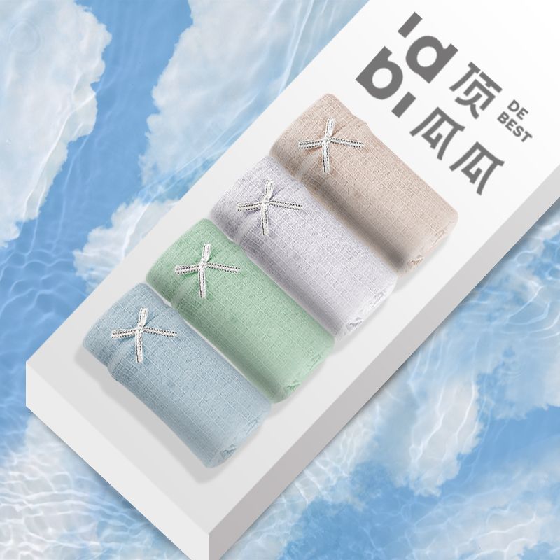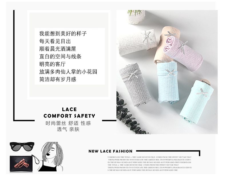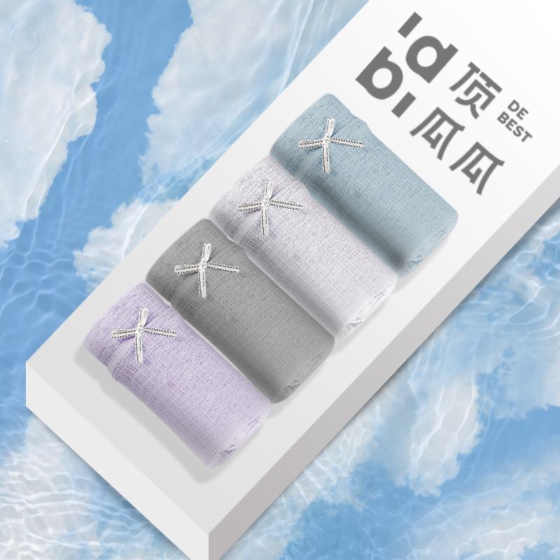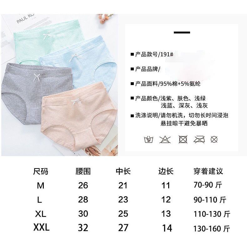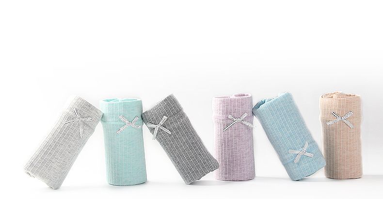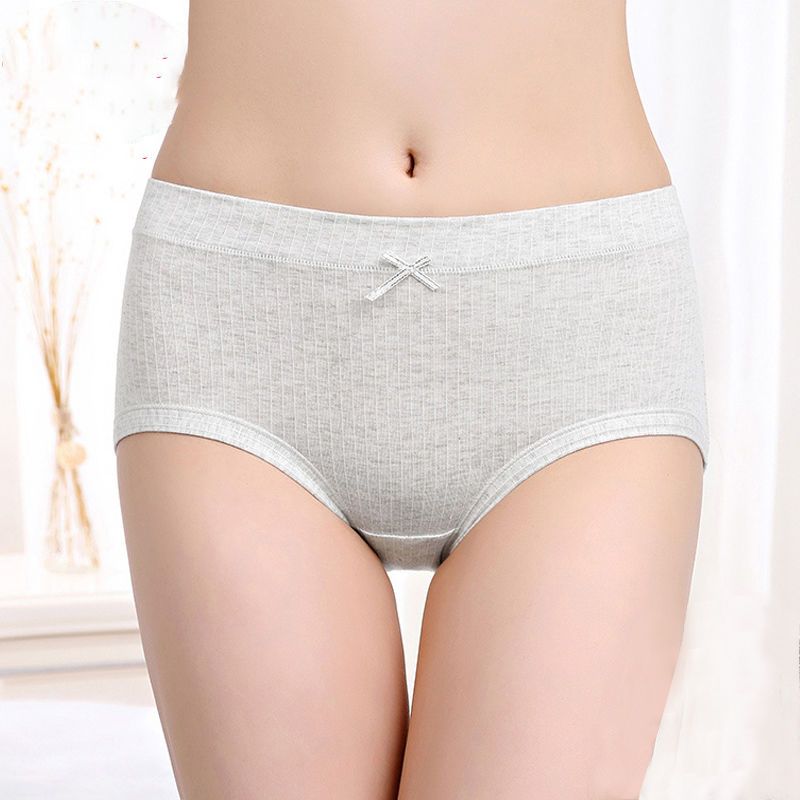 顶瓜瓜女士内裤棉质4条装女士中腰内裤螺纹蝴蝶结三角内裤女大码