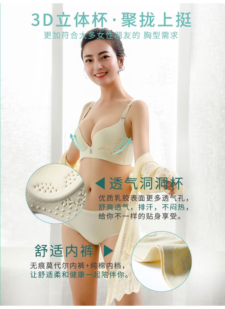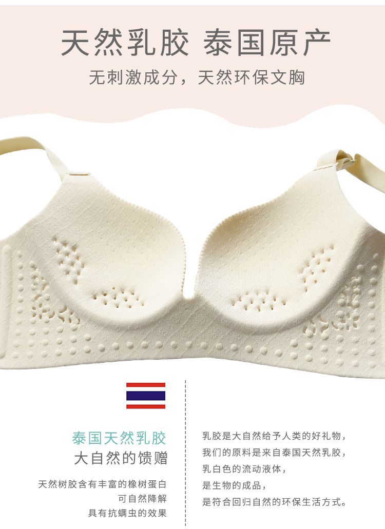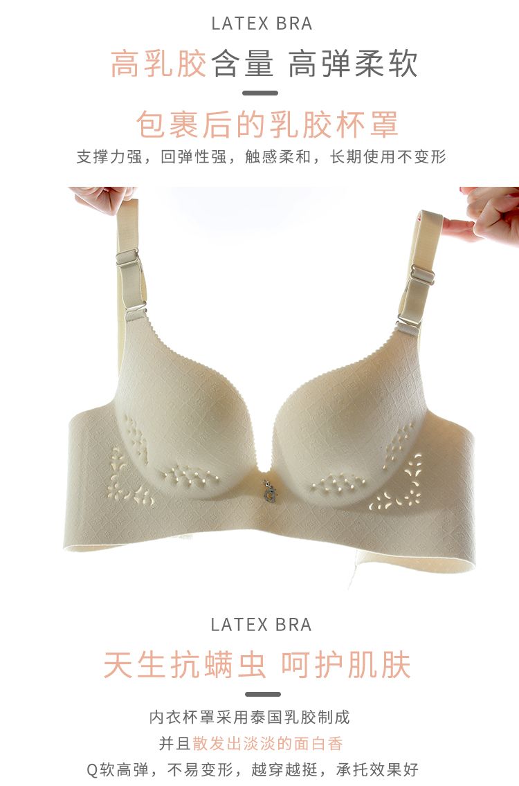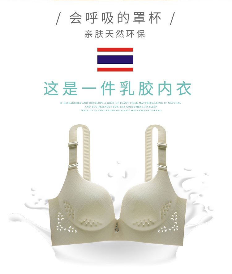 泰国乳胶内衣女无钢圈聚拢收副乳无痕一片式透气罩超薄文胸夏薄款