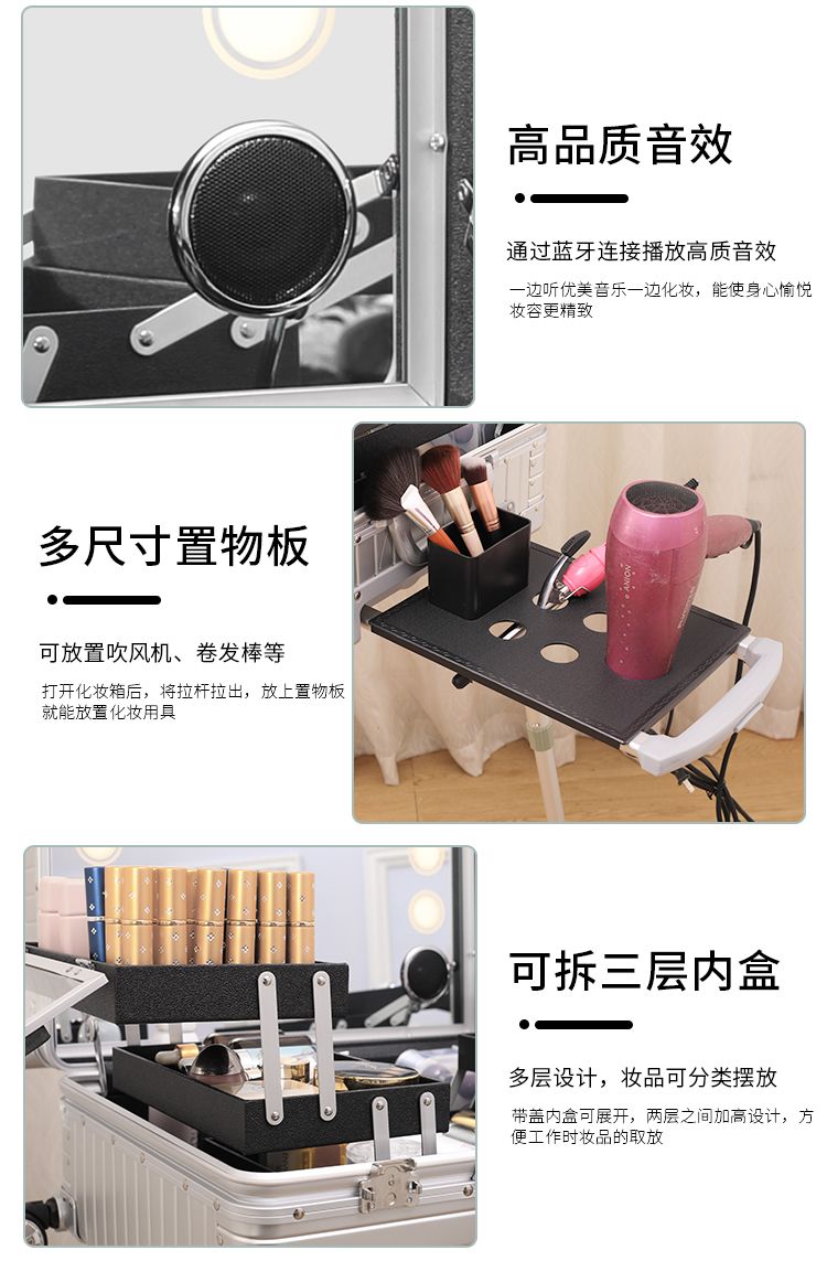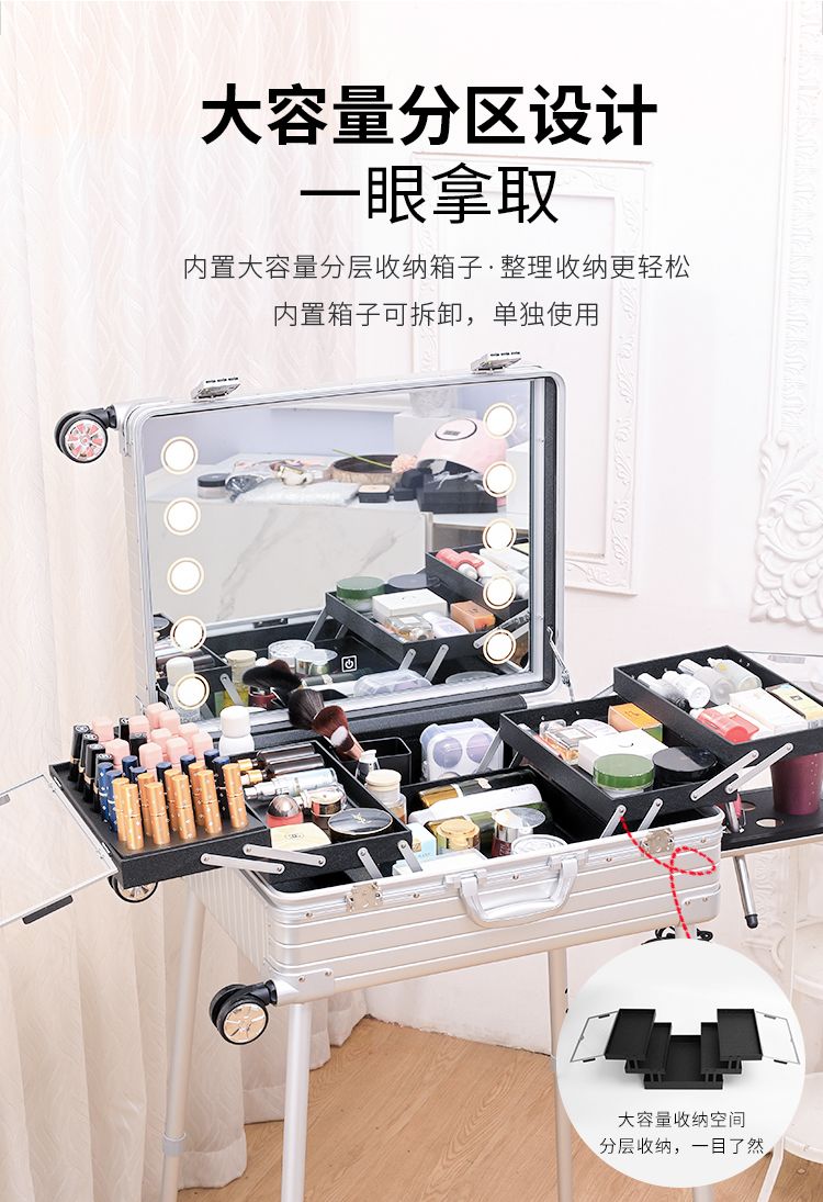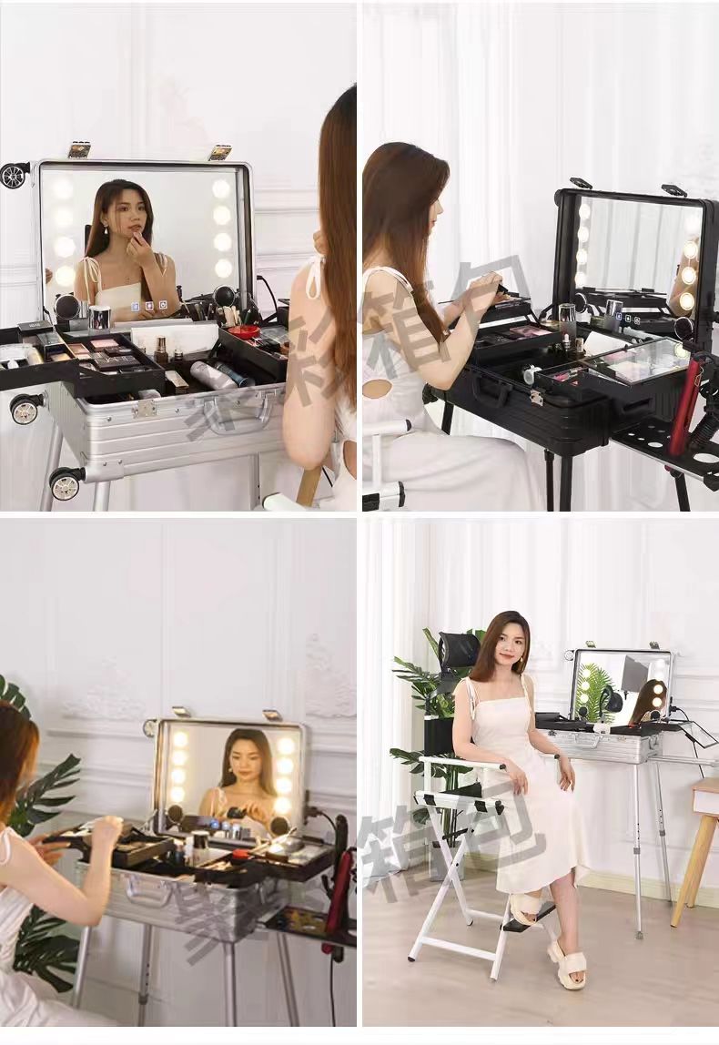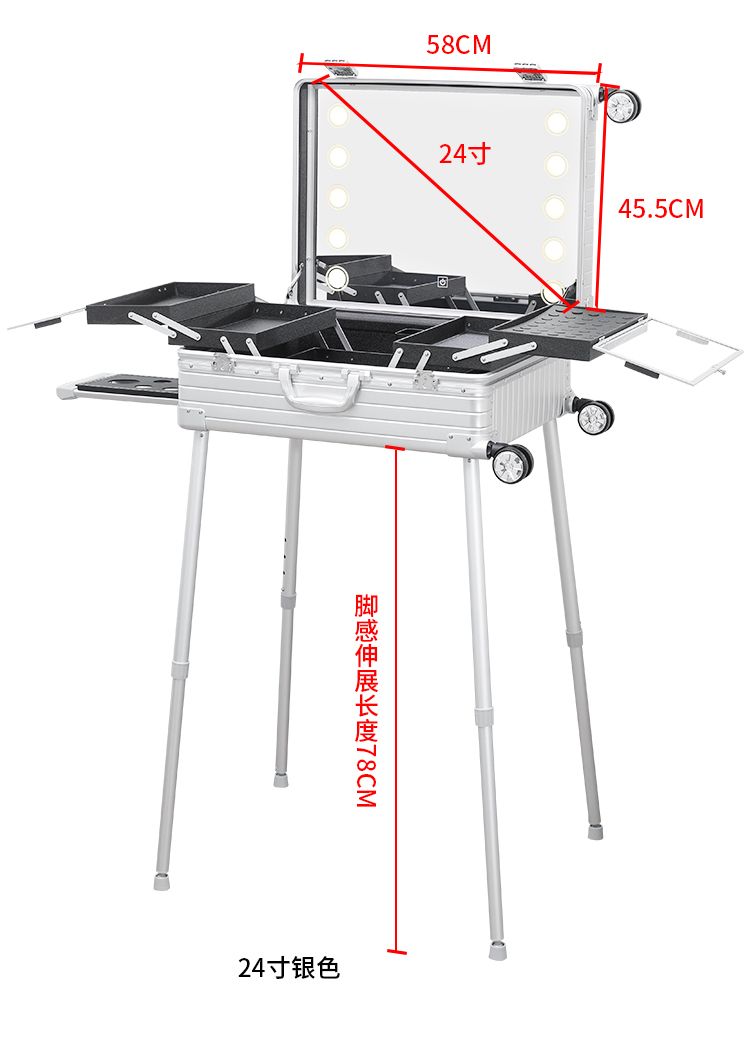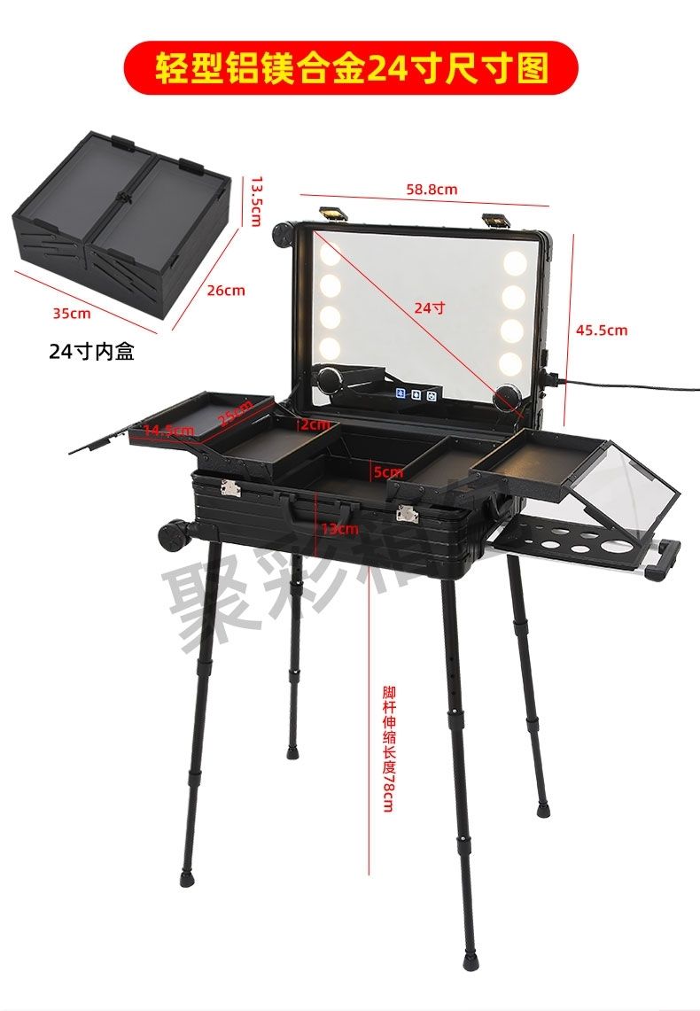 化妆箱化妆师专用轻型铝镁合金带灯隐藏支架理发工具箱24寸PC材质