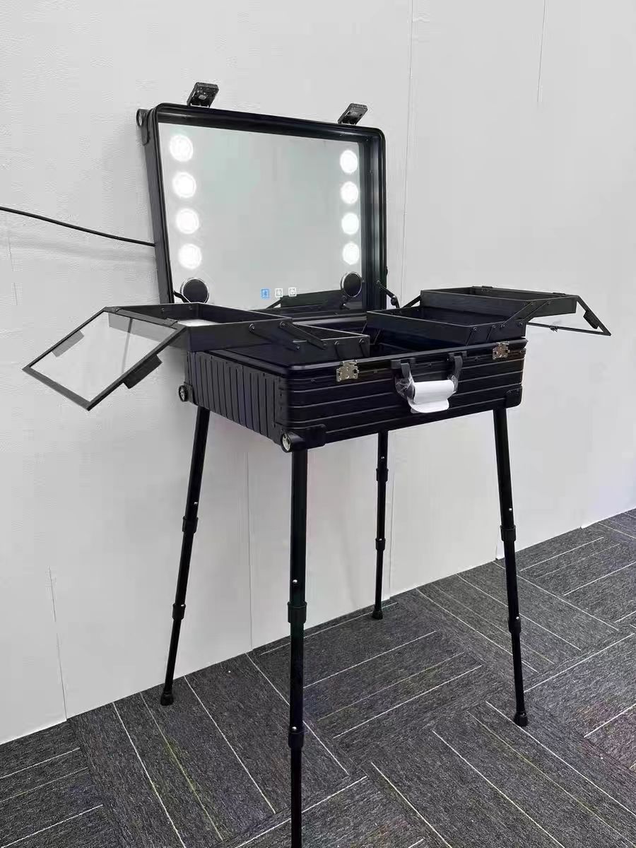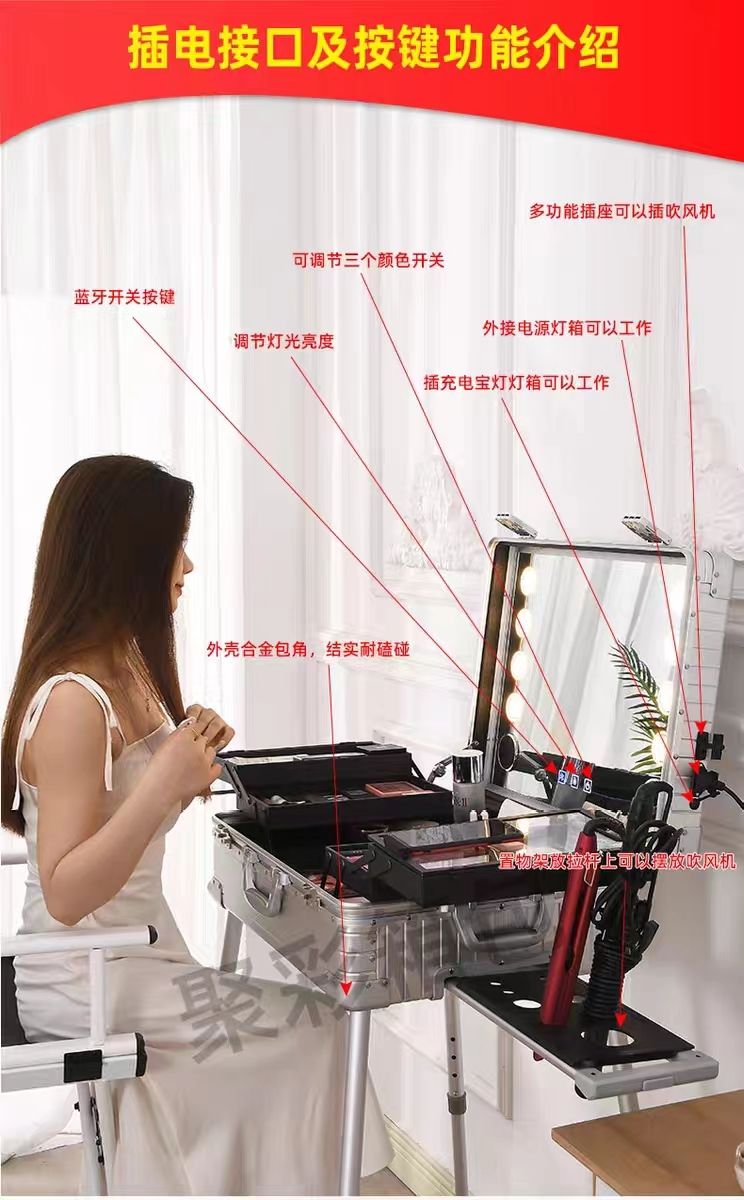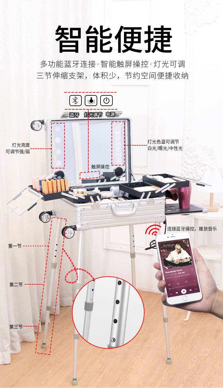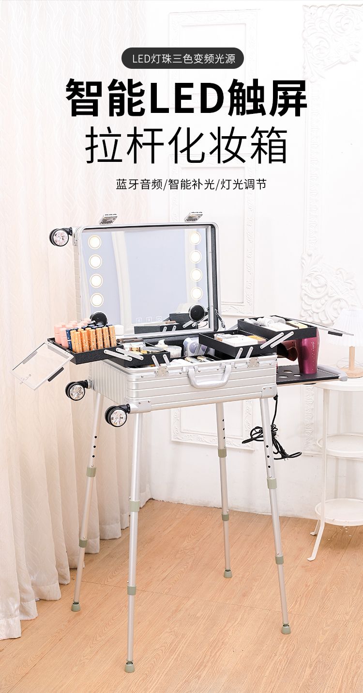 化妆箱化妆师专用轻型铝镁合金带灯隐藏支架理发工具箱24寸PC材质