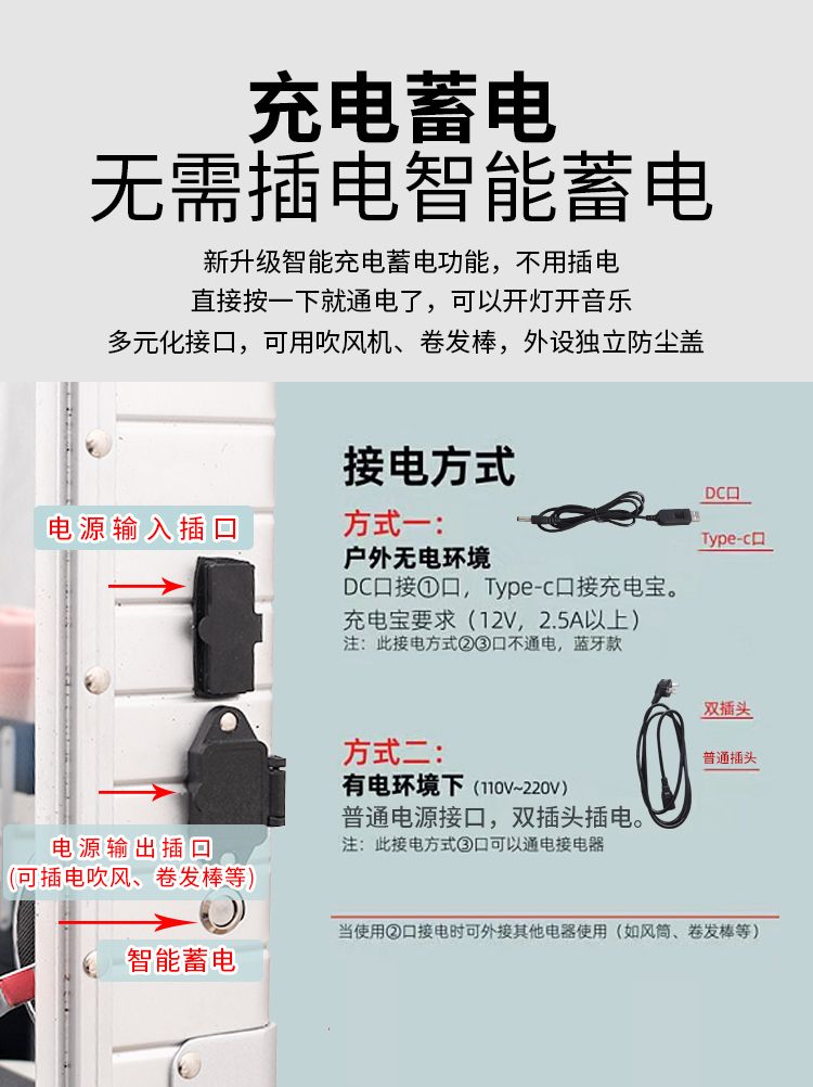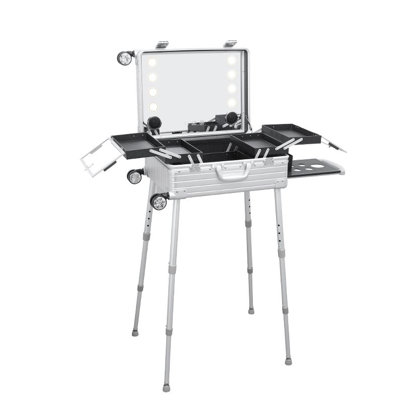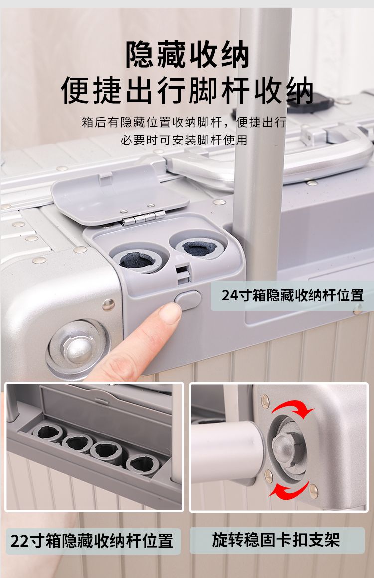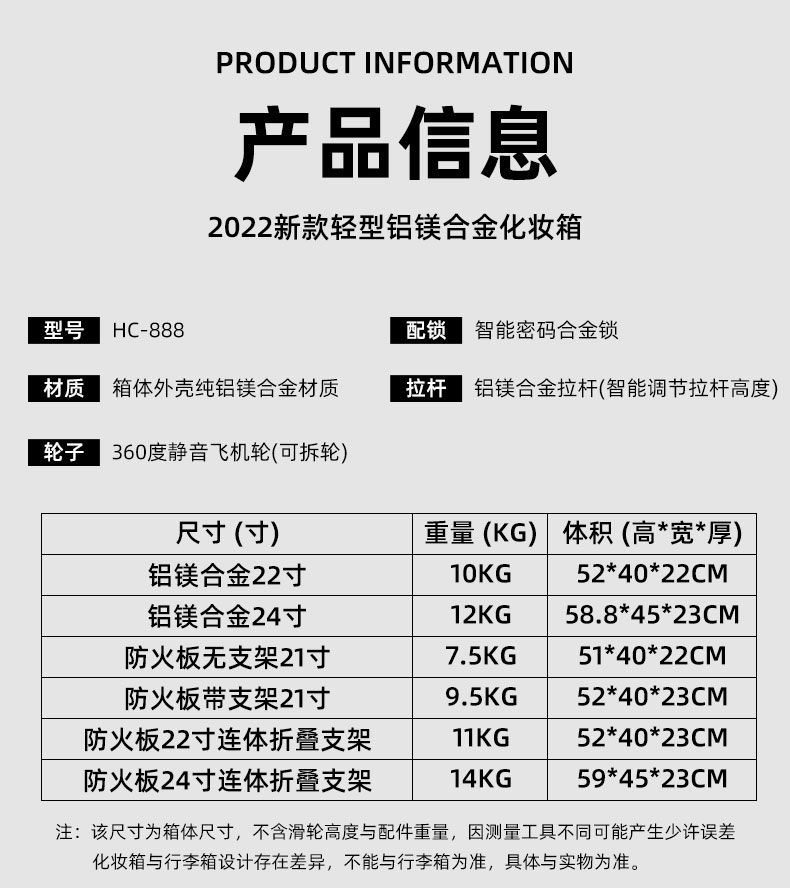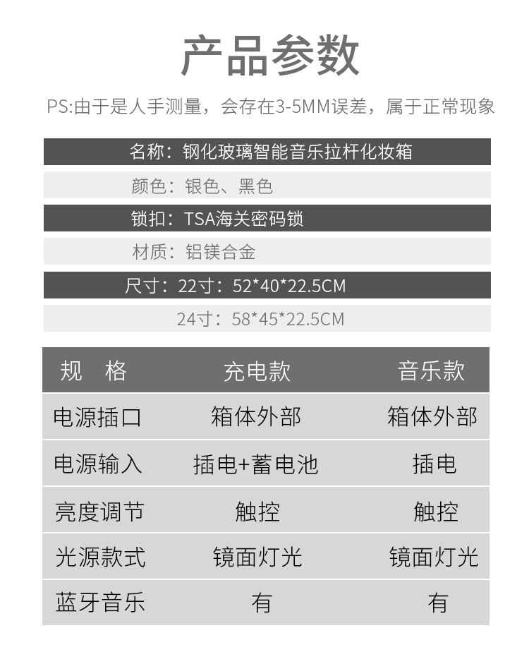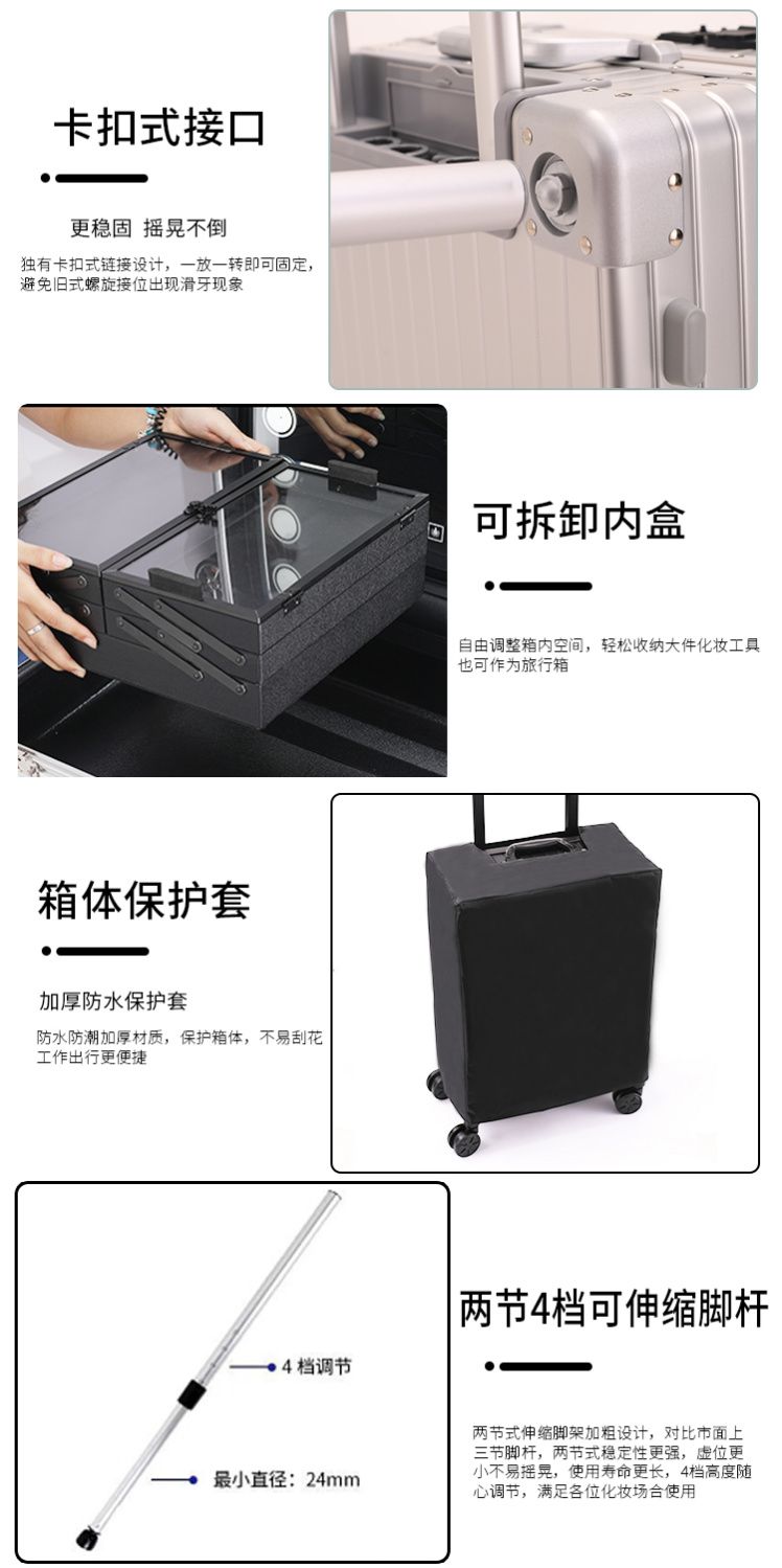 化妆箱化妆师专用轻型铝镁合金带灯隐藏支架理发工具箱24寸PC材质