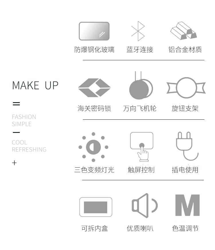 | aluminum magnesium * hidden bracket 24 inch silver 8 light bluetooth(铝镁合金*隐藏支架24寸银8灯蓝牙) | USD $319.88 | 99999 piece available |