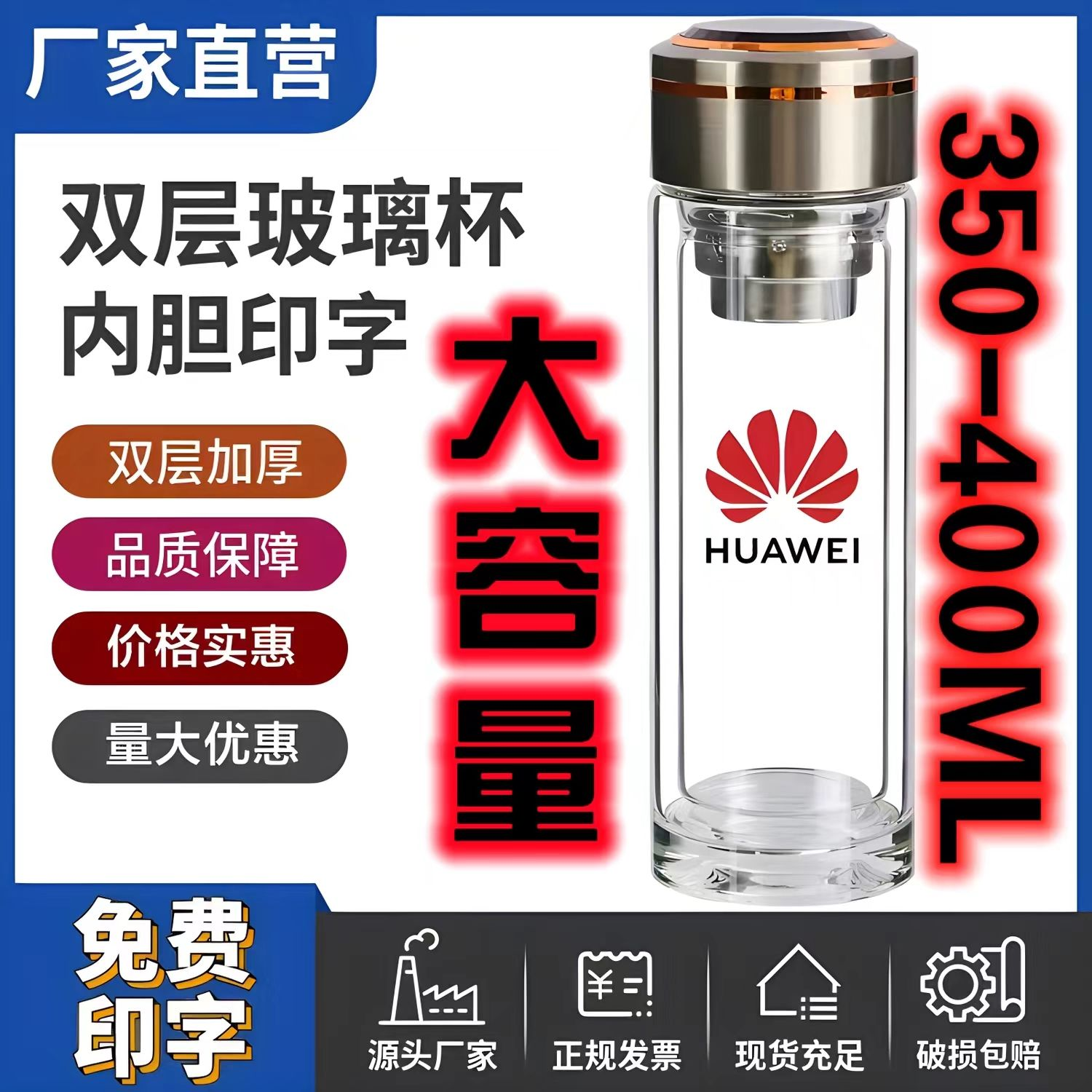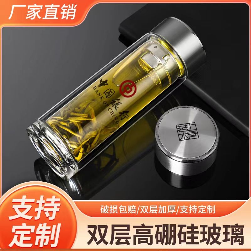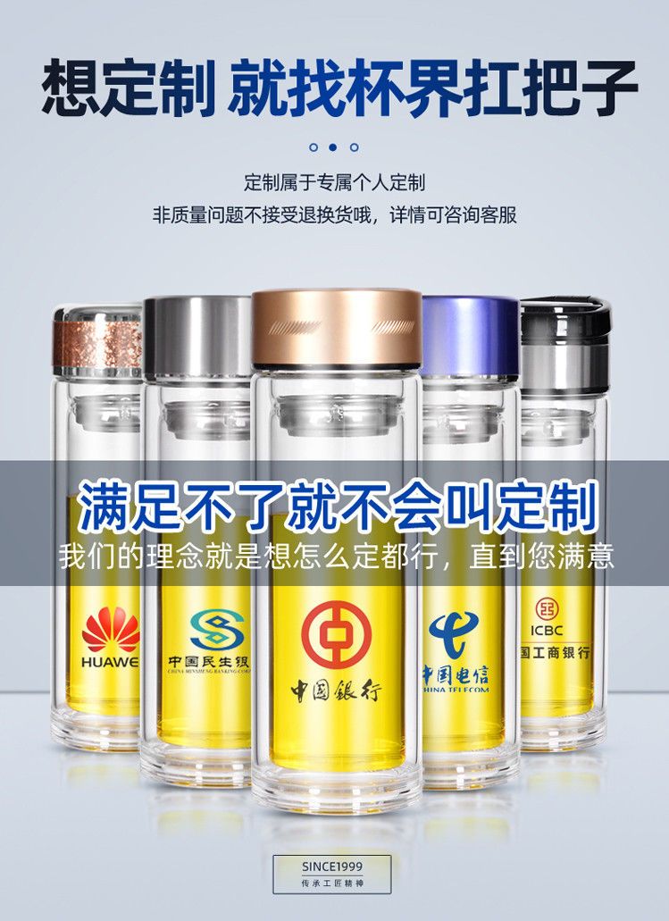 水杯定制双层玻璃杯广告杯印字logo定做茶杯开业小礼品活动赠品