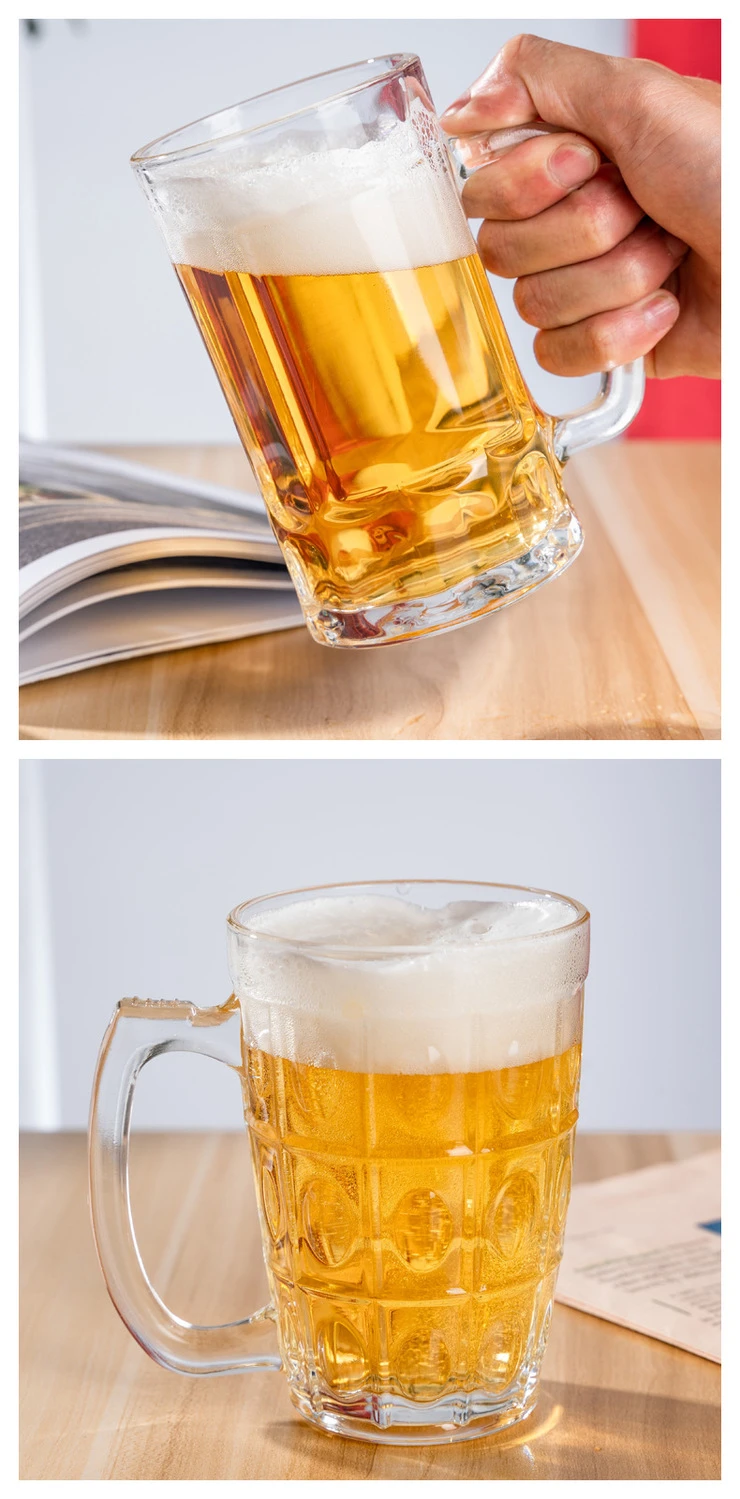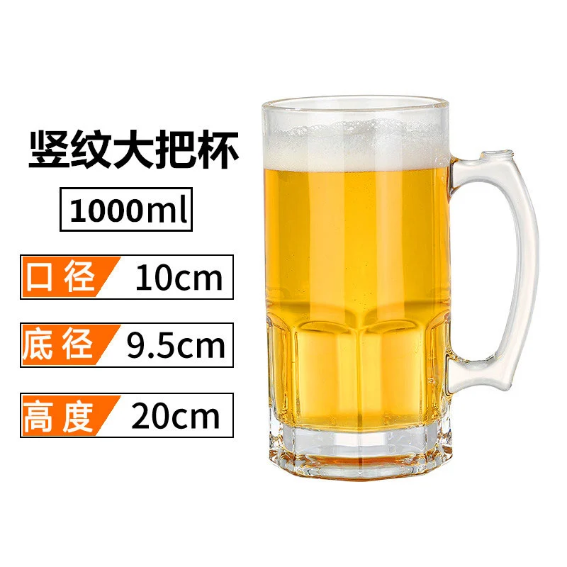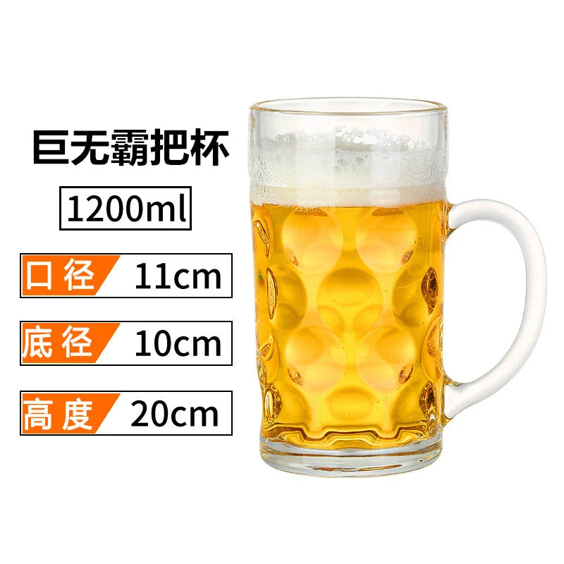整箱价网红大容量啤酒杯加厚酒吧扎啤杯英雄杯带把手创意玻璃杯子