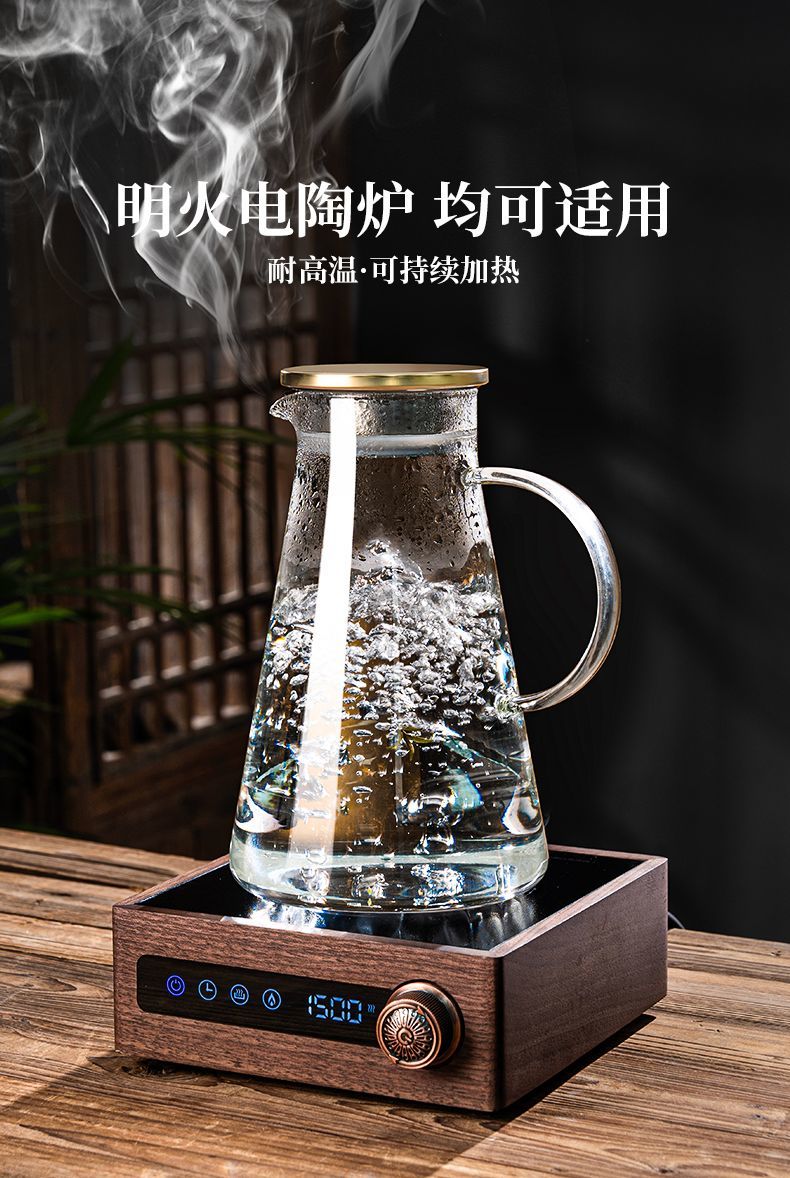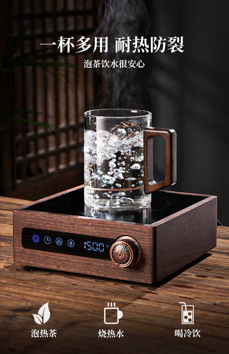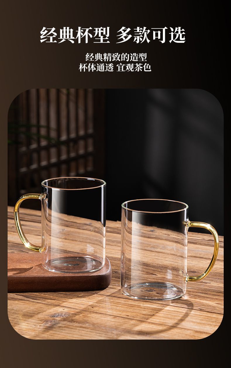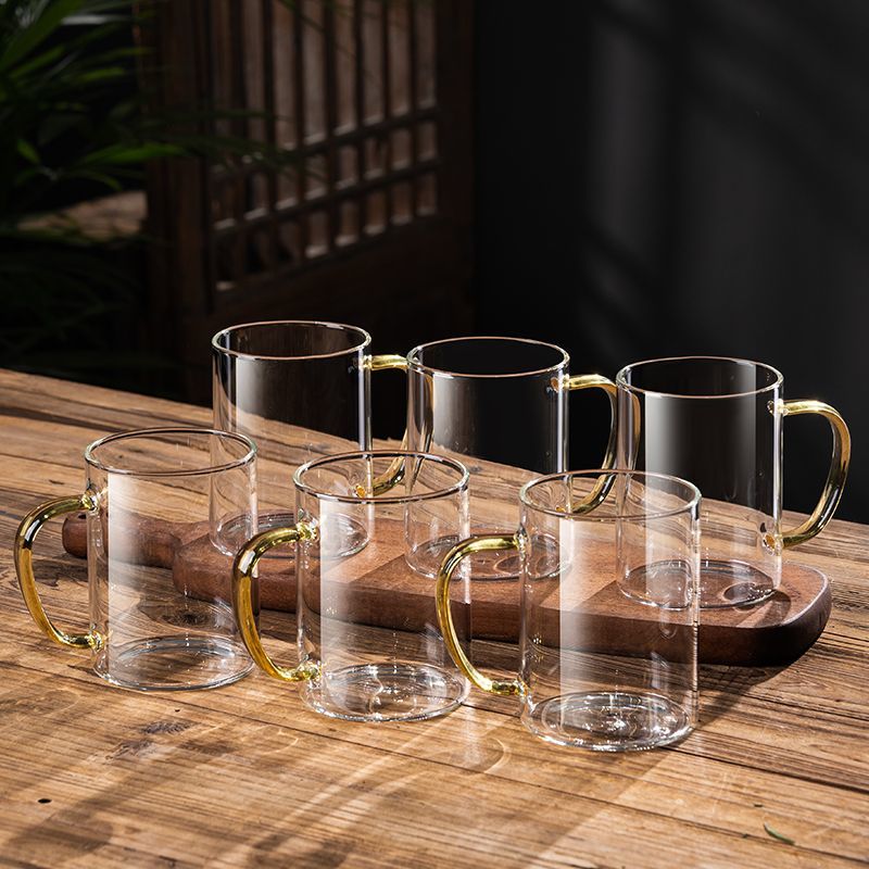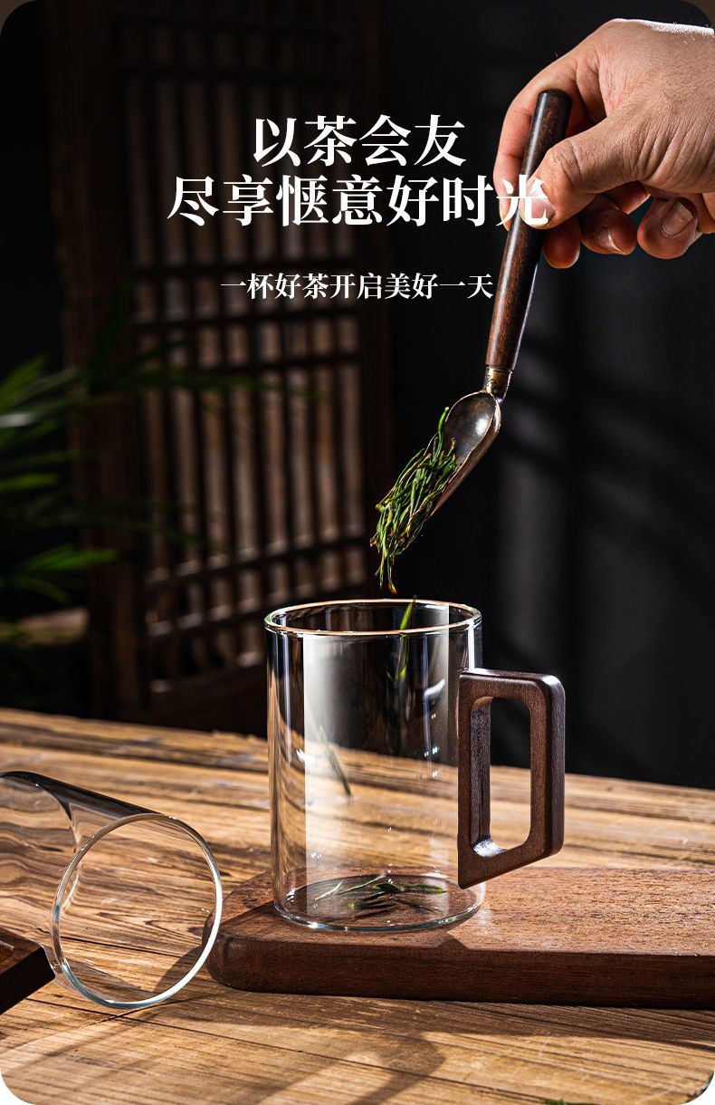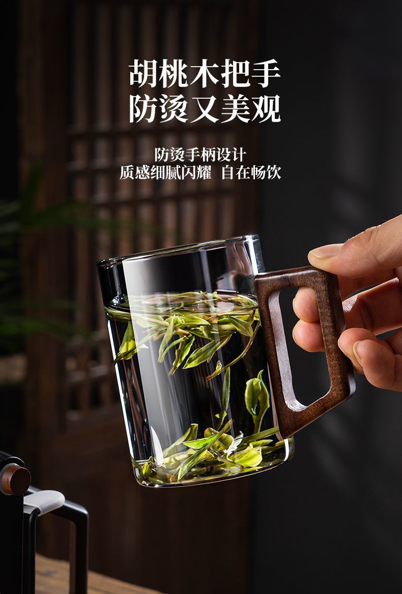 中式玻璃水杯套装家用客厅耐高温茶杯木柄待客杯子冷水壶2024新款