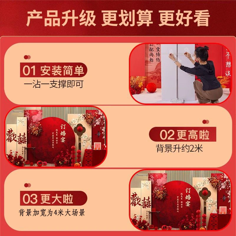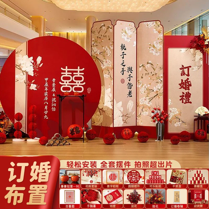 新中式订婚布置装饰kt板网红酒店婚礼宴摆件全套氛围感订婚背景板