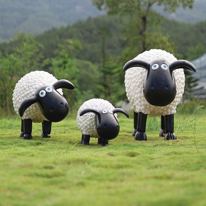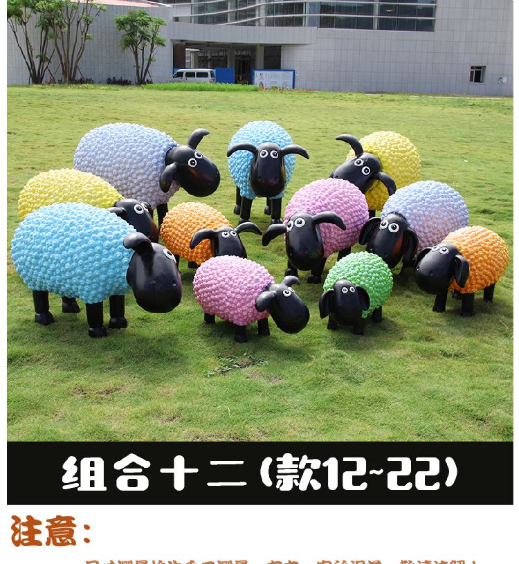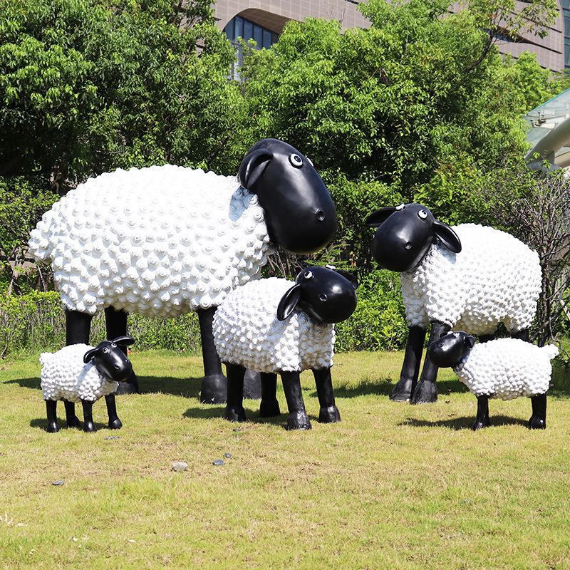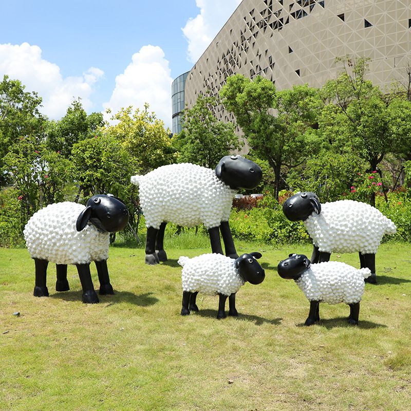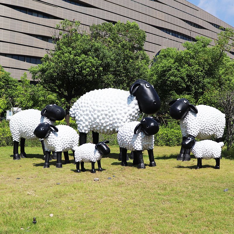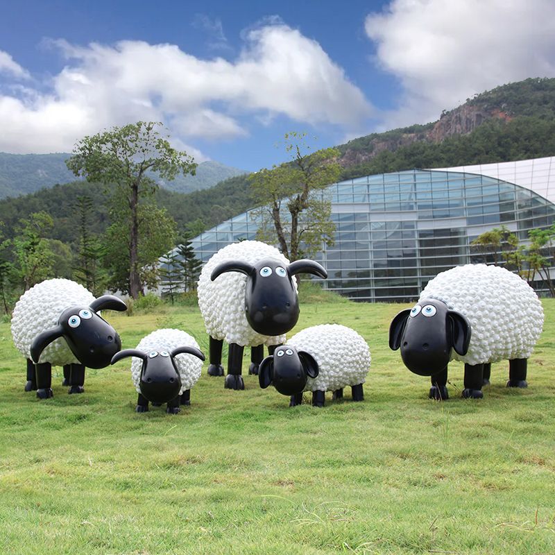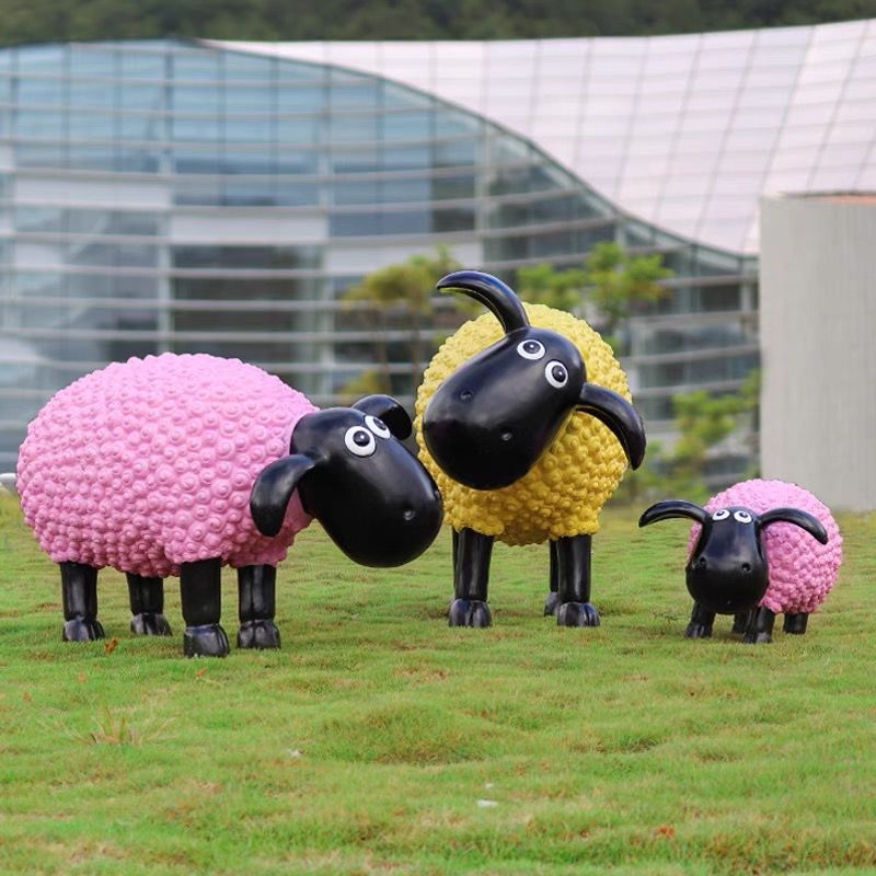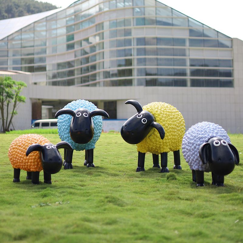 网红户外卡通卷毛羊玻璃钢雕塑园林景观小品摆件公园小区草坪装饰