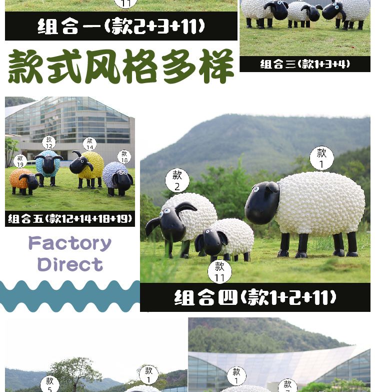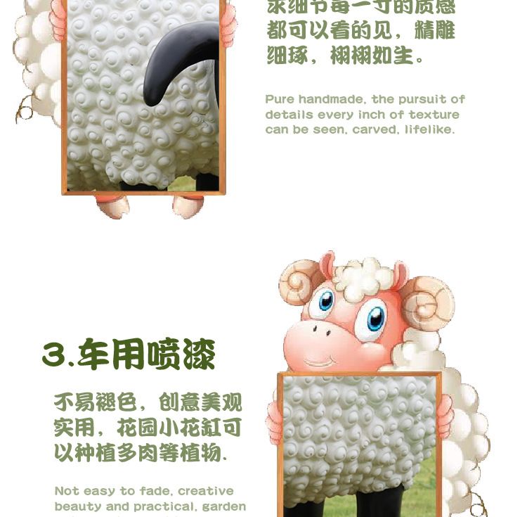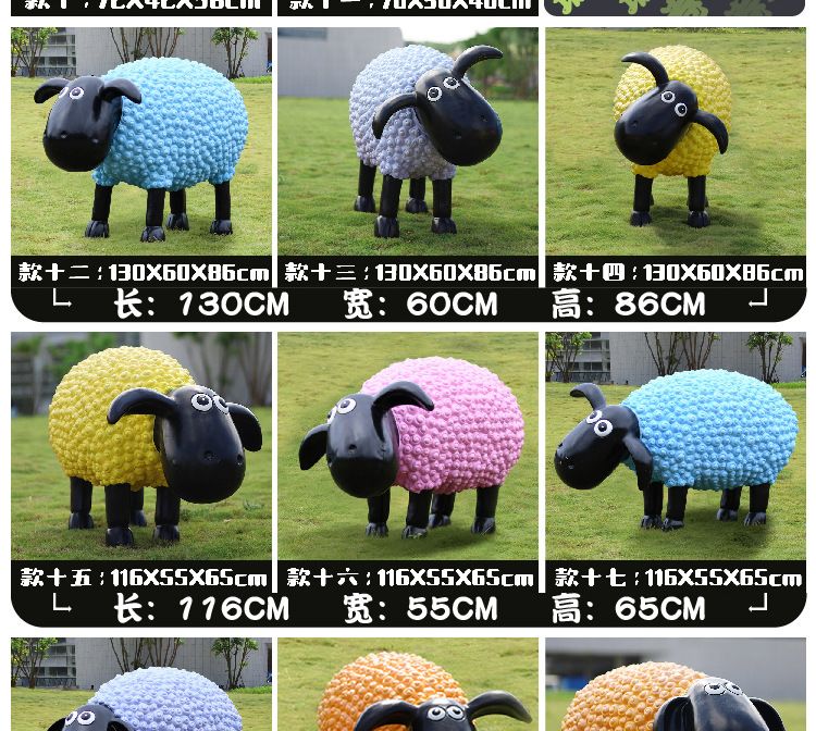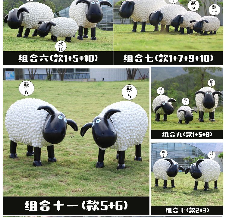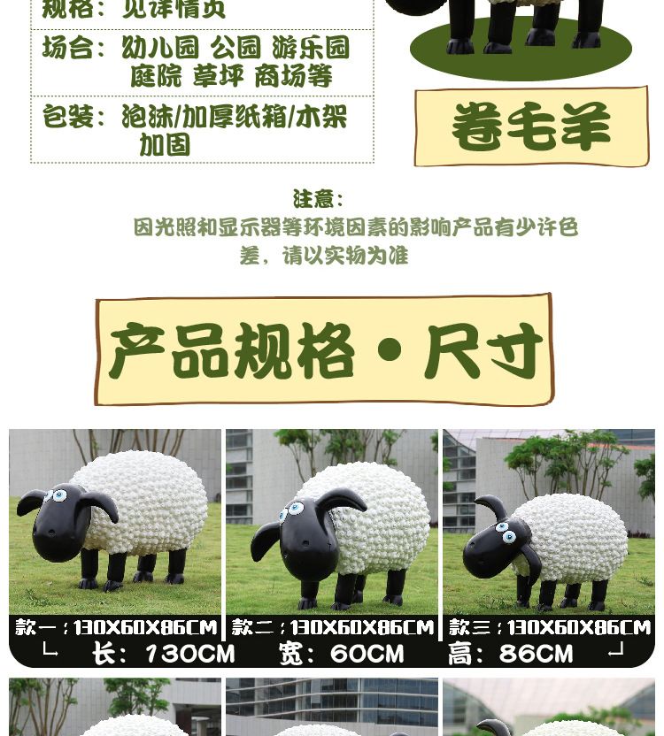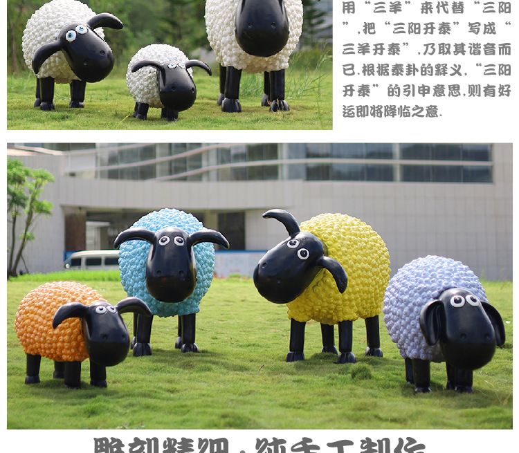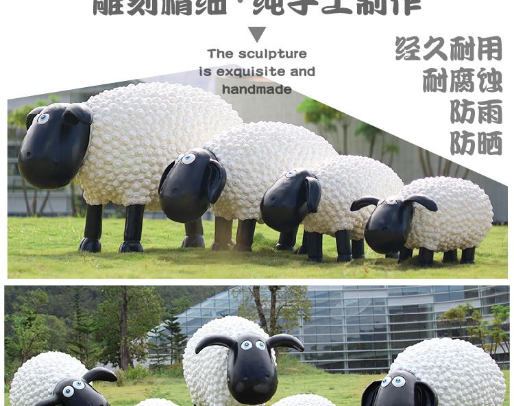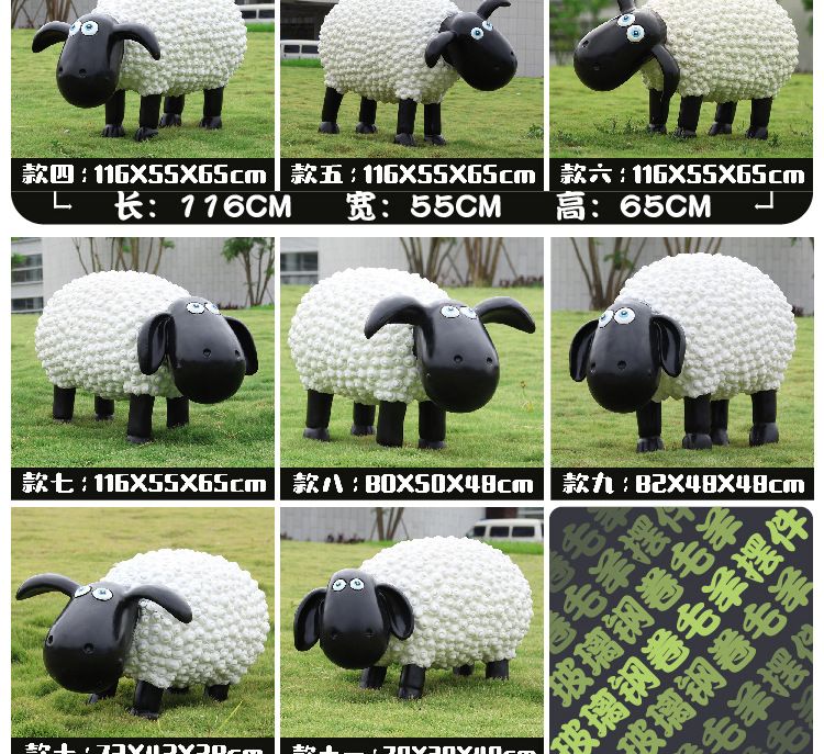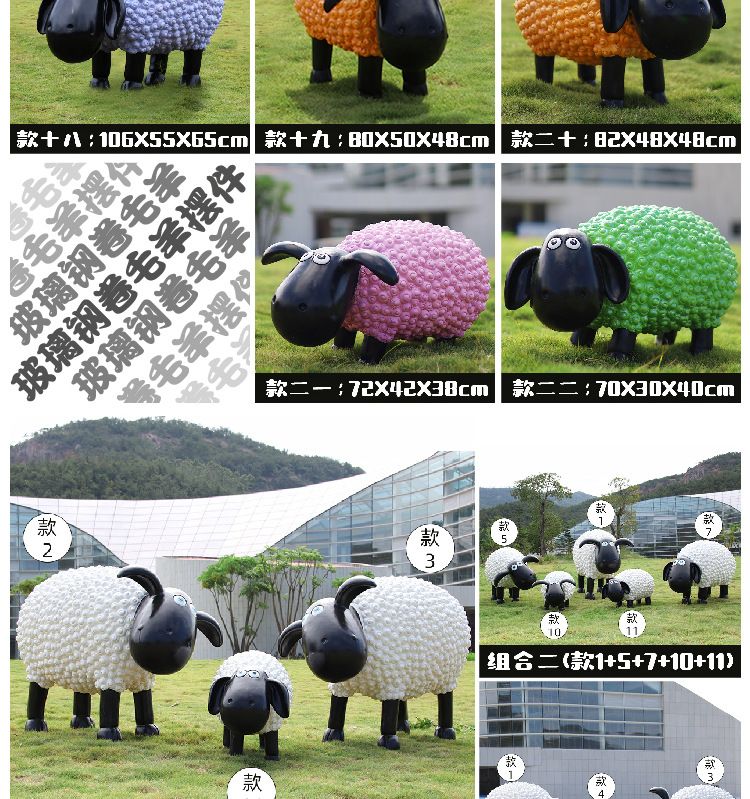 网红户外卡通卷毛羊玻璃钢雕塑园林景观小品摆件公园小区草坪装饰