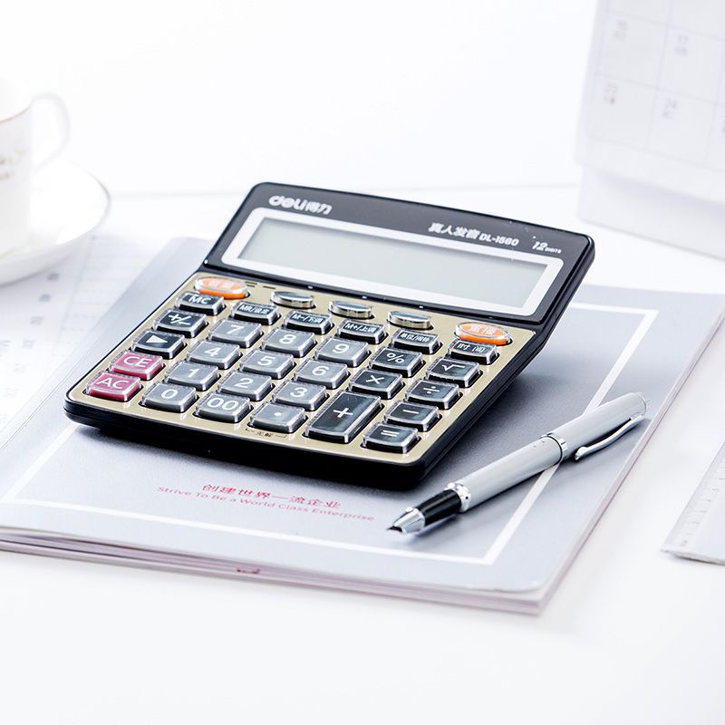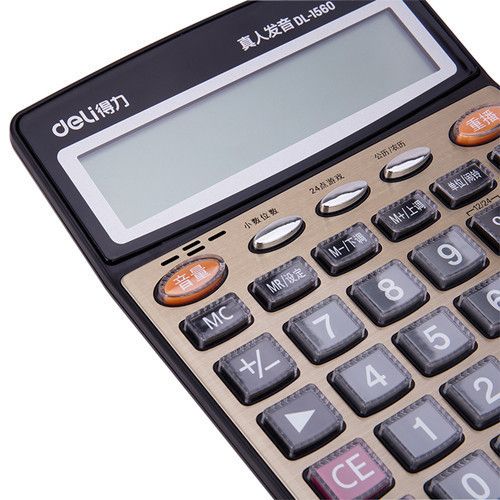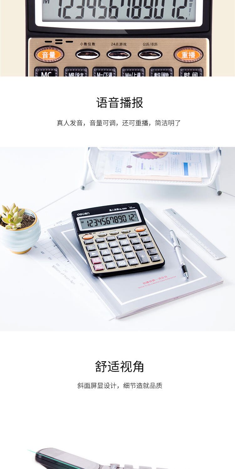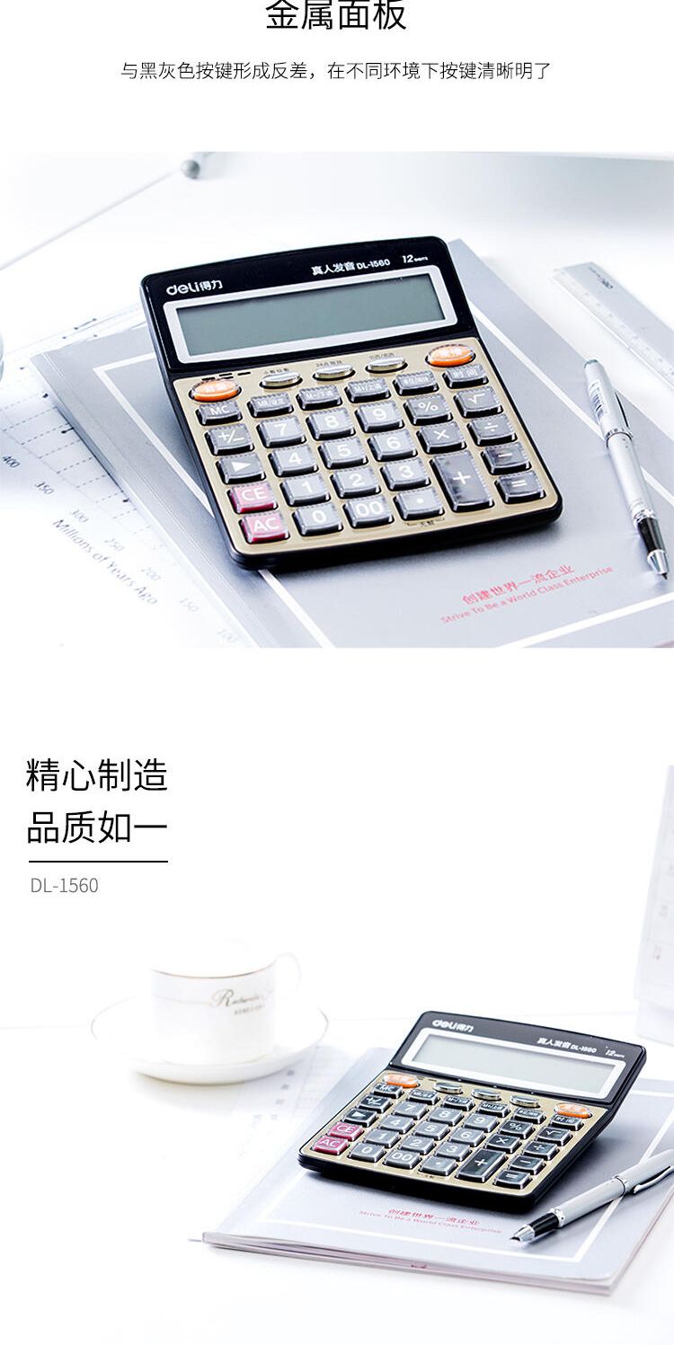 得力1560语音型计算器 12位真人发音大号带闹钟日期多功能计算机