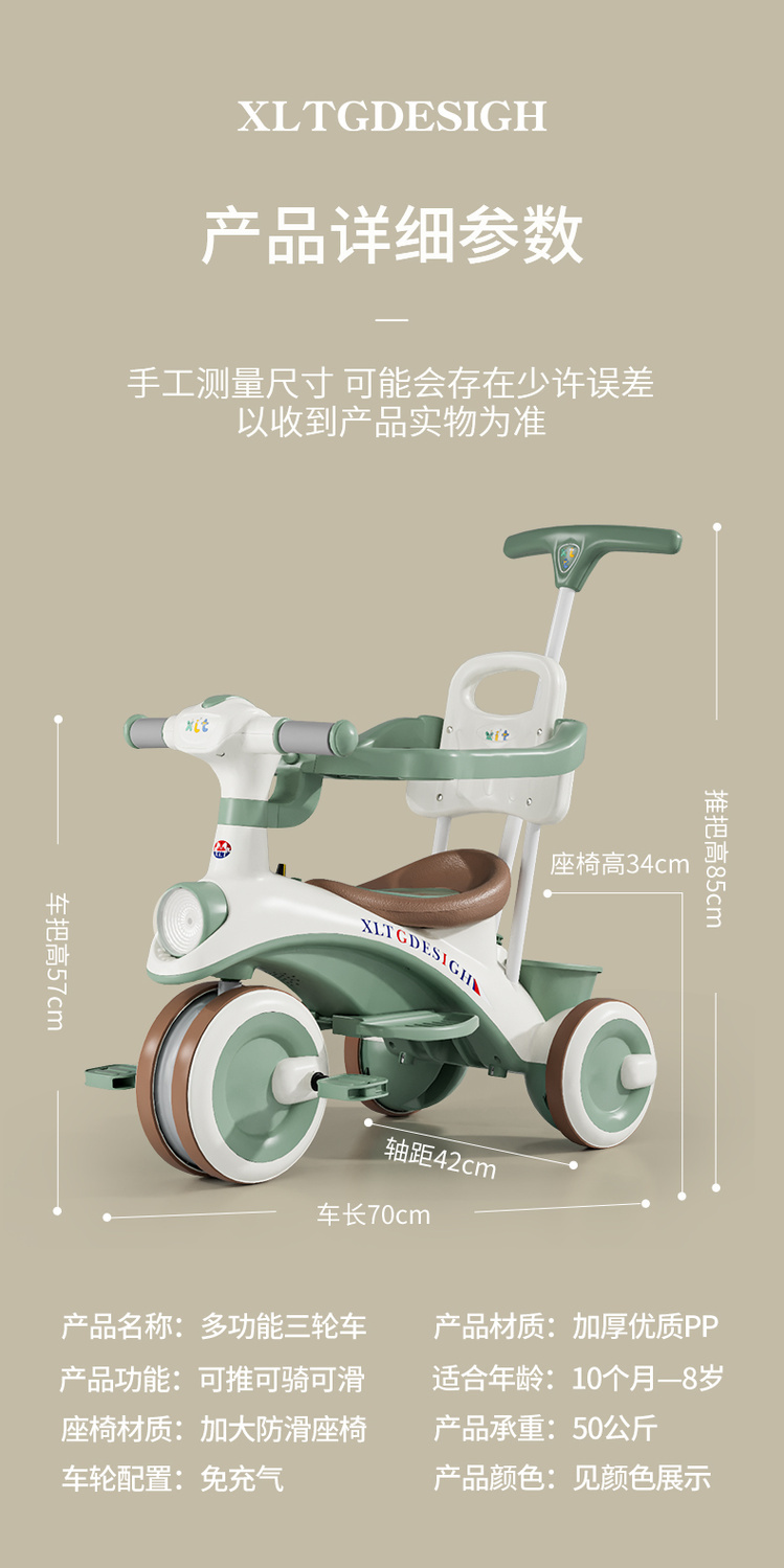 儿童三轮车脚踏车1-3-6岁宝宝推车小孩自行车婴幼儿手推车滑行车