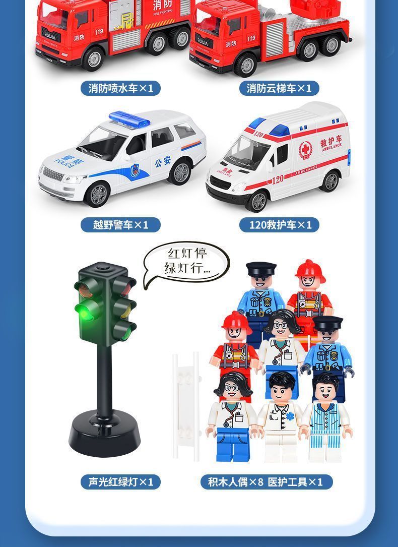 | 4 gift boxes (ambulance/police/ladder/fire fighting)(4只装礼盒(救护/警察/云梯/消防)) | USD $8.0 | 99998 piece available |