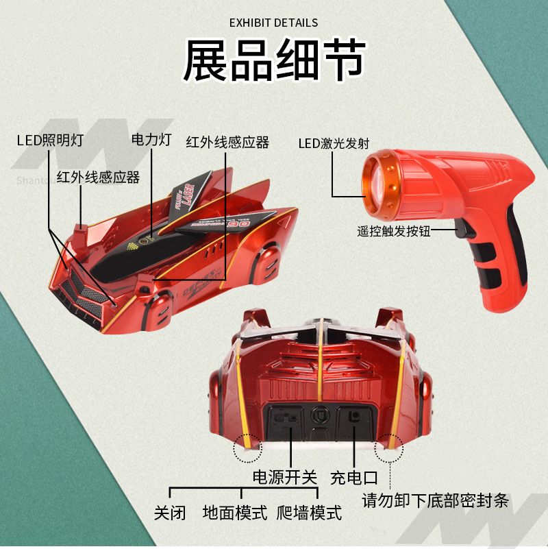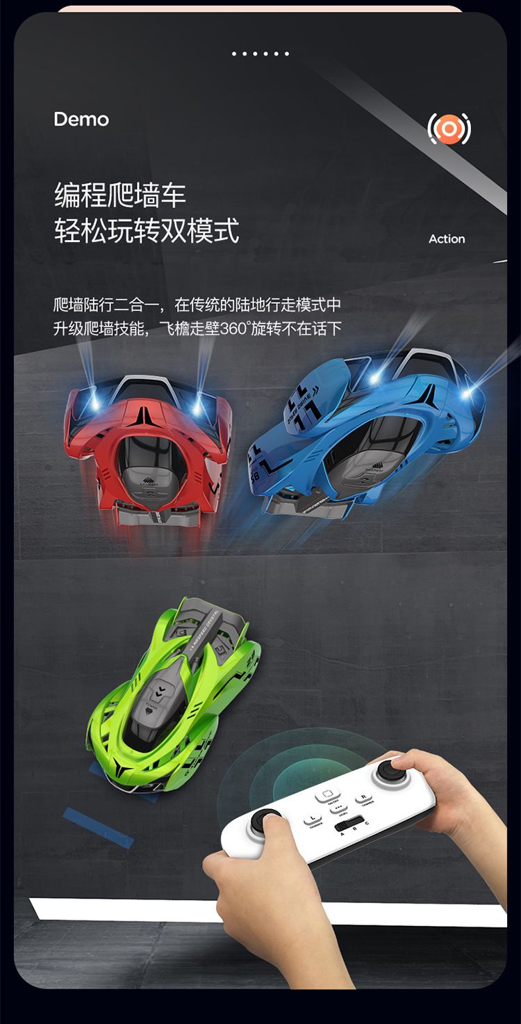 追光爬墙车儿童遥控汽车上墙车四驱车玩具赛车3小男孩6玩具车10岁