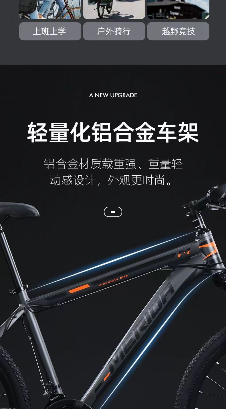 美利达山地铝合金自行车山地车成人男女青少年学生变速赛车单车