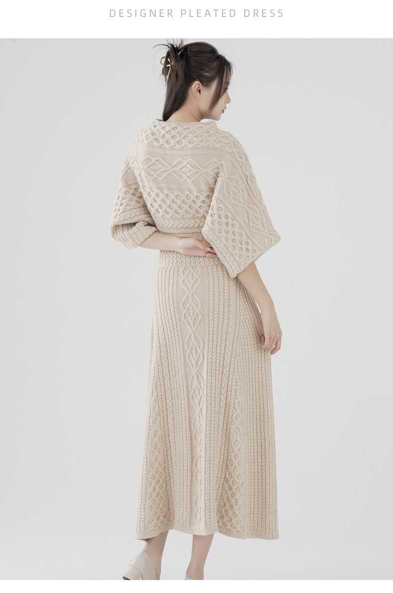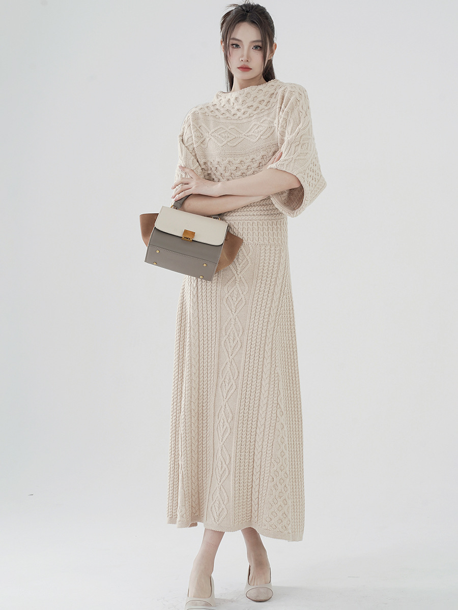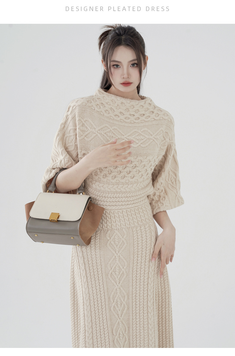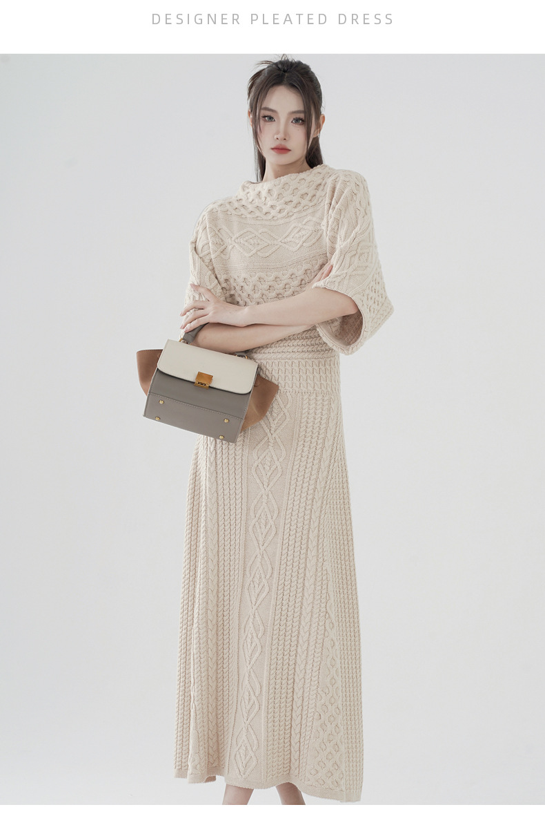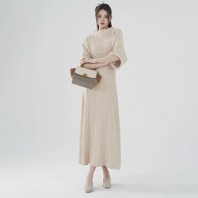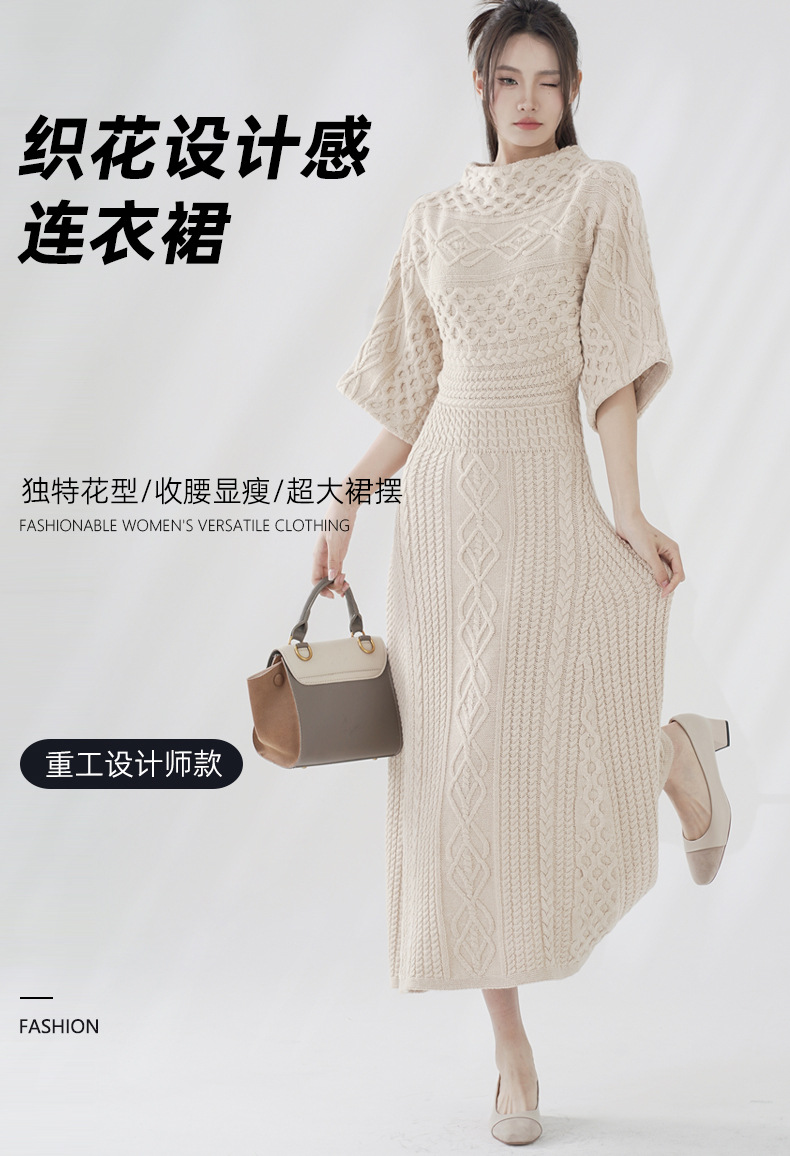 欧美女装早秋连衣裙高级感针织长裙外穿设计感收腰包臀裙长款裙子