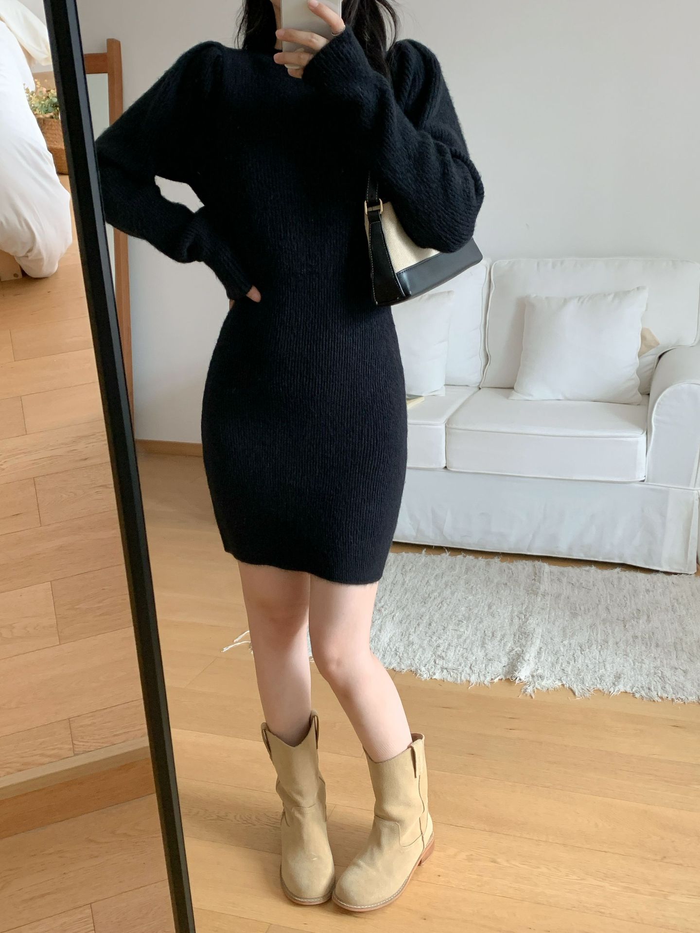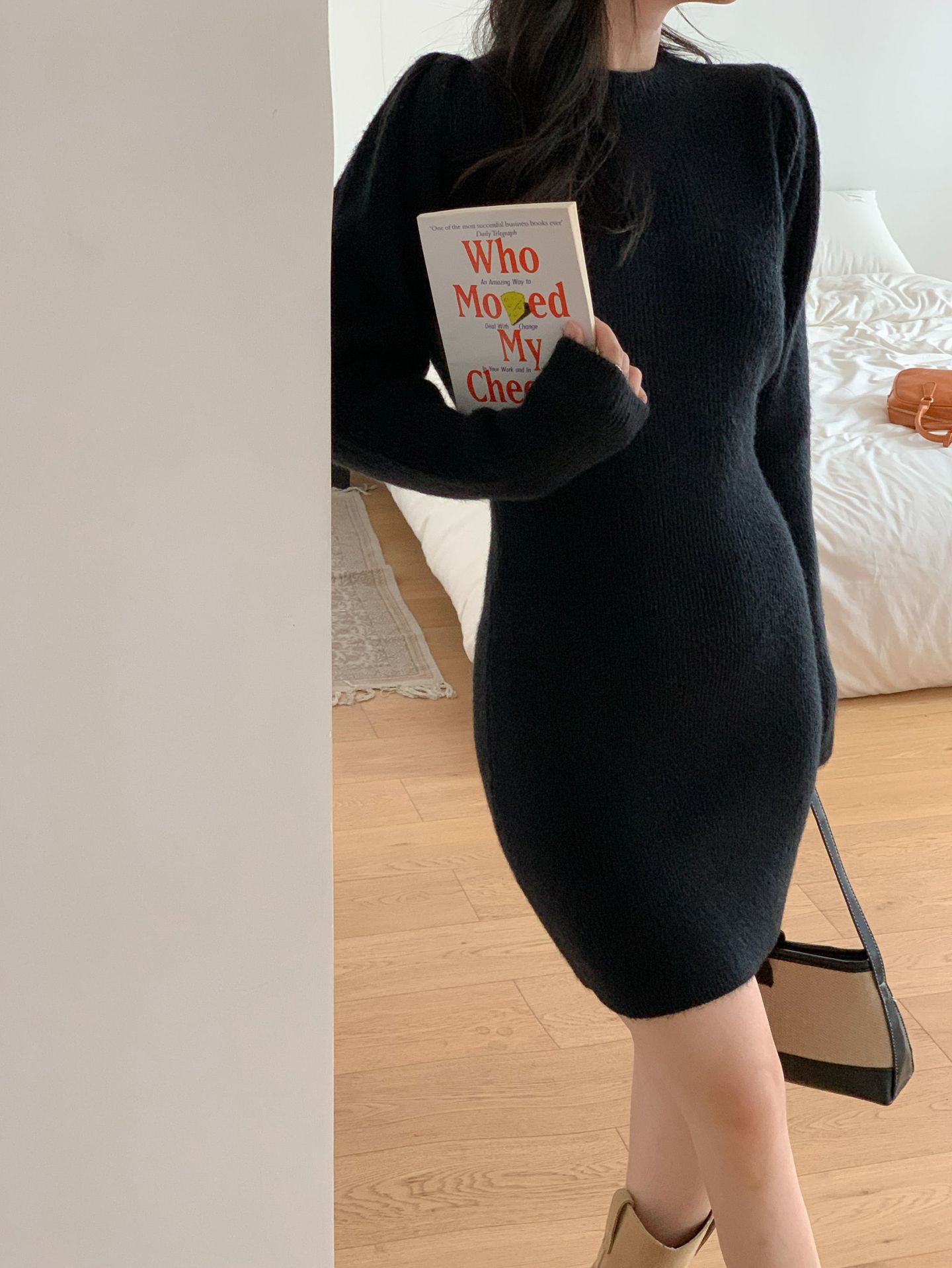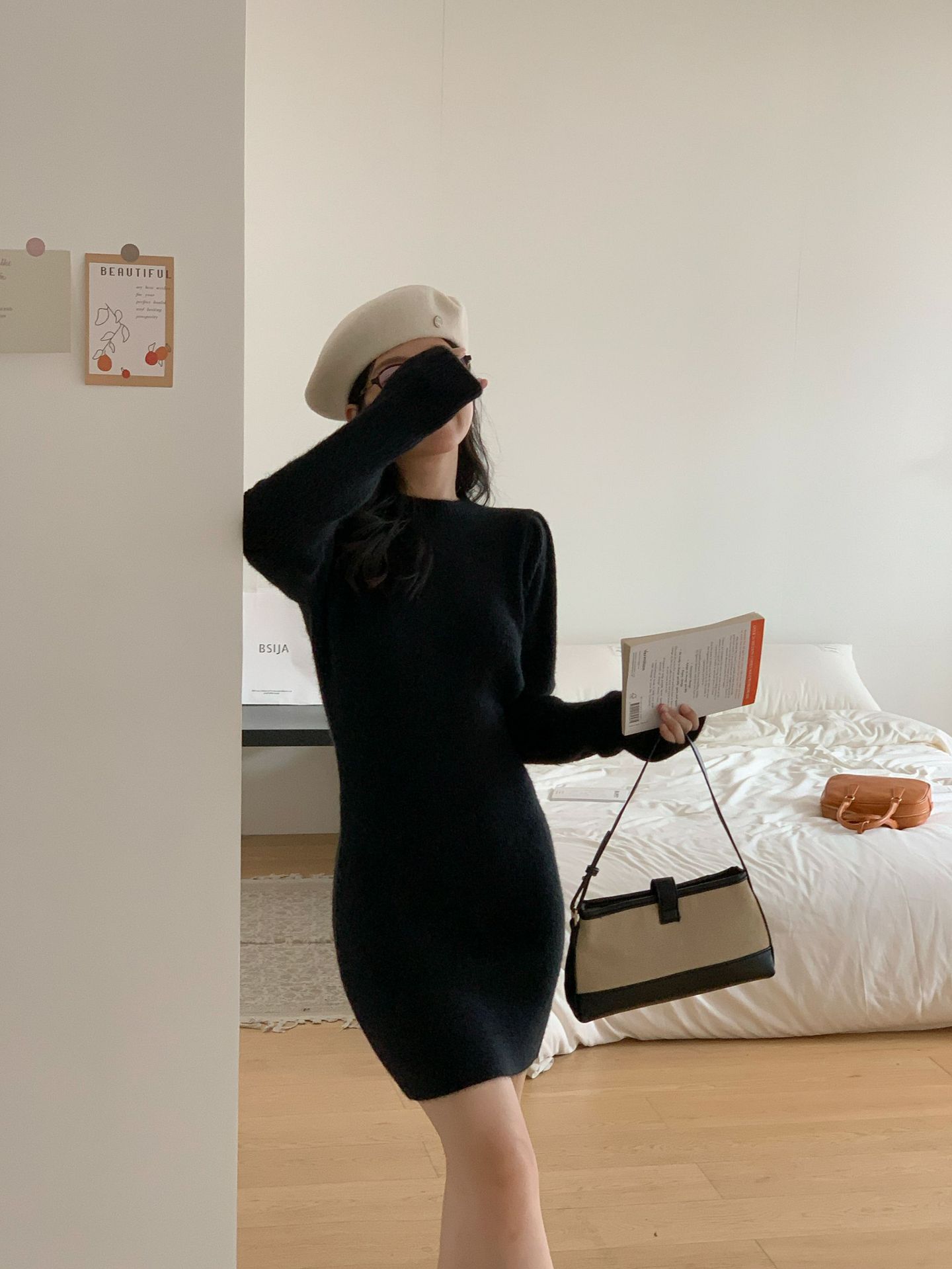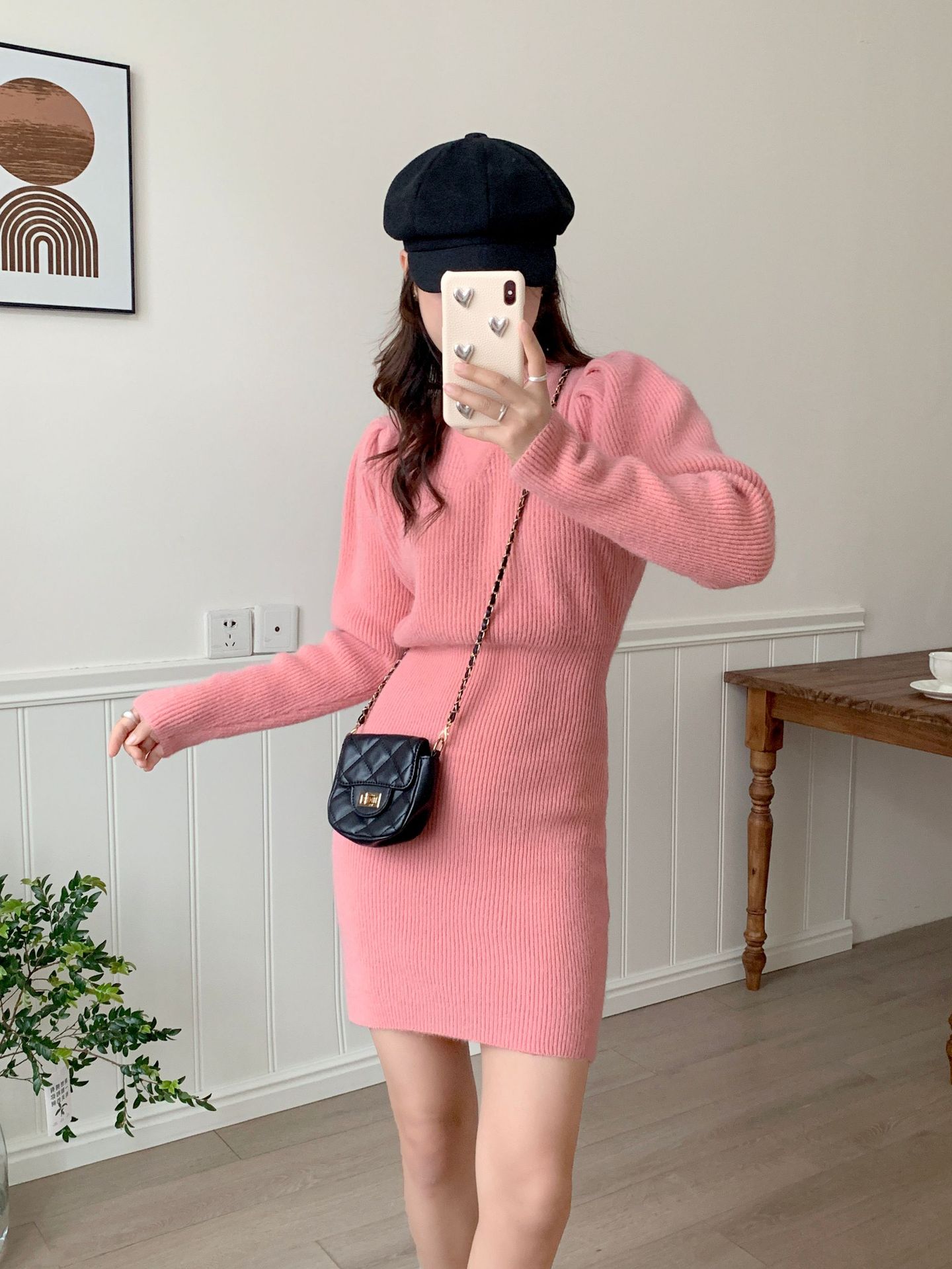 秋冬季新款韩版高雅气质收腰显瘦针织裙时尚百搭针织毛衣连衣裙女