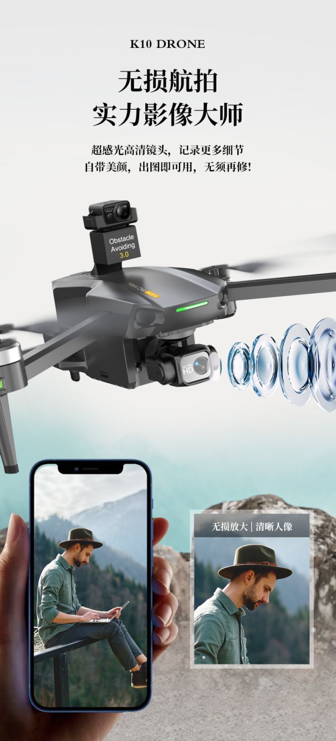 科尔航K10无人机高清航拍8K专业防抖GPS返航20公里成人遥控飞机。
