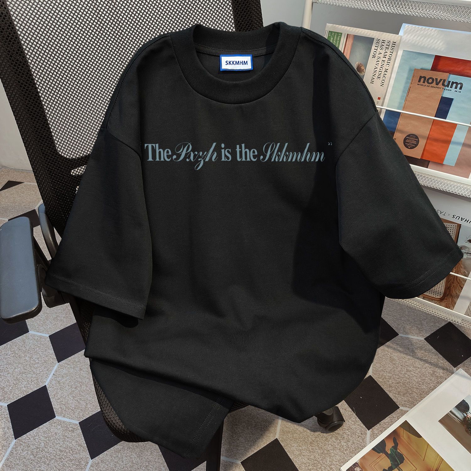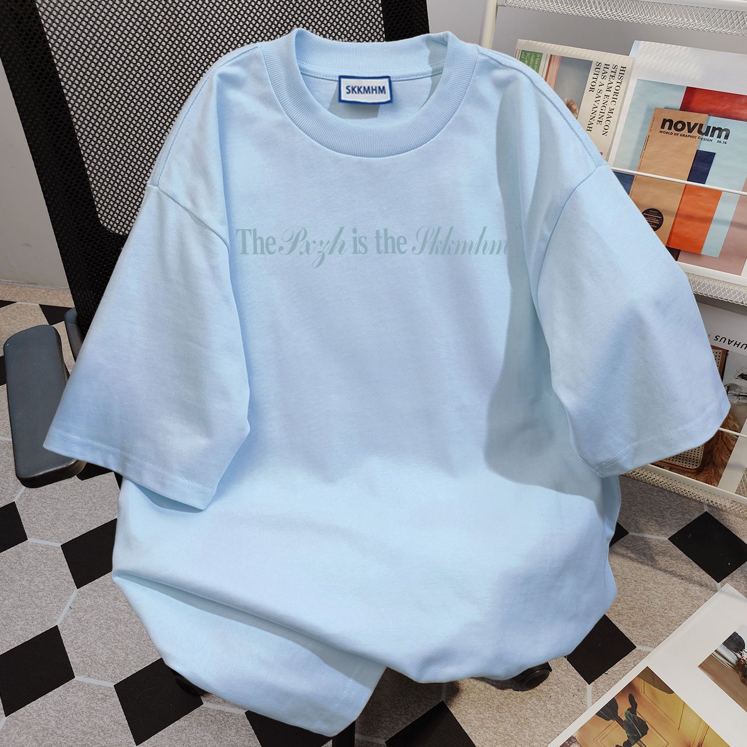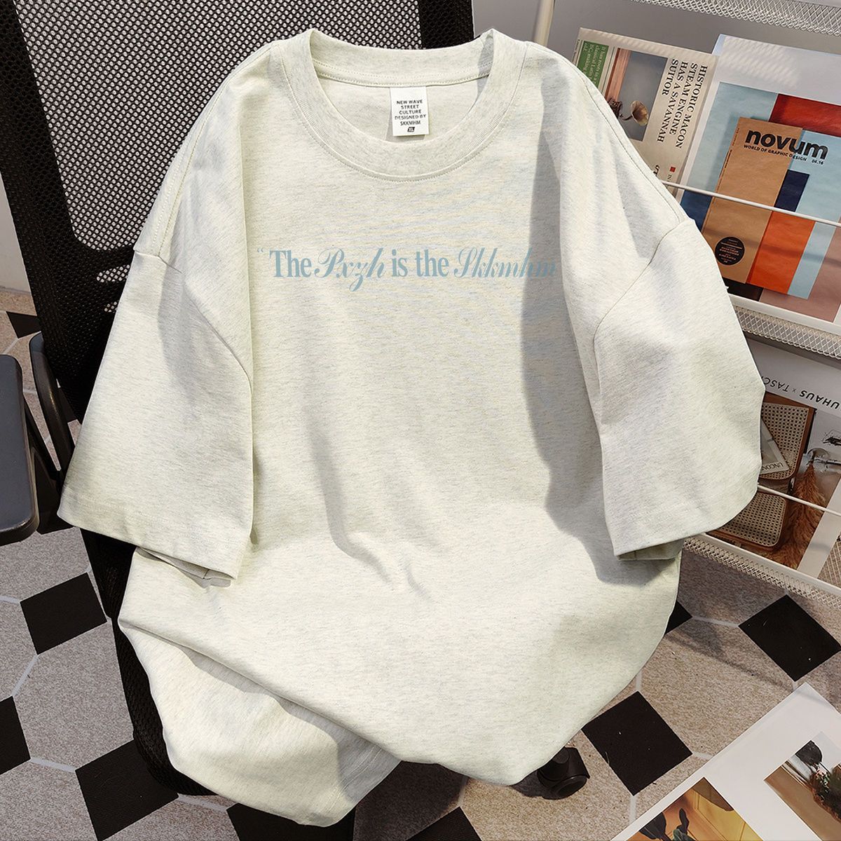 100%纯棉美式复古小众设计感涂鸦字母印短袖t恤女夏季宽松上衣服
