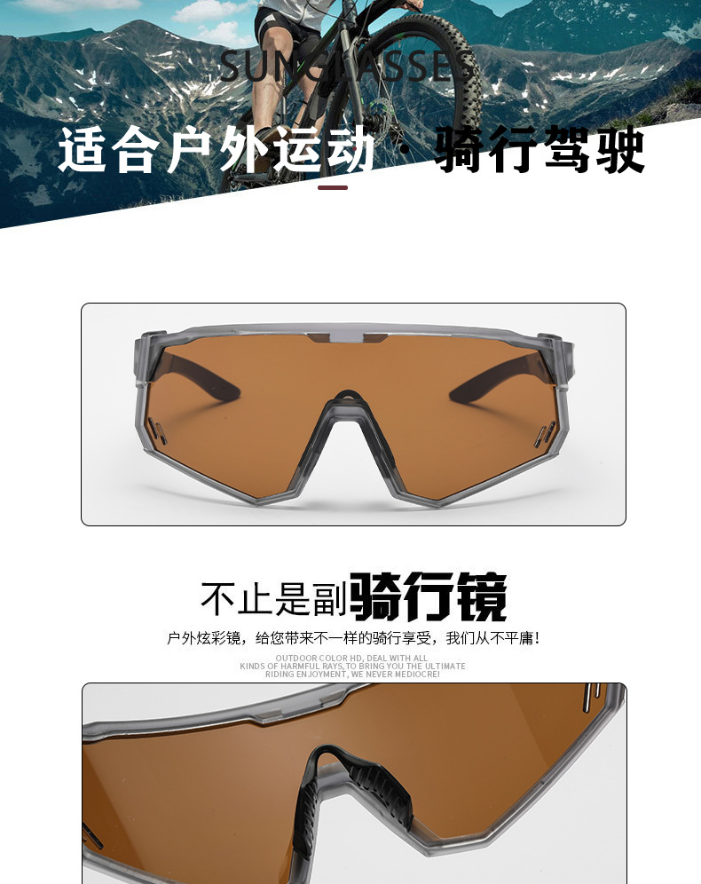 男女新款户外骑行太阳镜自行车防风墨镜水银镜片遮阳运动太阳眼镜
