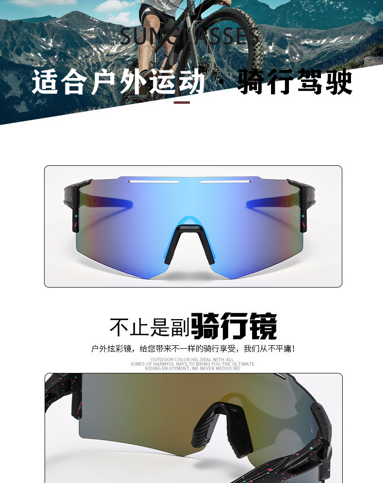 新款跨境欧美炫彩骑行眼镜男连体户外运动墨镜跨境女山地车风镜