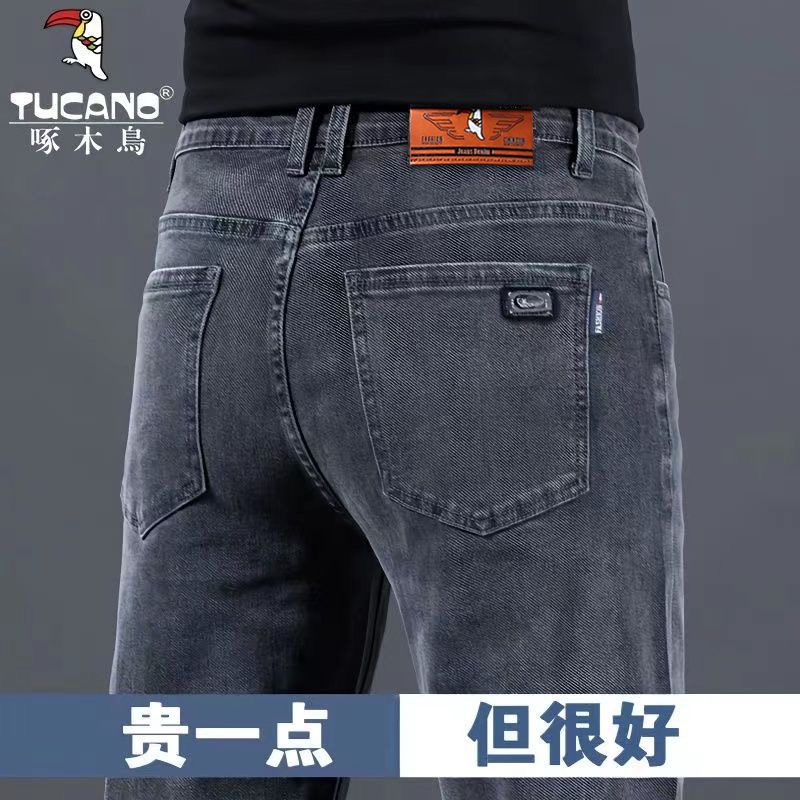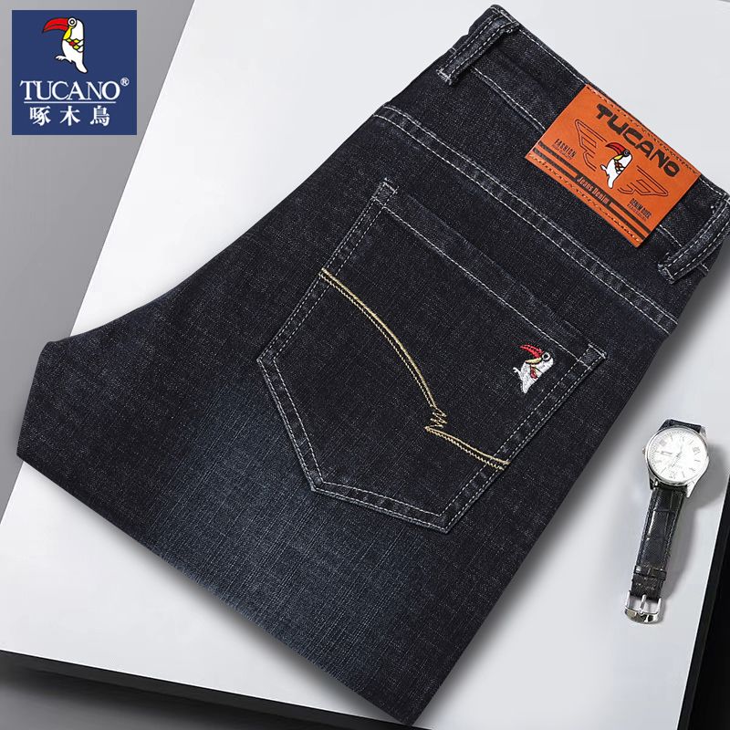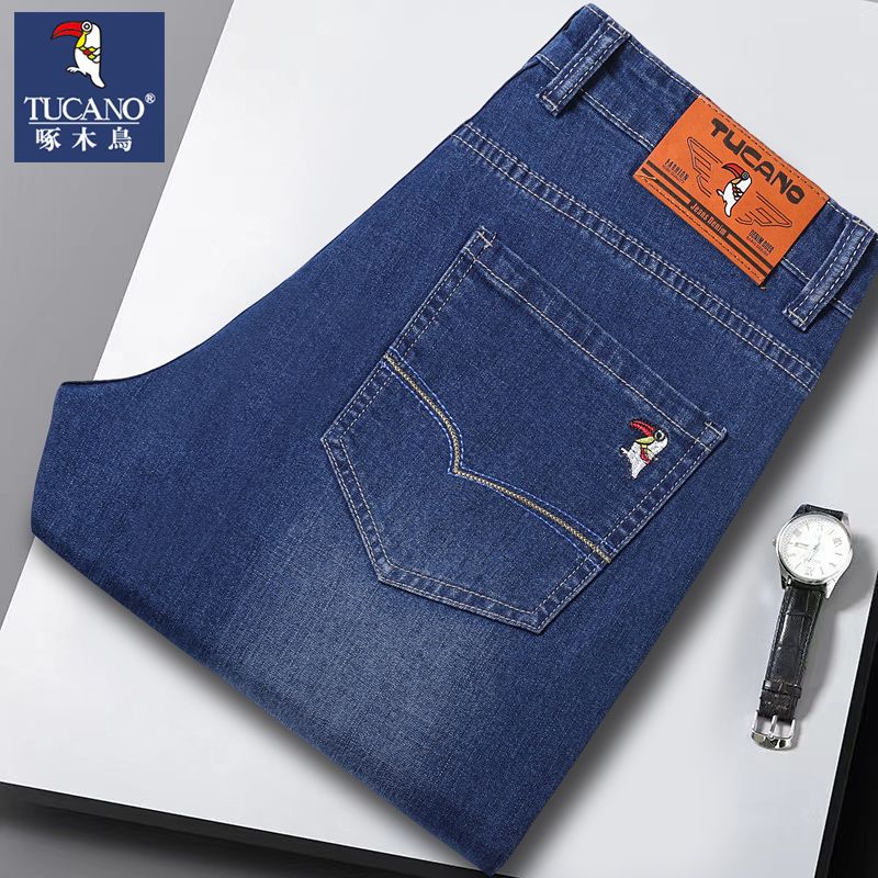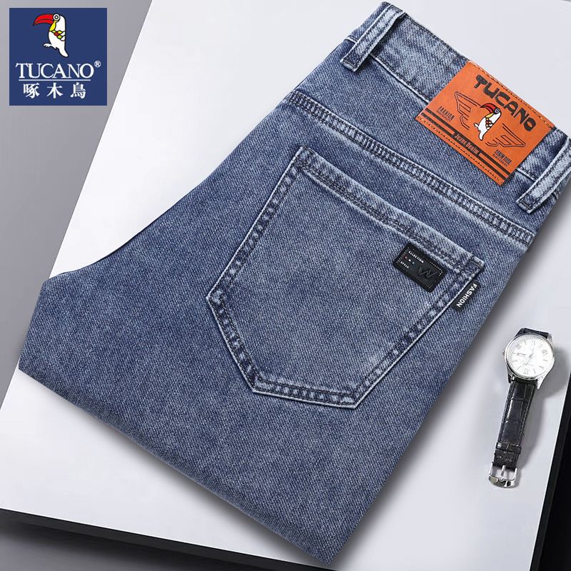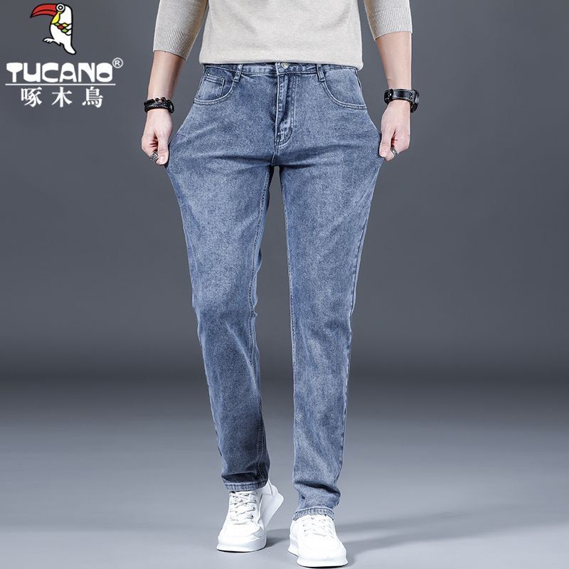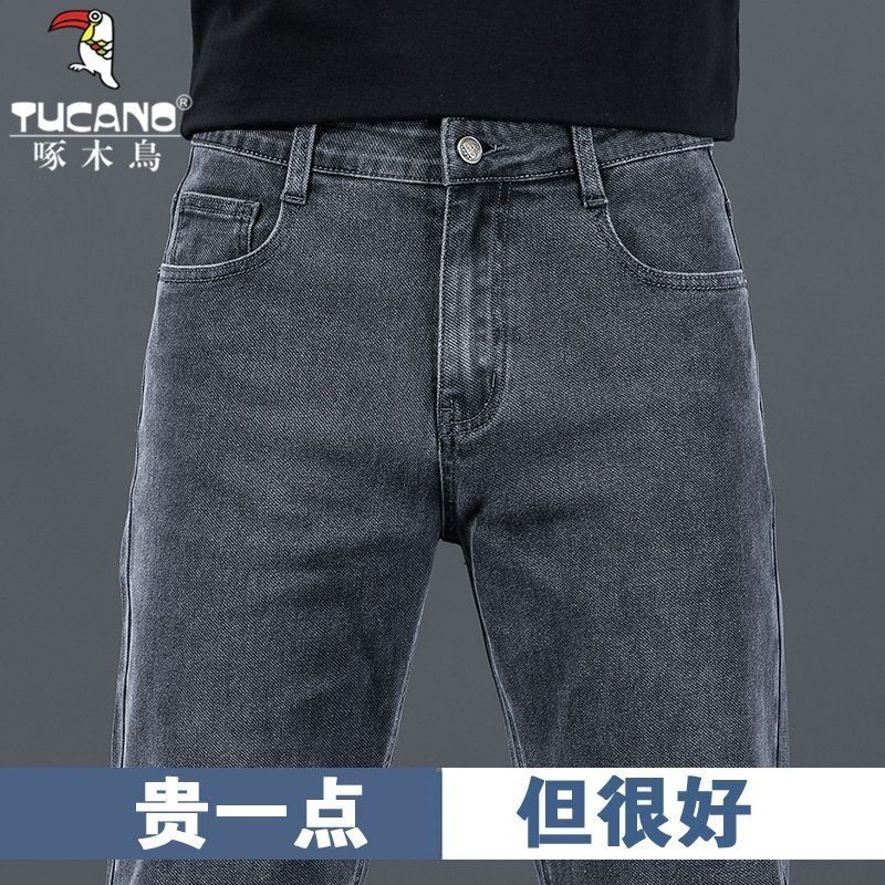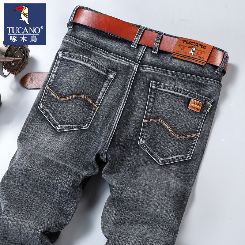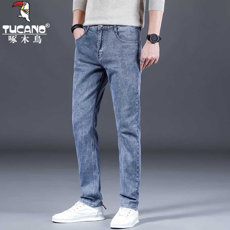 啄木鸟潮流牛仔裤男修身直筒夏季薄款透气青年款男装弹性休闲长裤