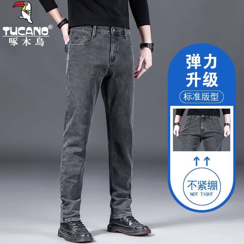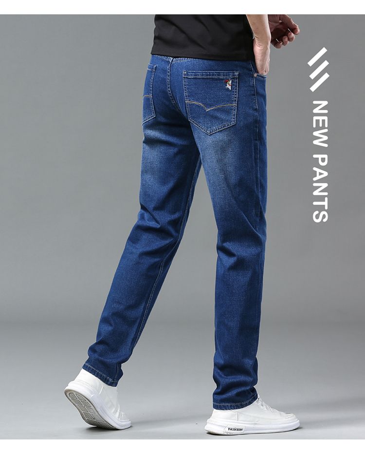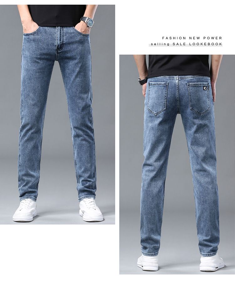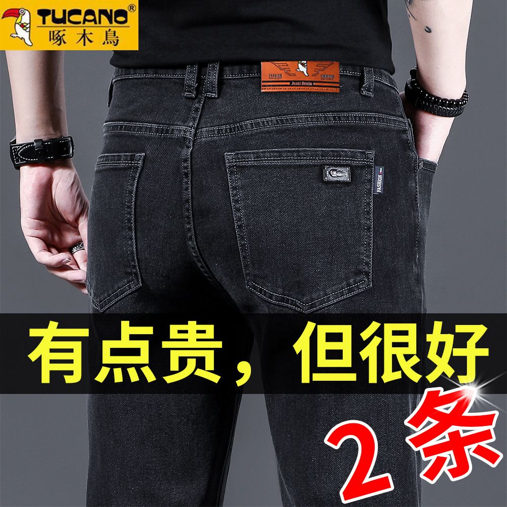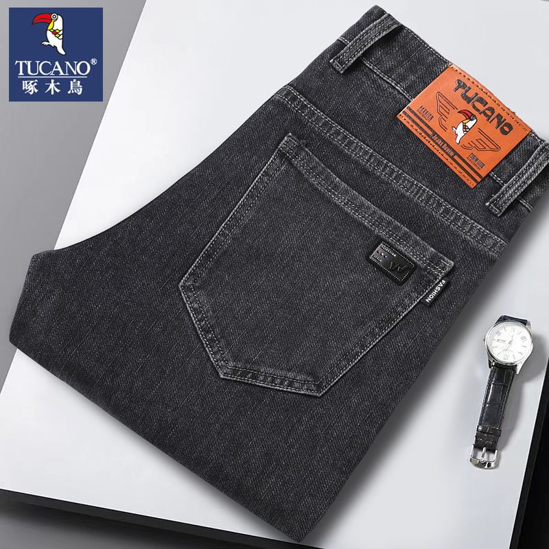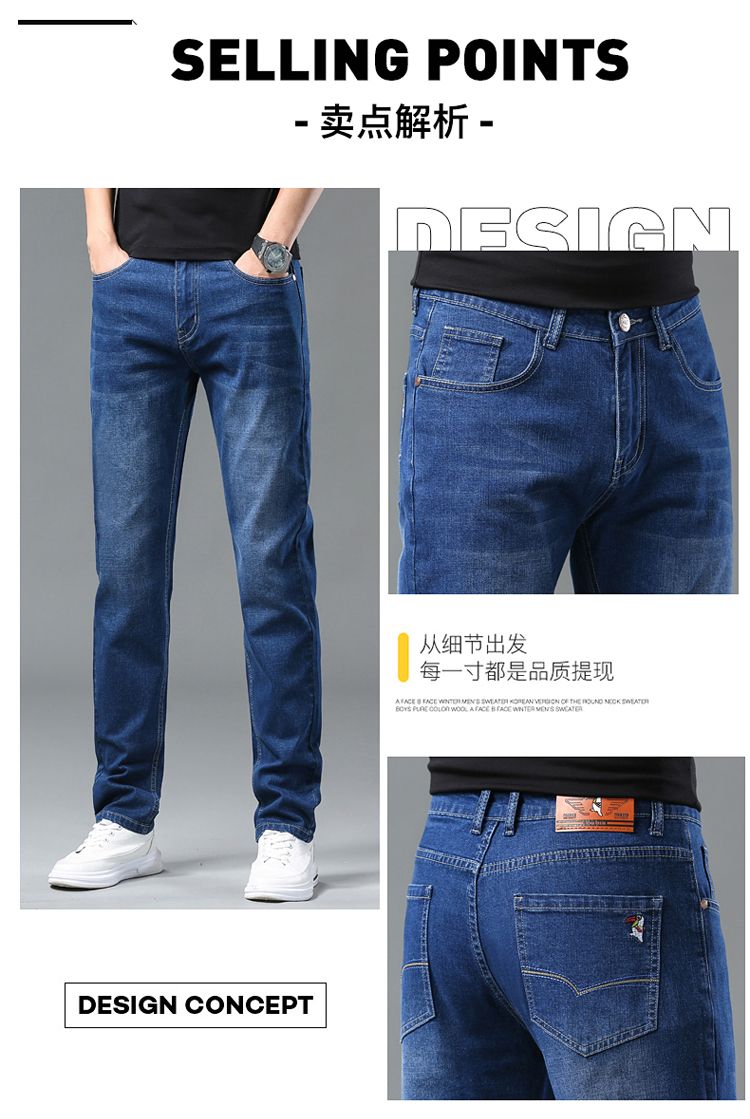 啄木鸟潮流牛仔裤男修身直筒夏季薄款透气青年款男装弹性休闲长裤