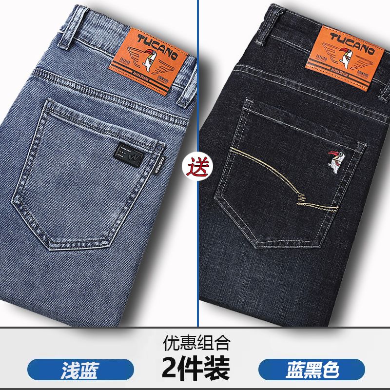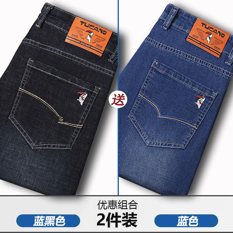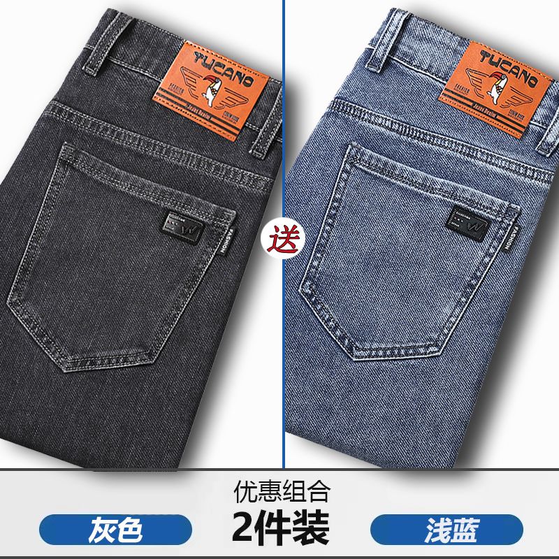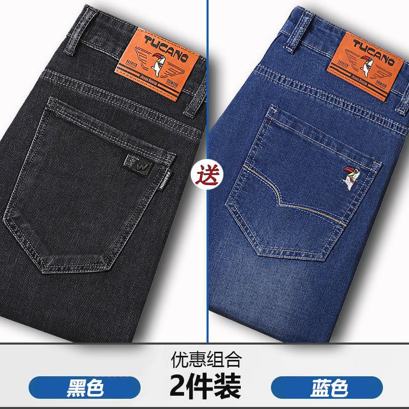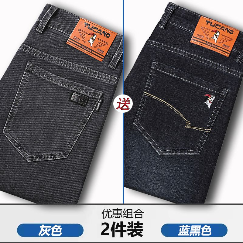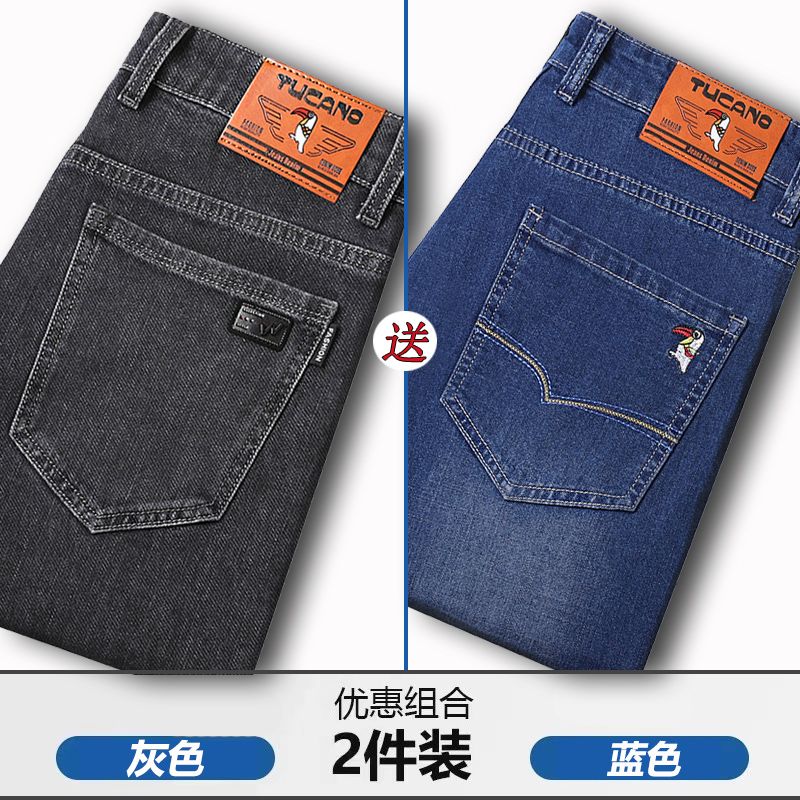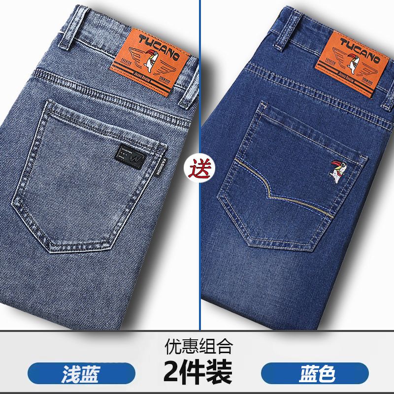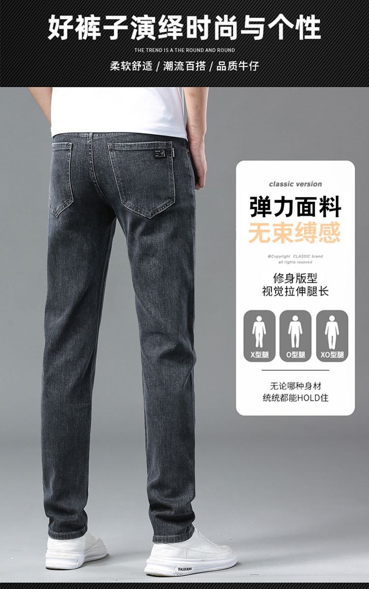 啄木鸟潮流牛仔裤男修身直筒夏季薄款透气青年款男装弹性休闲长裤