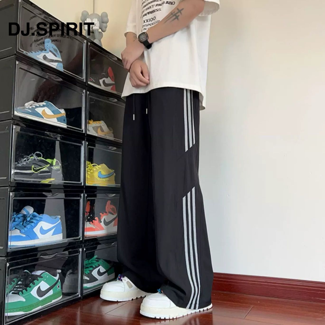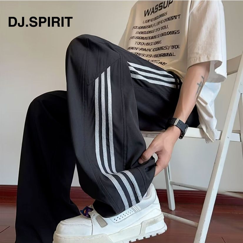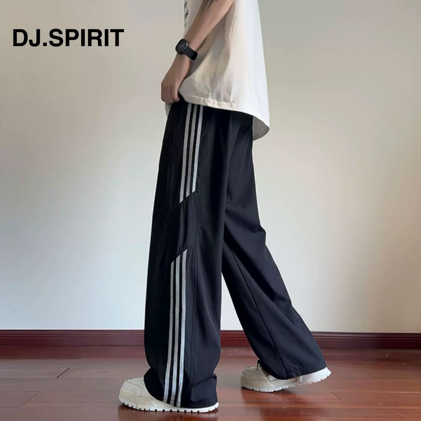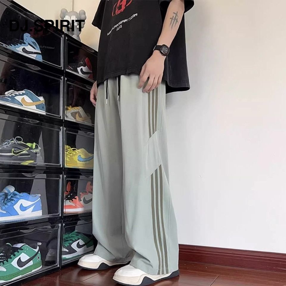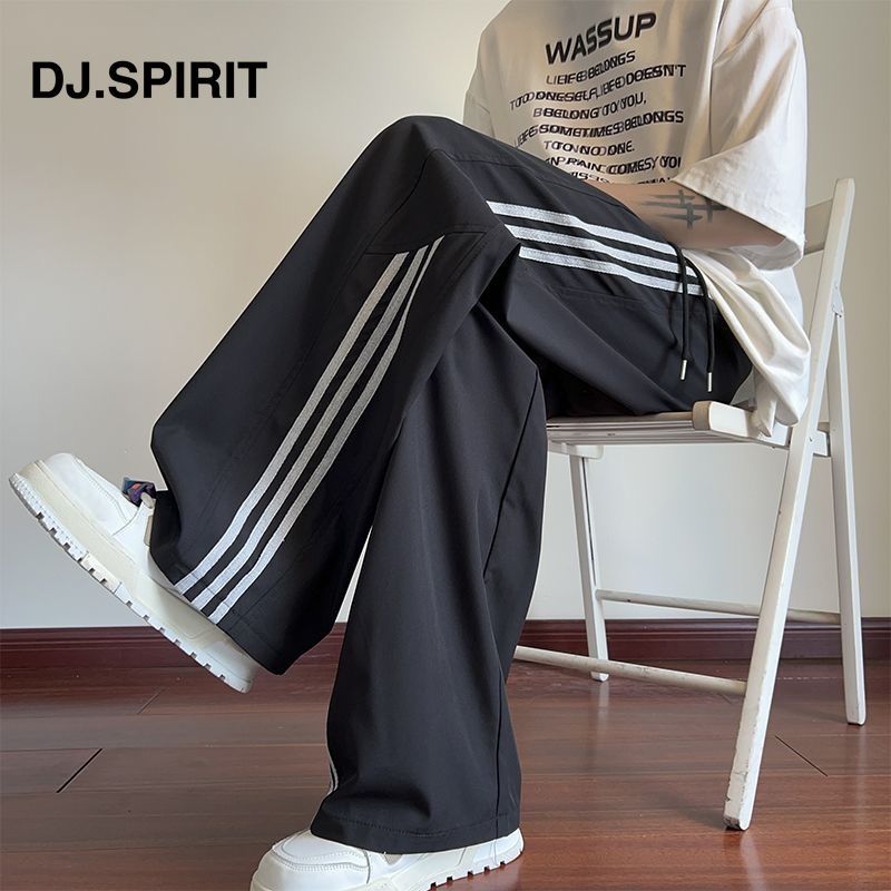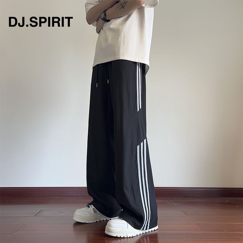 DJSPIRIT条纹干冰裤子男士夏季宽松阔腿男生运动裤子青年休闲长裤