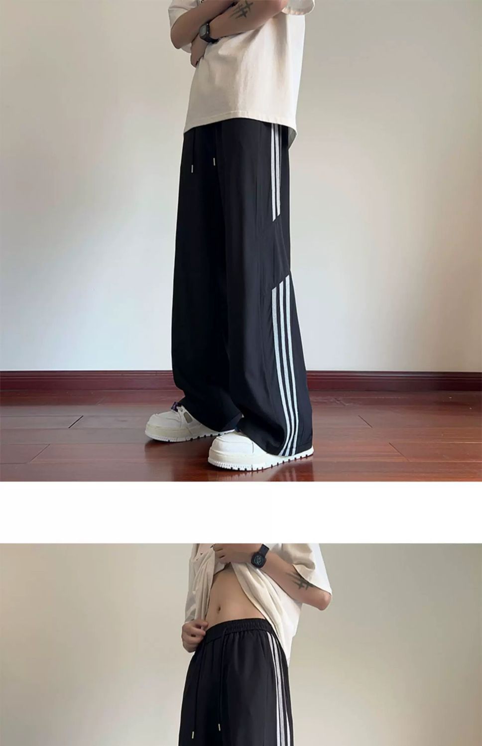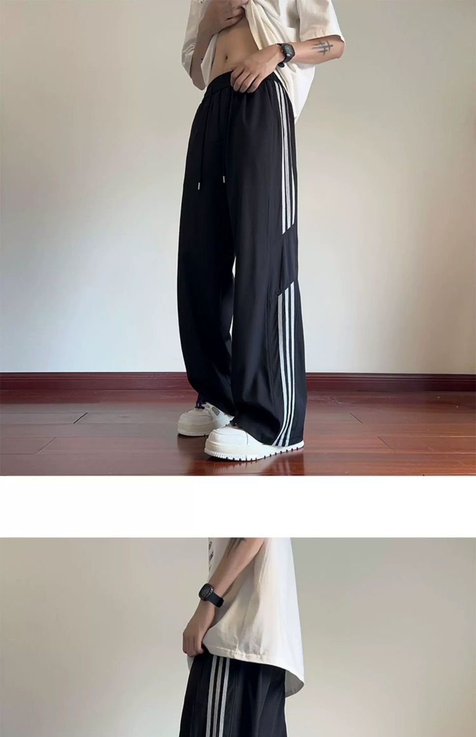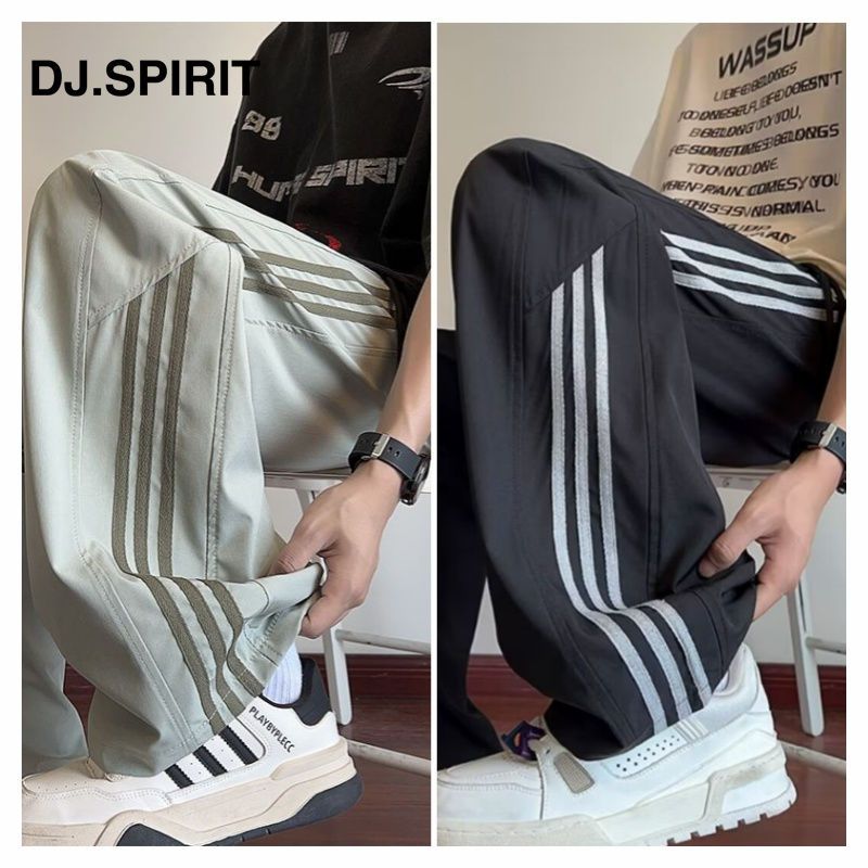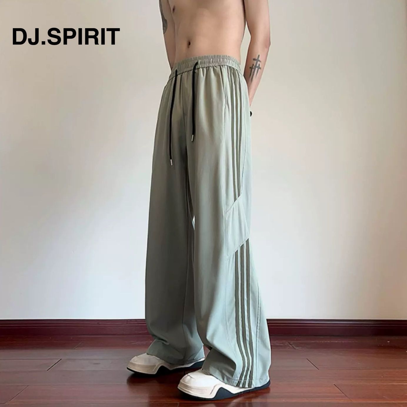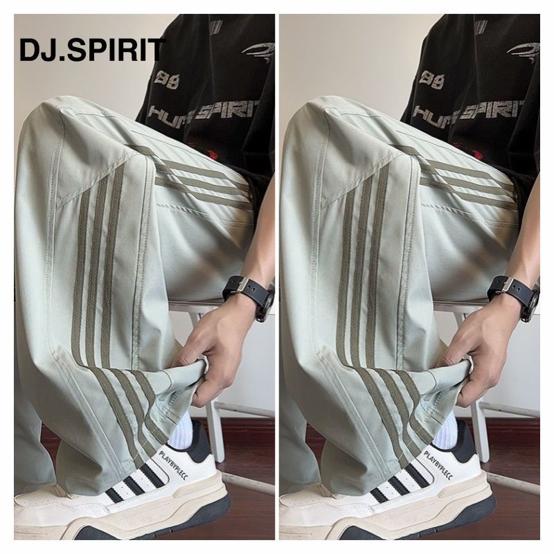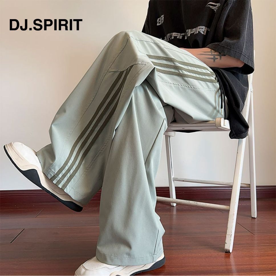 DJSPIRIT条纹干冰裤子男士夏季宽松阔腿男生运动裤子青年休闲长裤