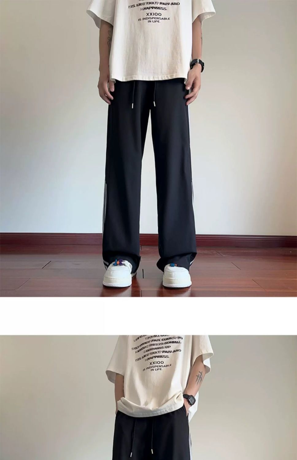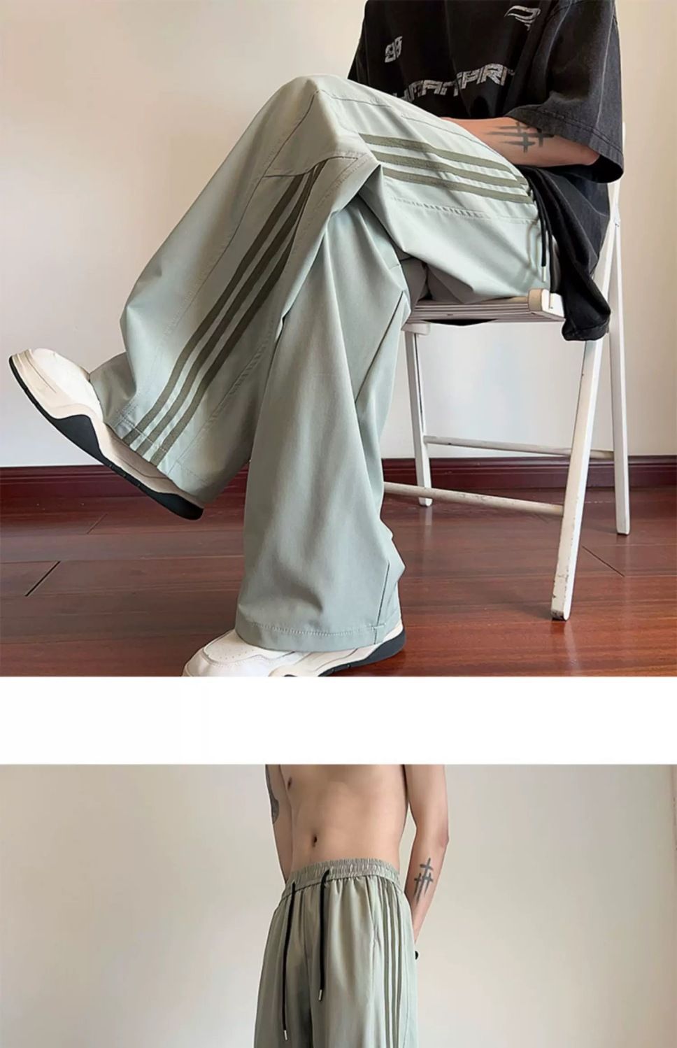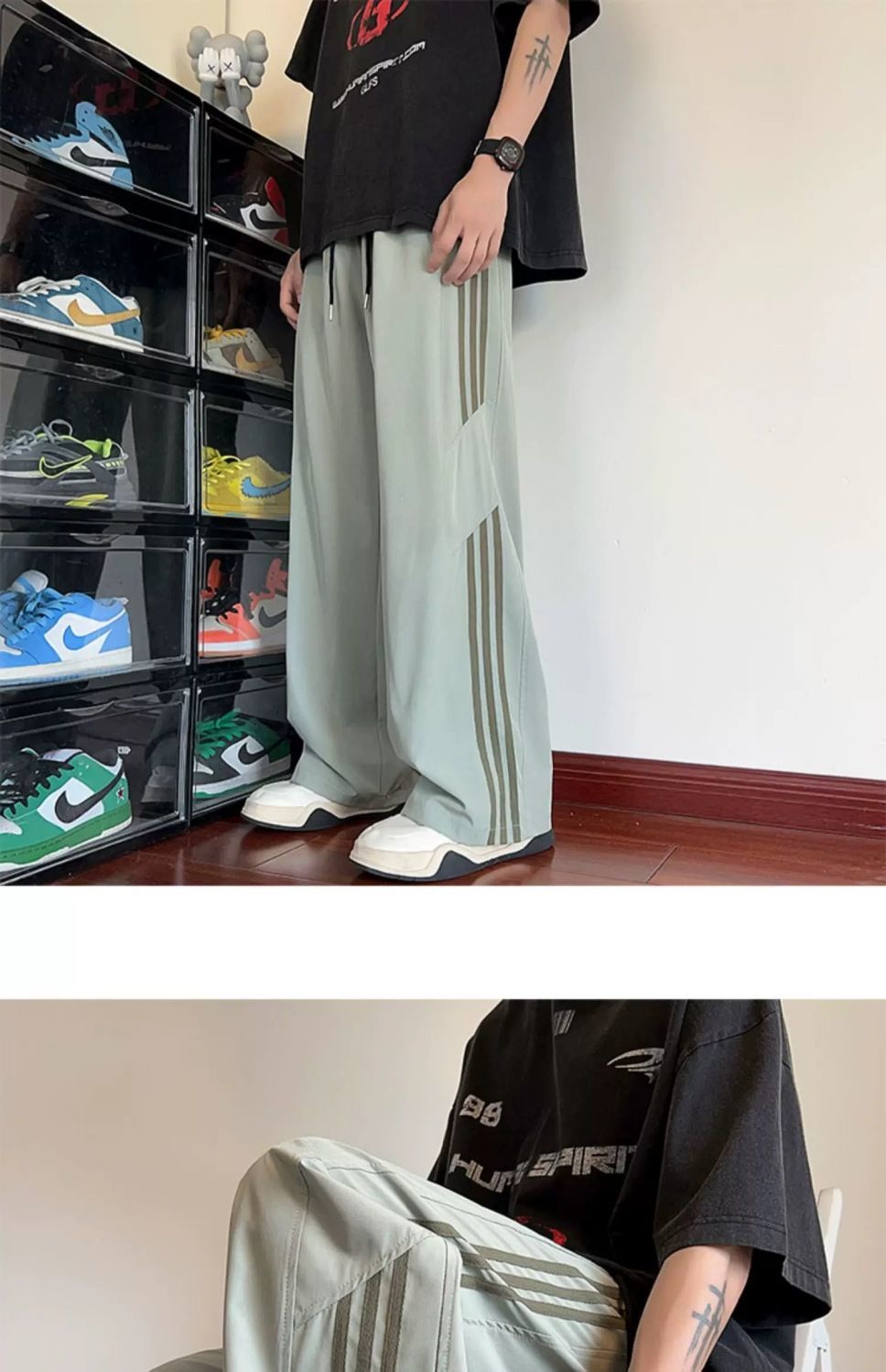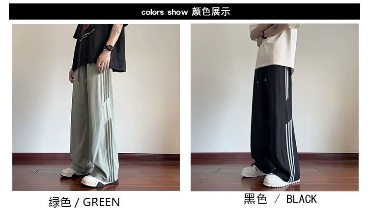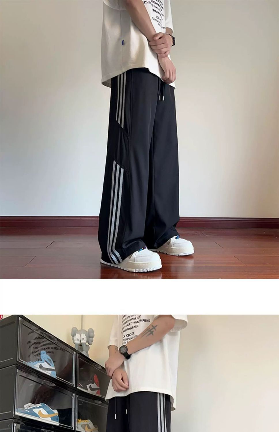 DJSPIRIT条纹干冰裤子男士夏季宽松阔腿男生运动裤子青年休闲长裤