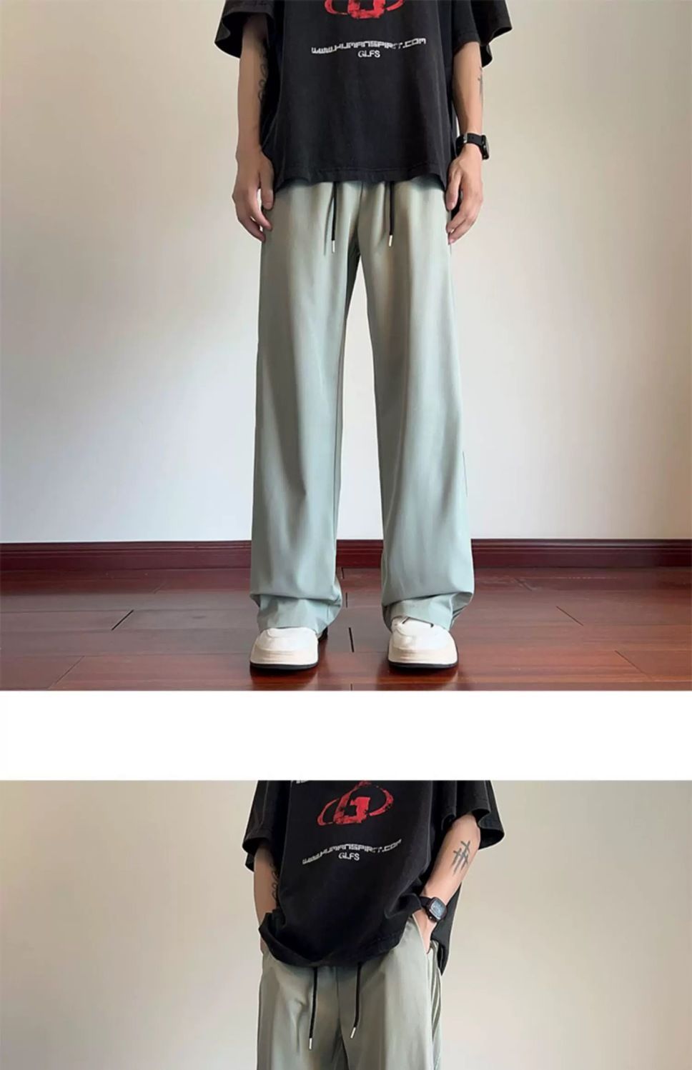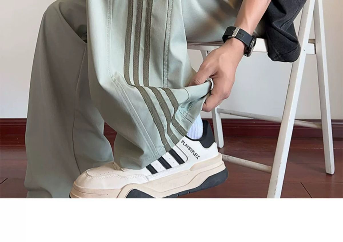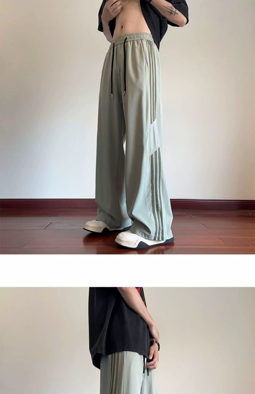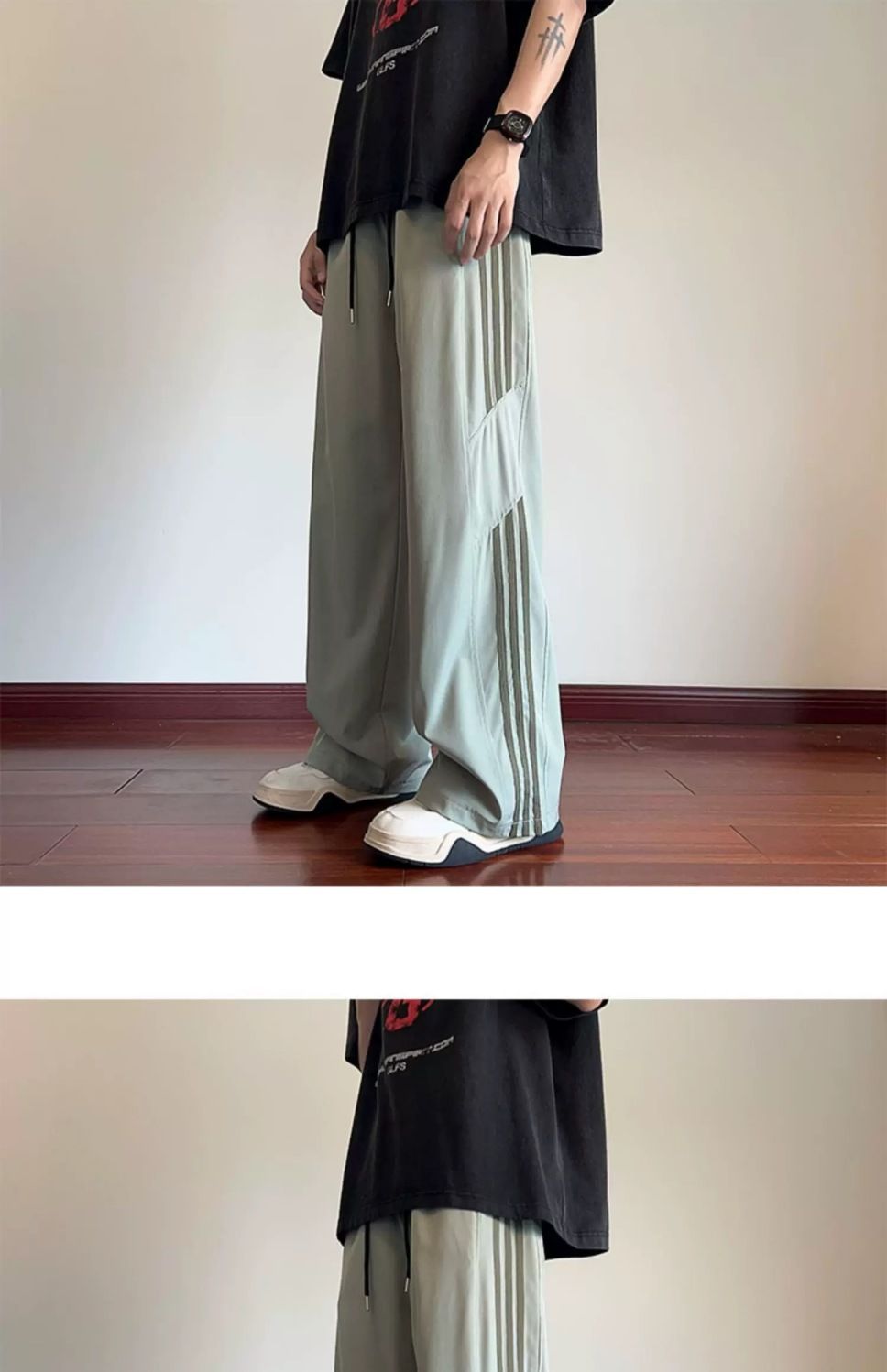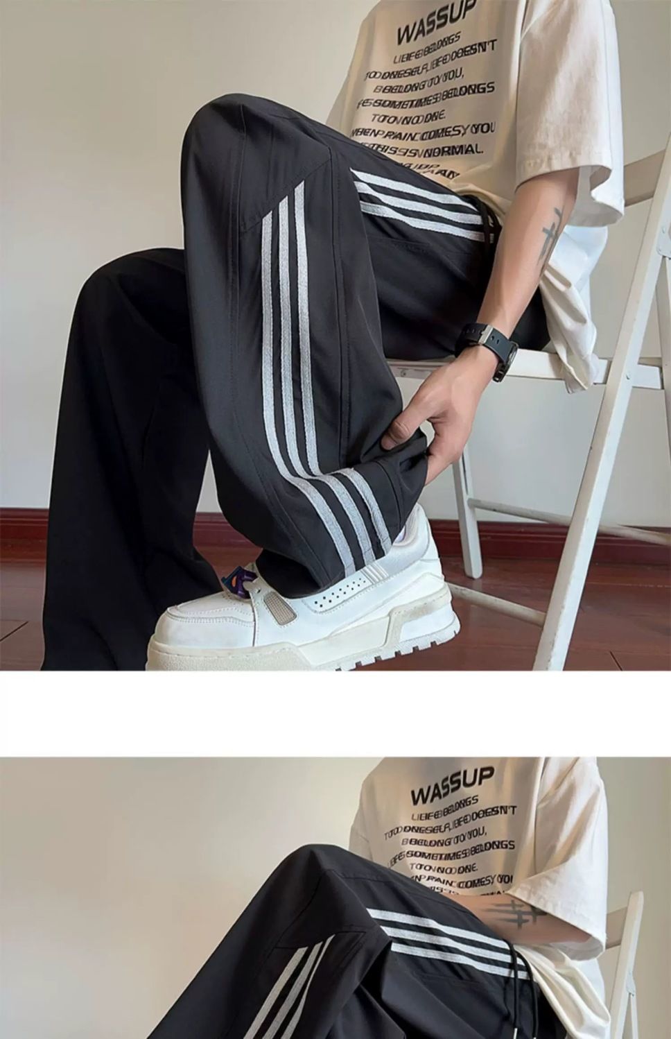 DJSPIRIT条纹干冰裤子男士夏季宽松阔腿男生运动裤子青年休闲长裤