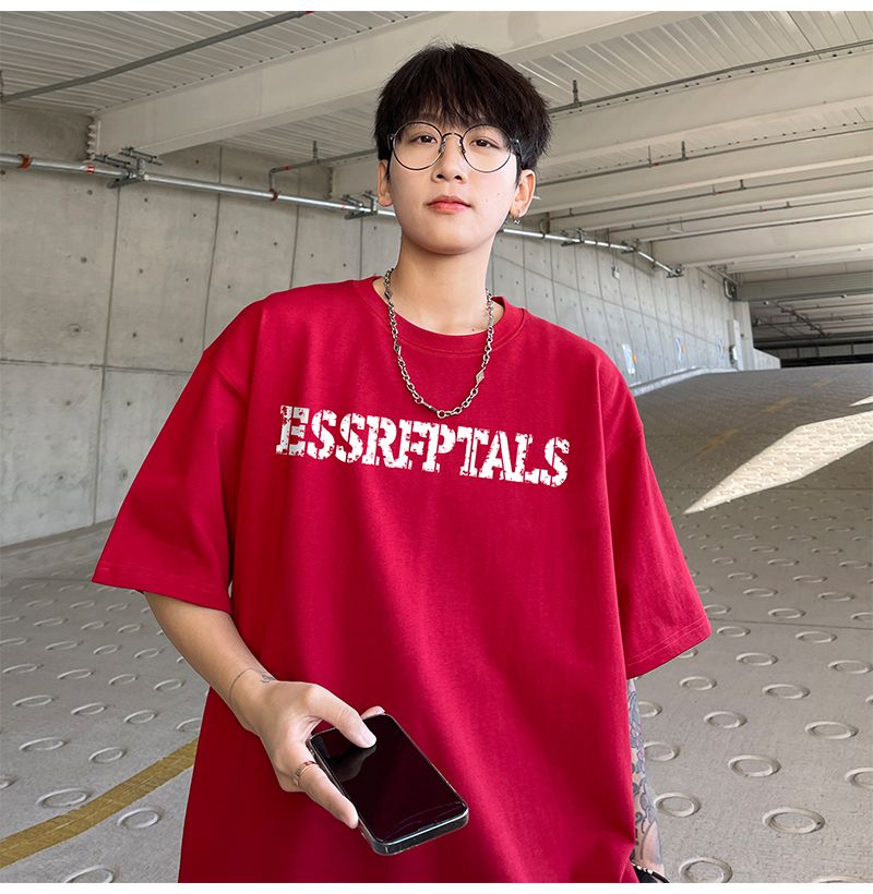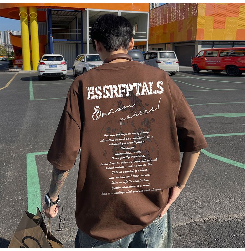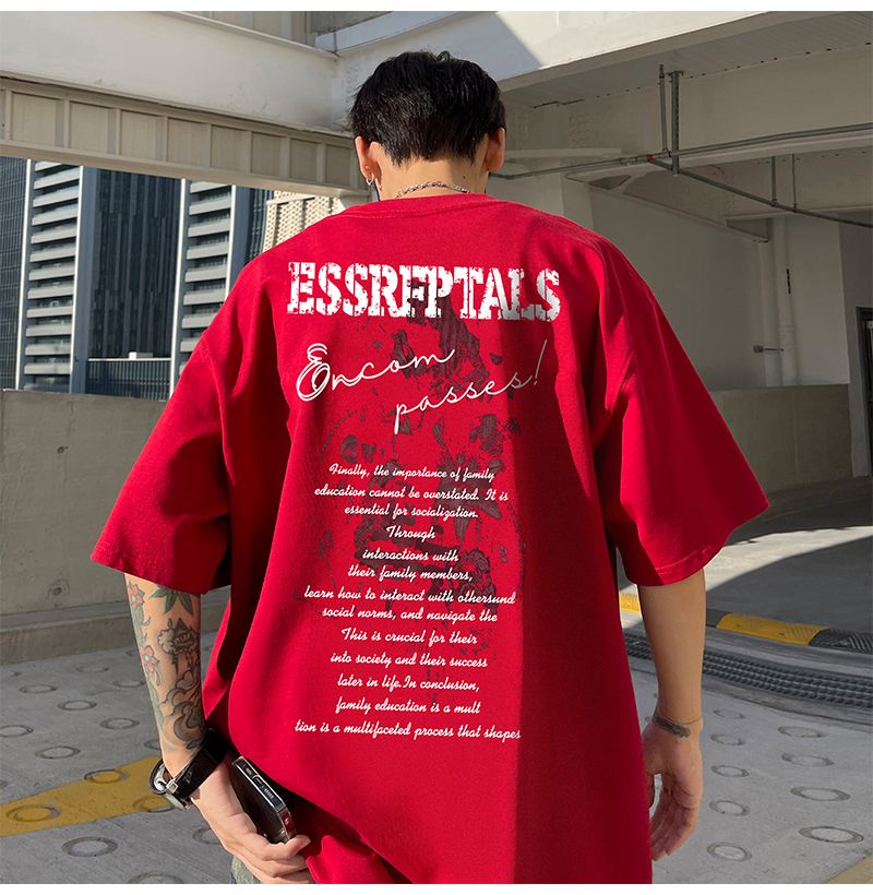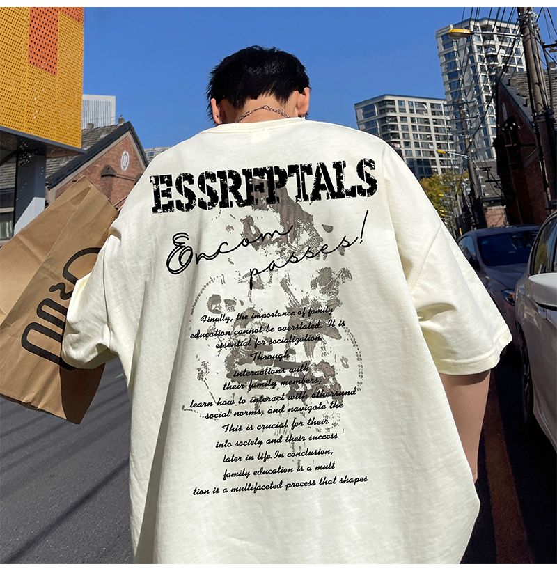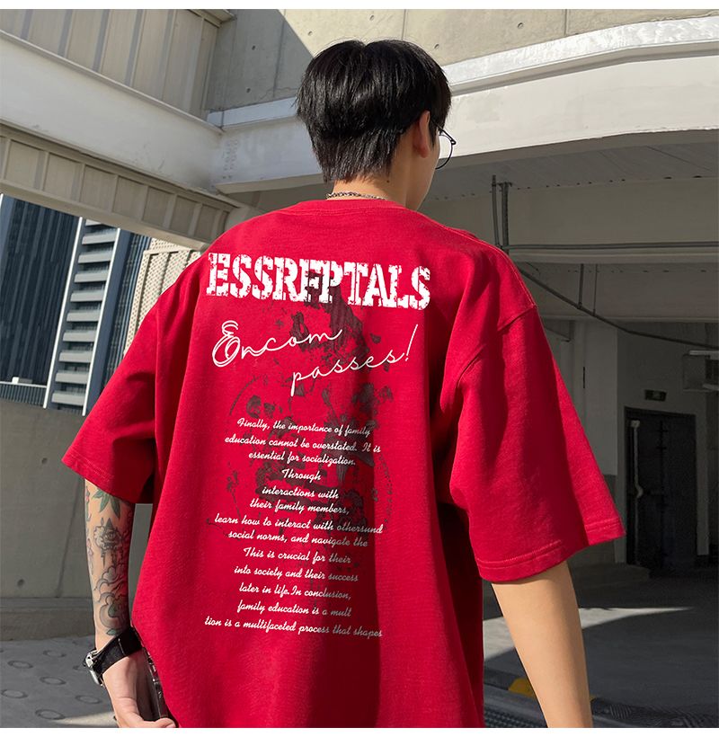 短袖t恤男潮牌夏季2024新款美式字母印花纯棉痞帅高街休闲五分袖