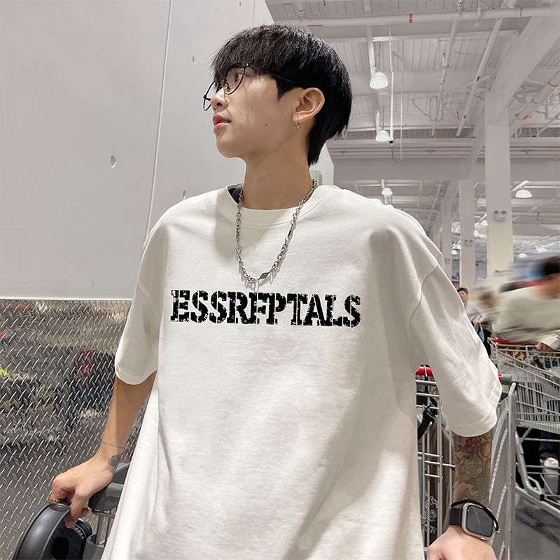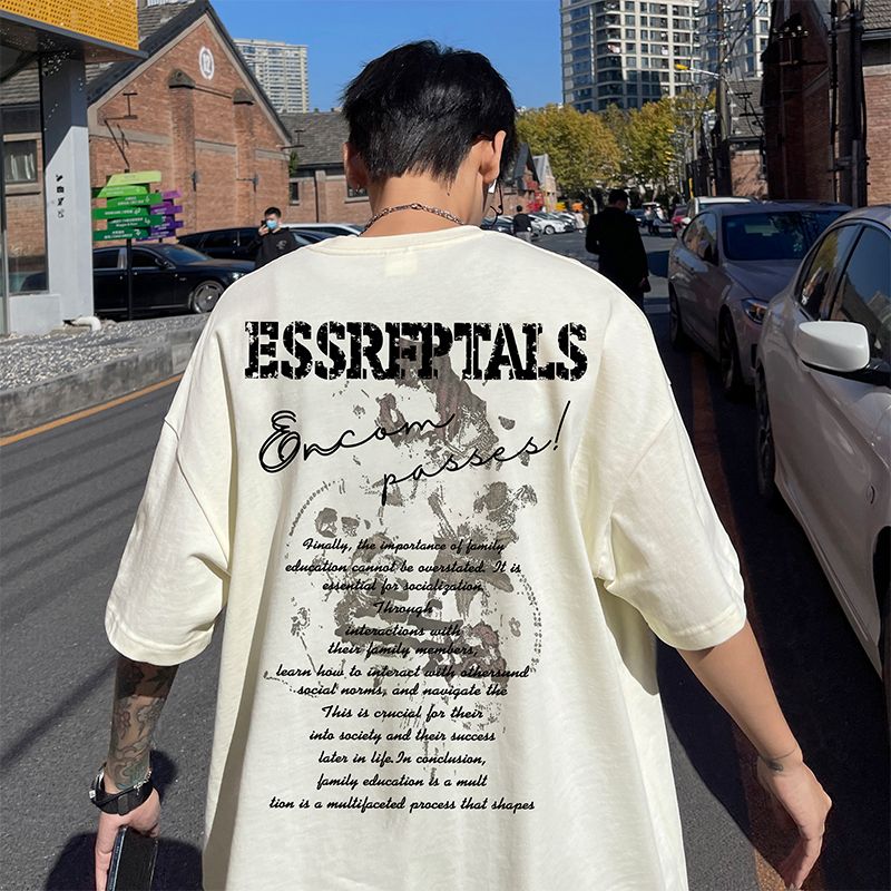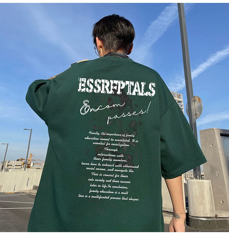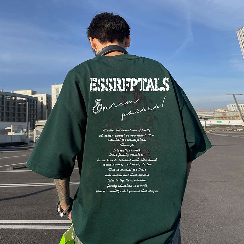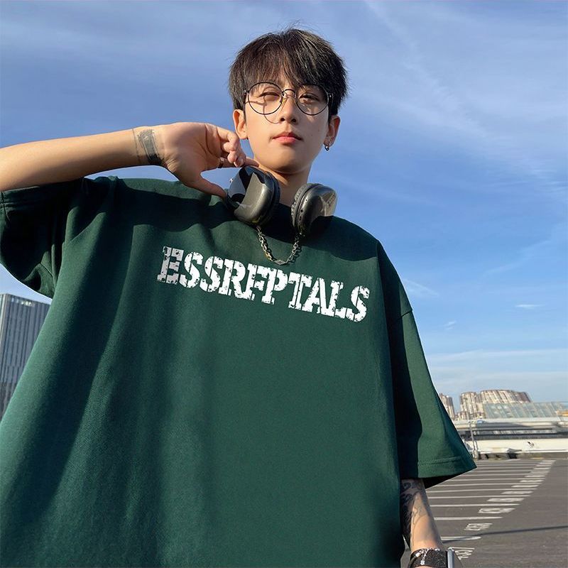 短袖t恤男潮牌夏季2024新款美式字母印花纯棉痞帅高街休闲五分袖