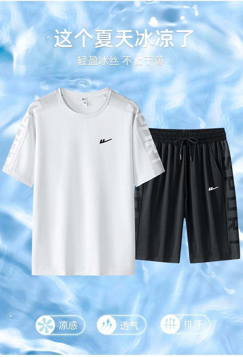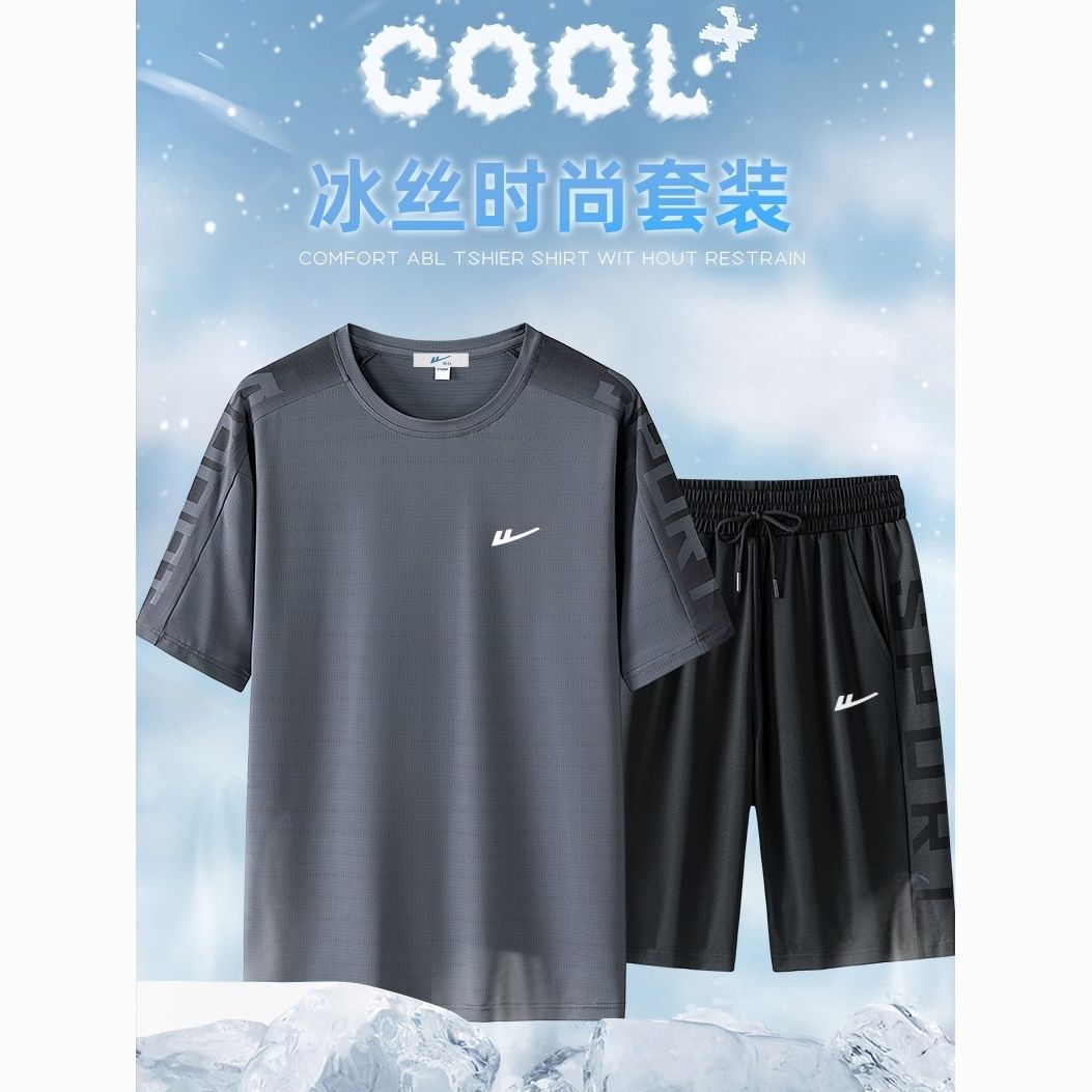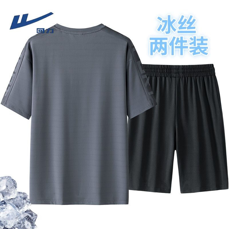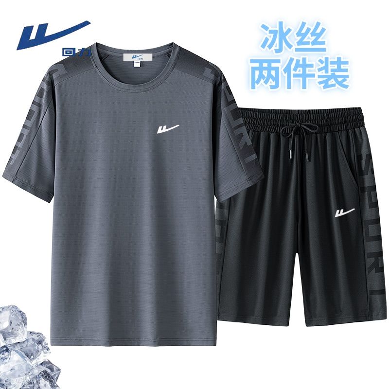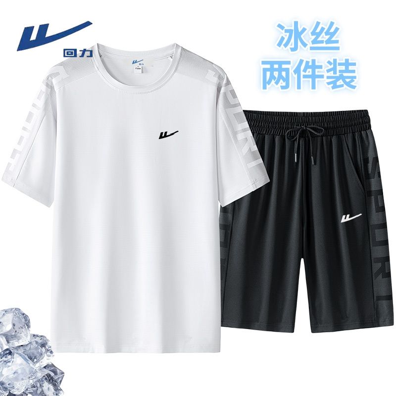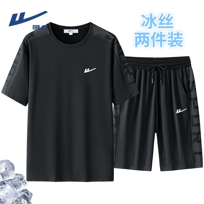 回力夏季冰丝套装男士休闲运动速干圆领短袖五分裤两件套男女同款
