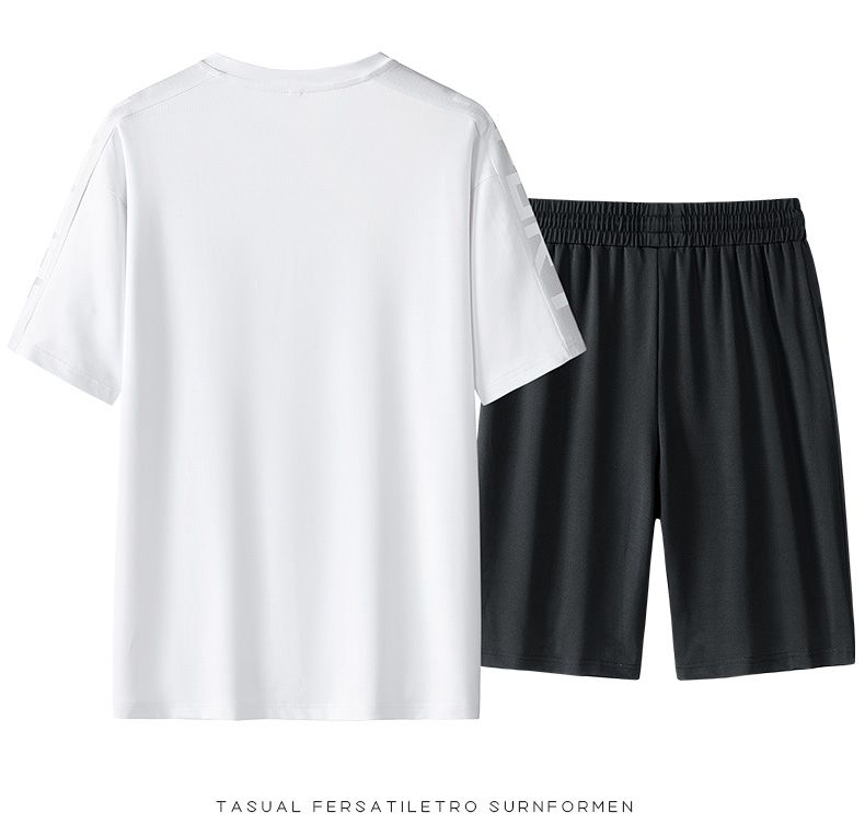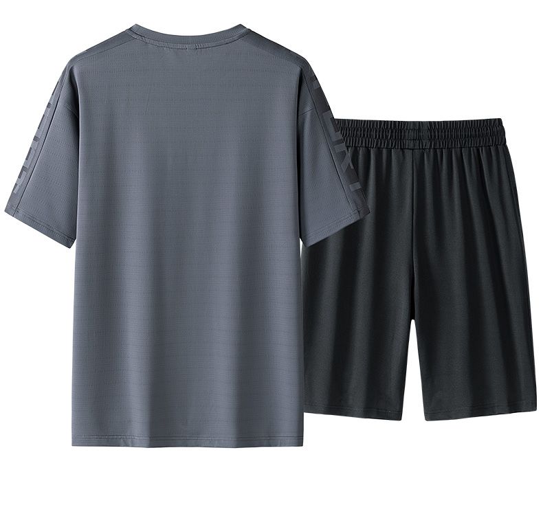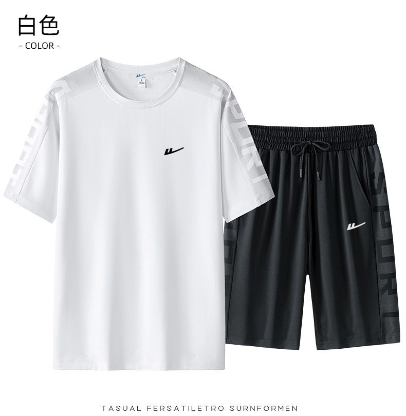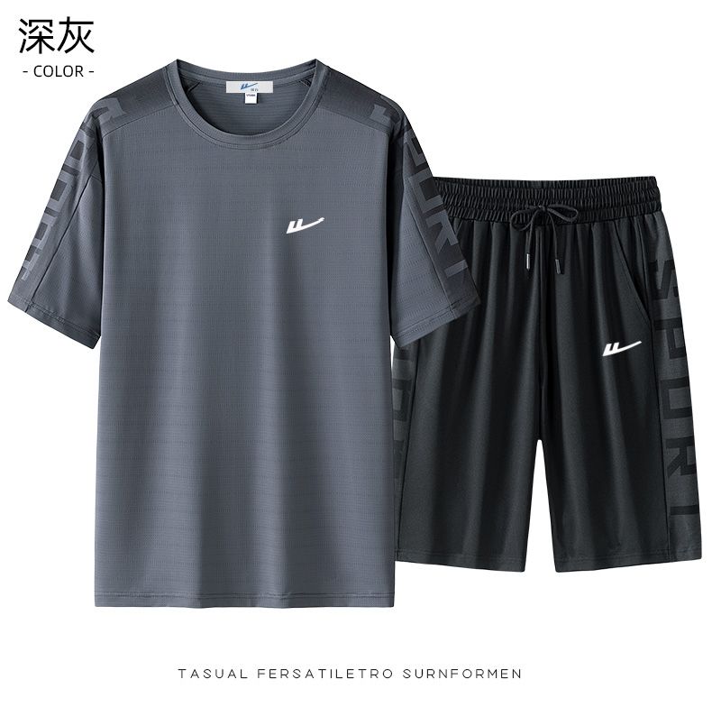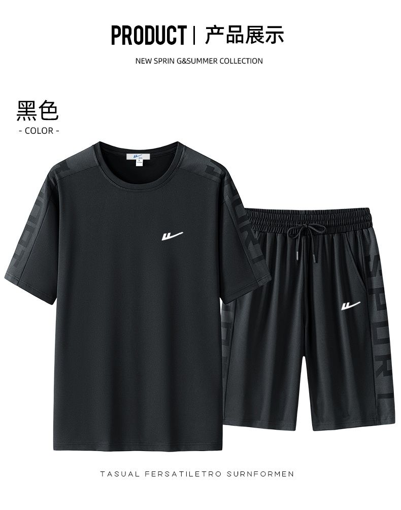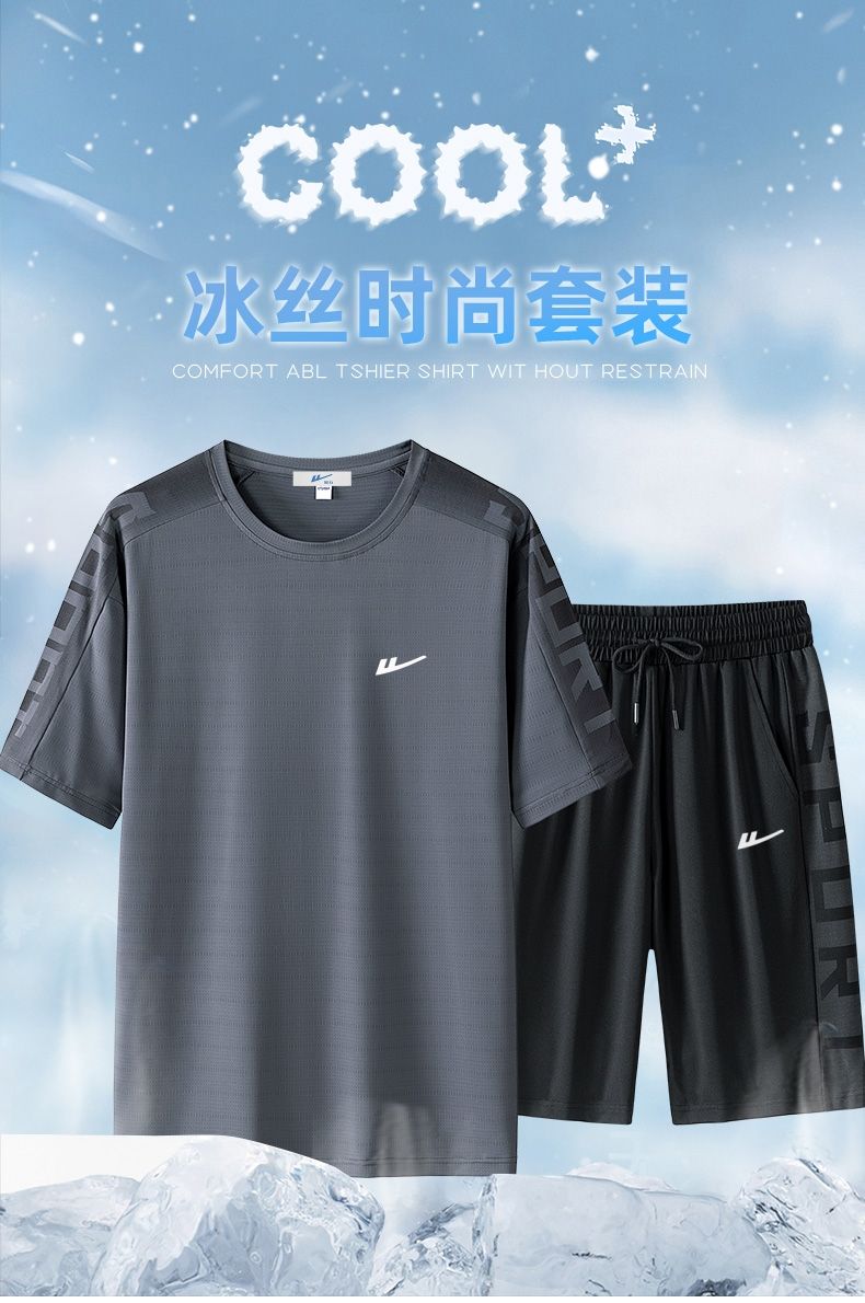 回力夏季冰丝套装男士休闲运动速干圆领短袖五分裤两件套男女同款