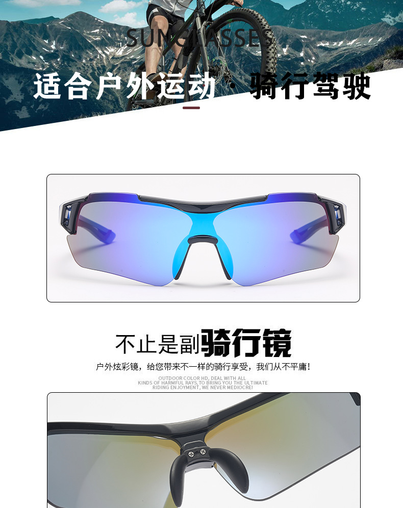 新款风镜炫彩镀膜运动骑行太阳镜户外PC材质自行车眼镜男女跨境现