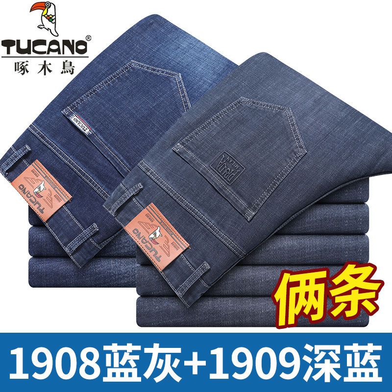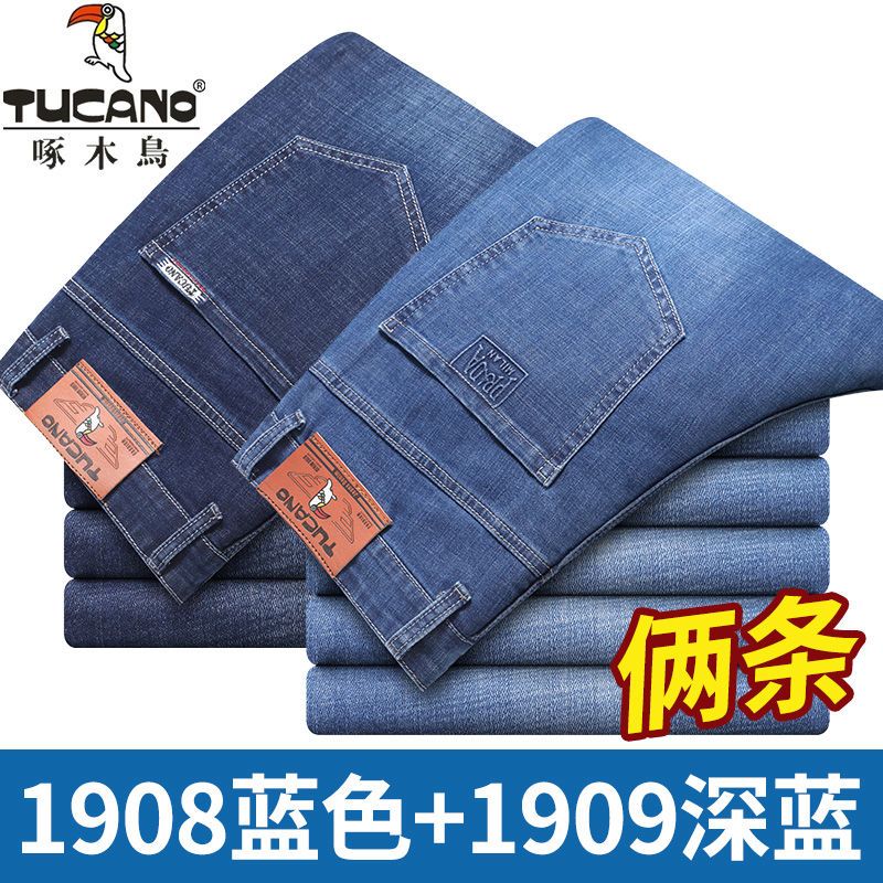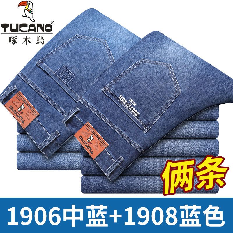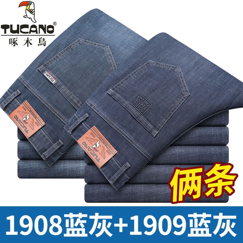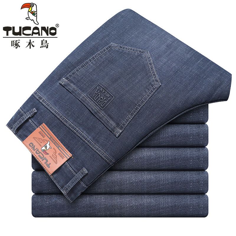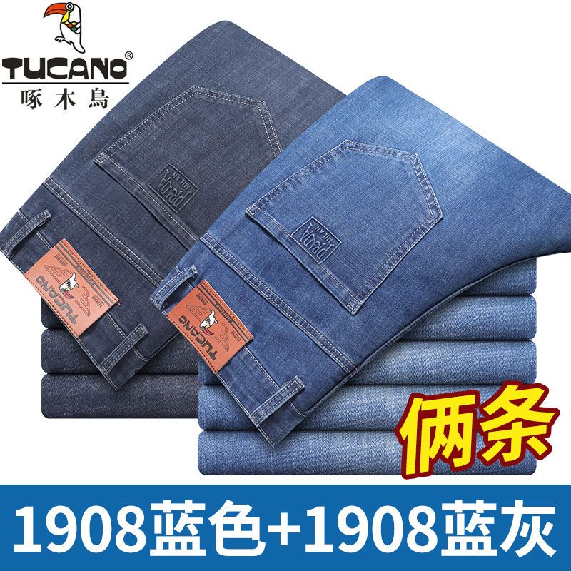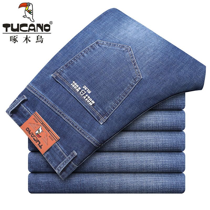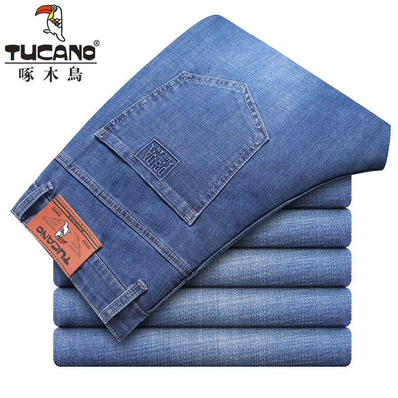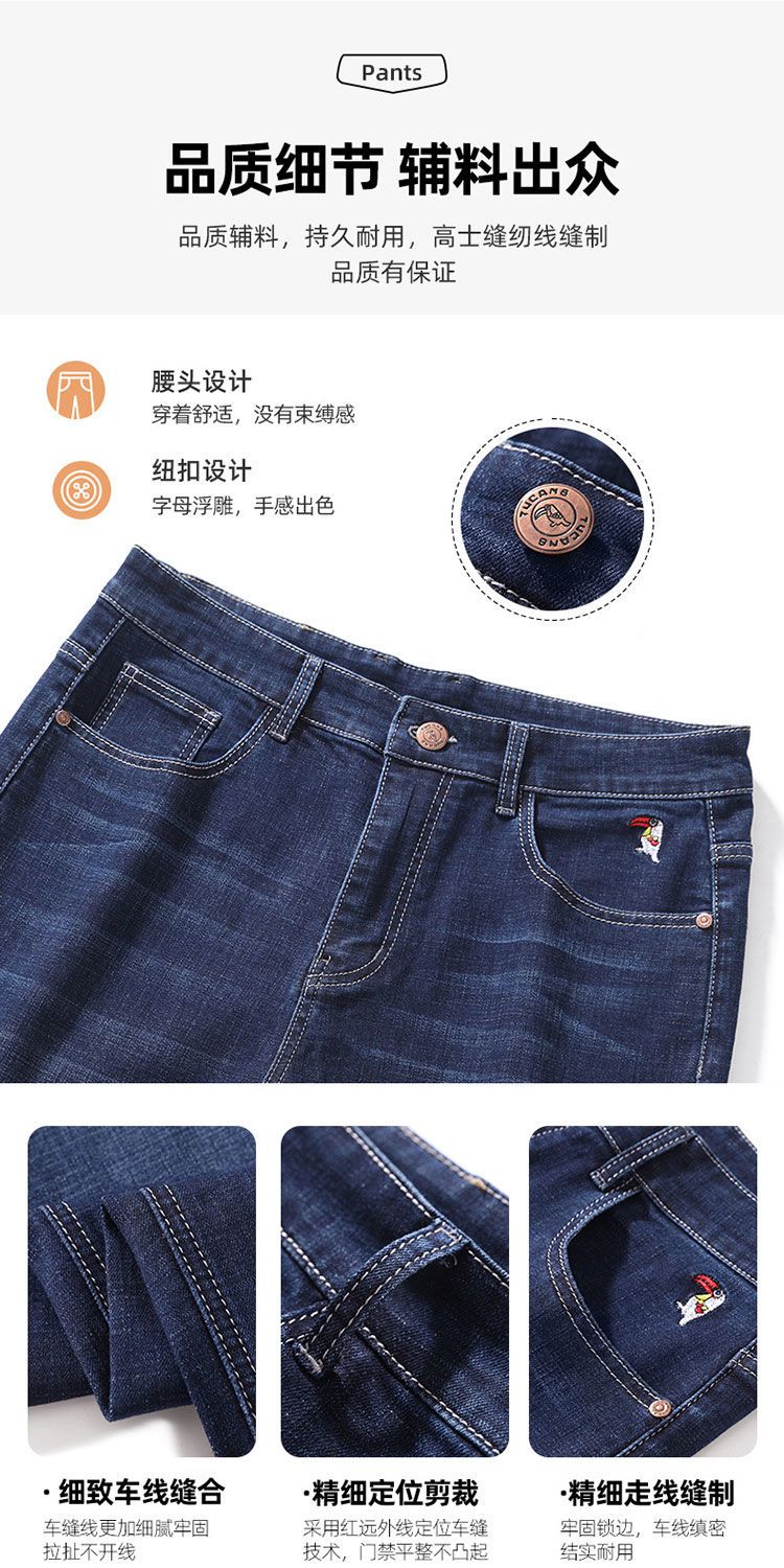 啄木鸟夏季薄款新款牛仔裤宽松中年高腰百搭大码耐磨休闲大码长裤