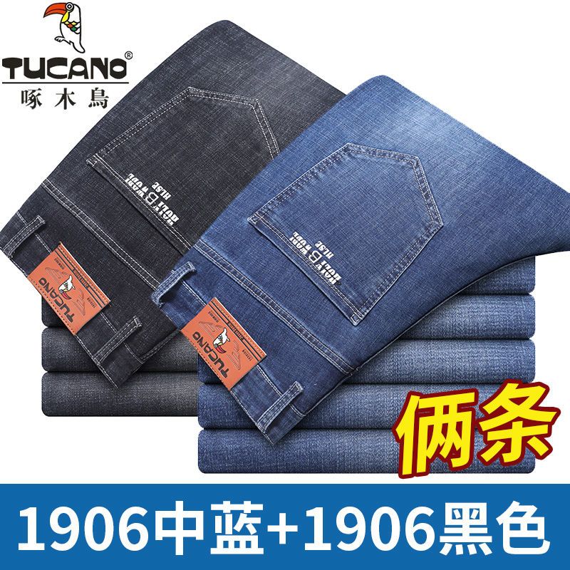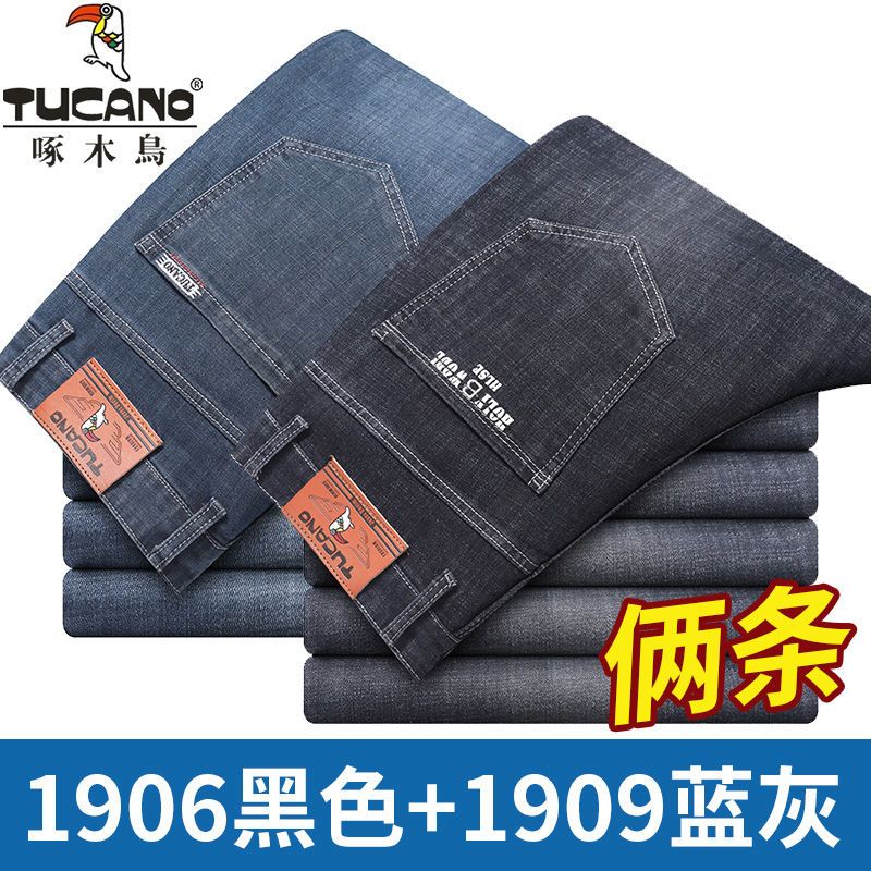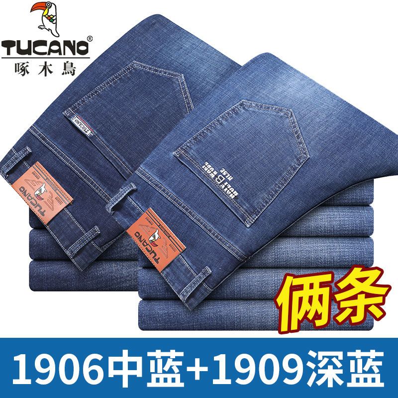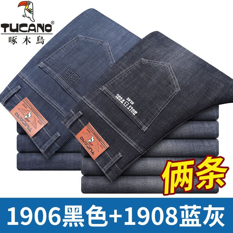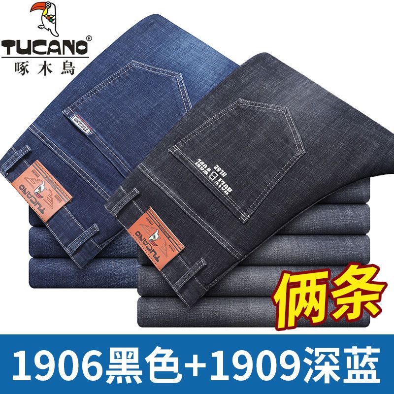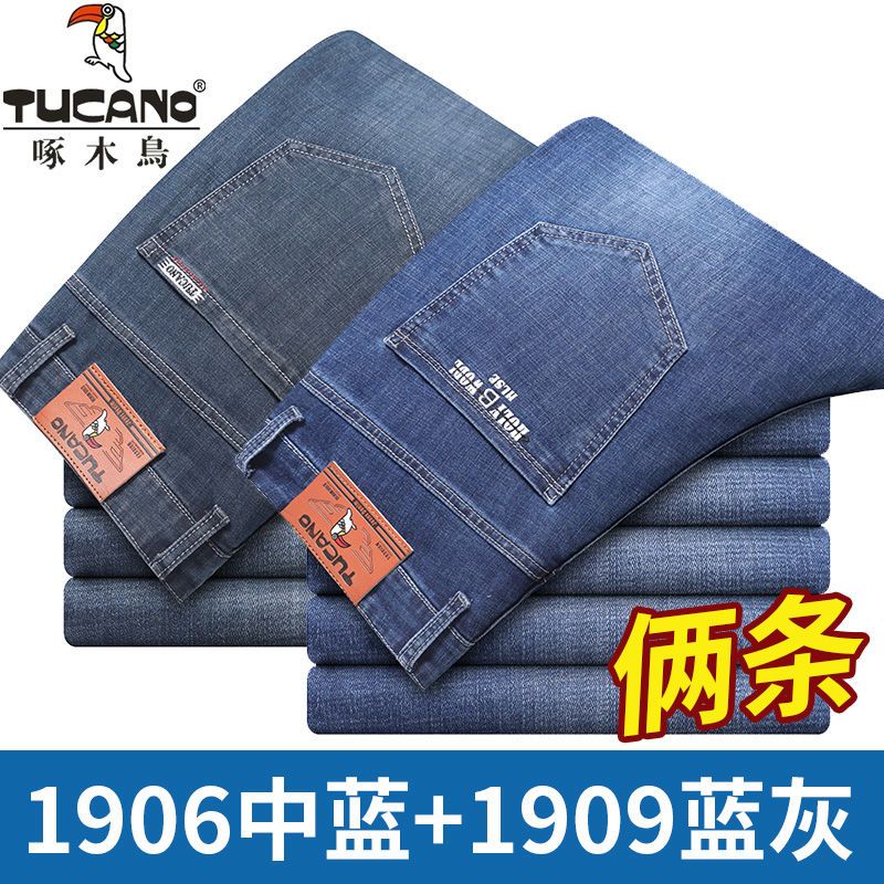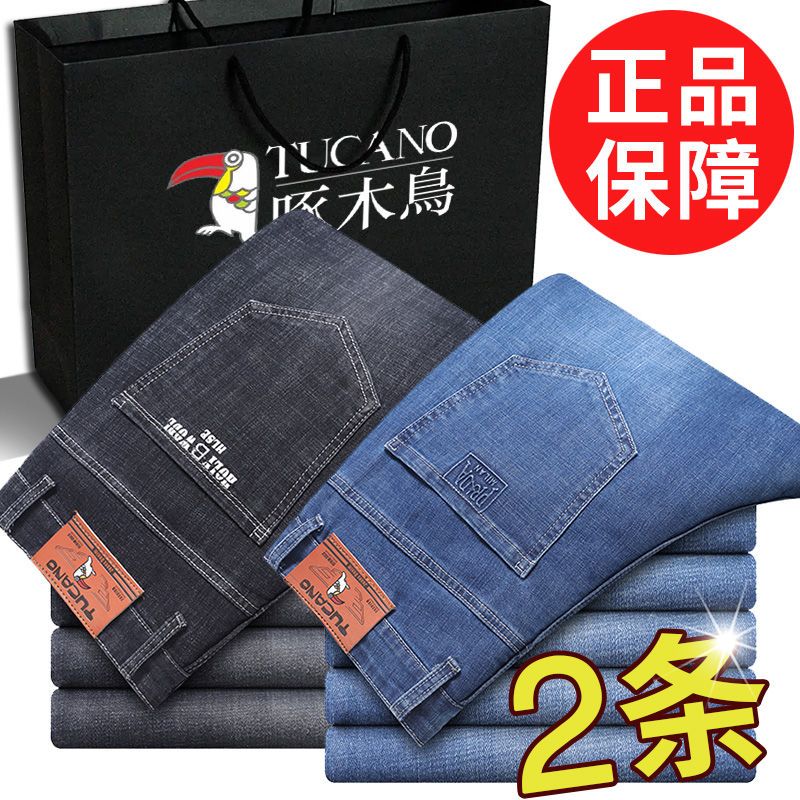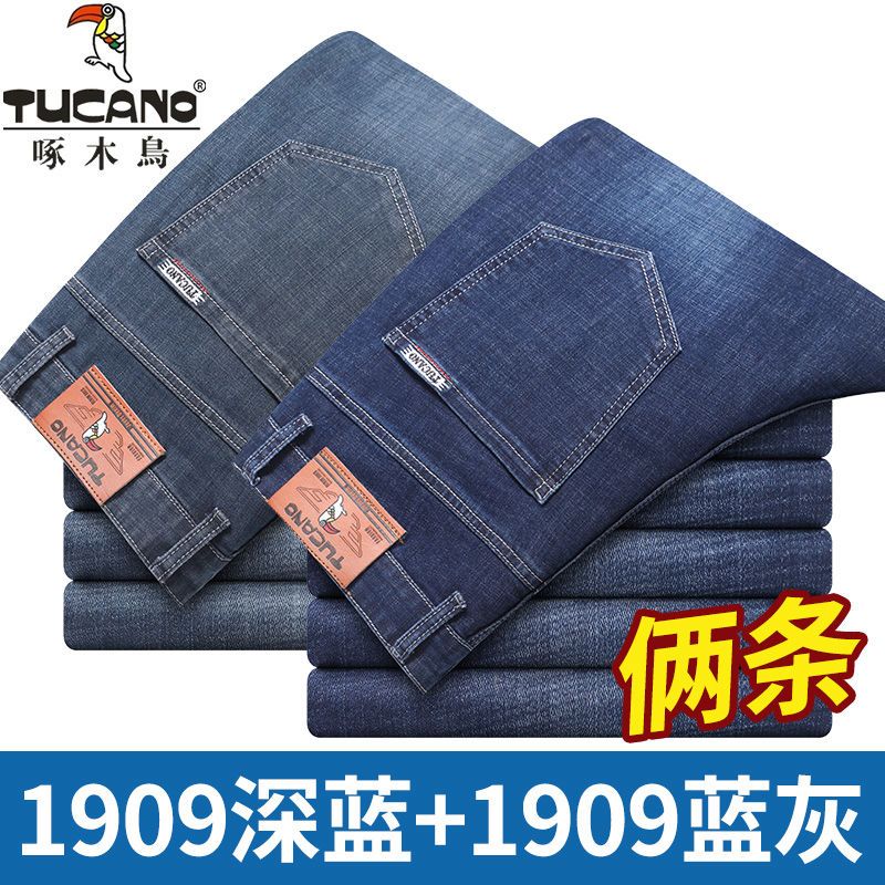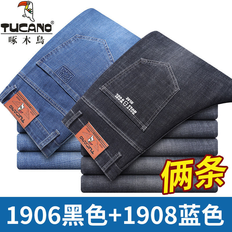 啄木鸟夏季薄款新款牛仔裤宽松中年高腰百搭大码耐磨休闲大码长裤